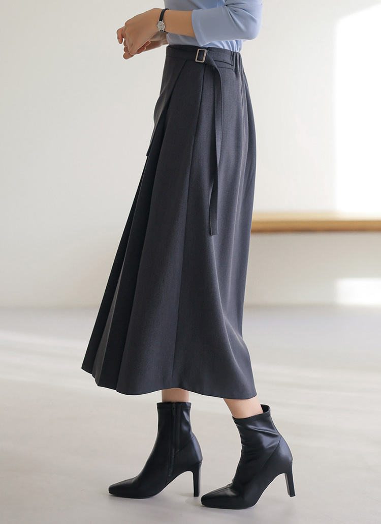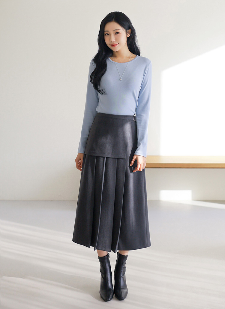 [THE ONME] ラップデザイン アシメ プリーツスカート sk44344