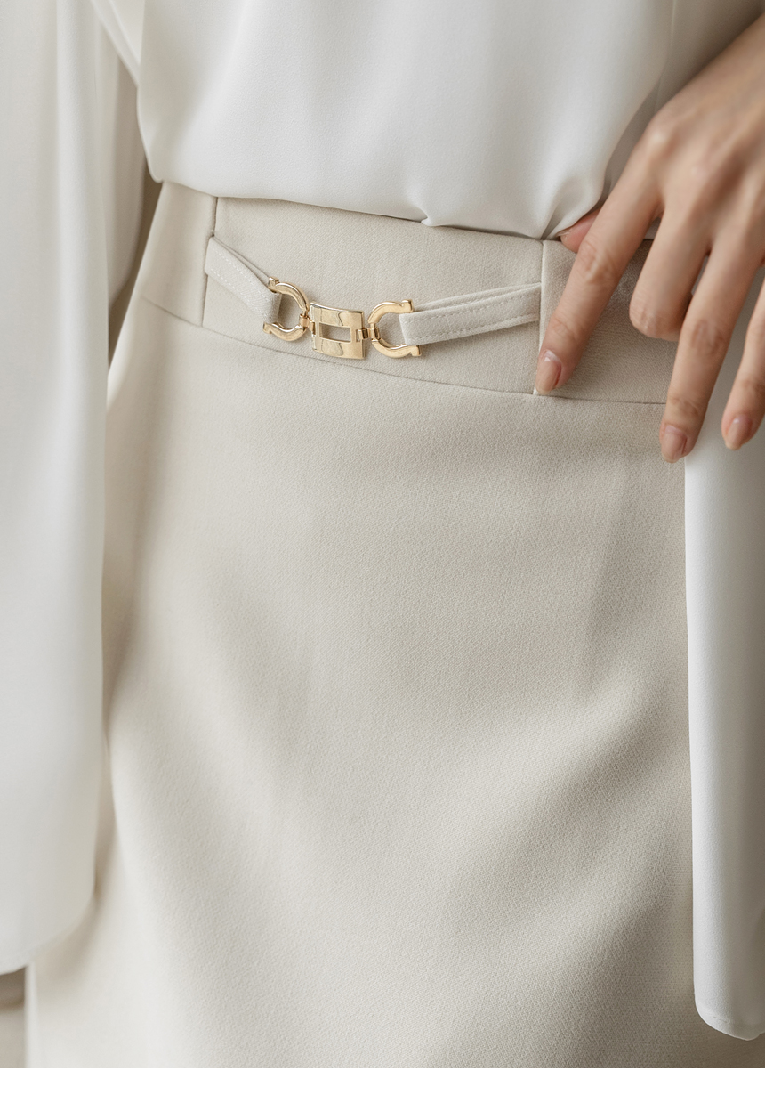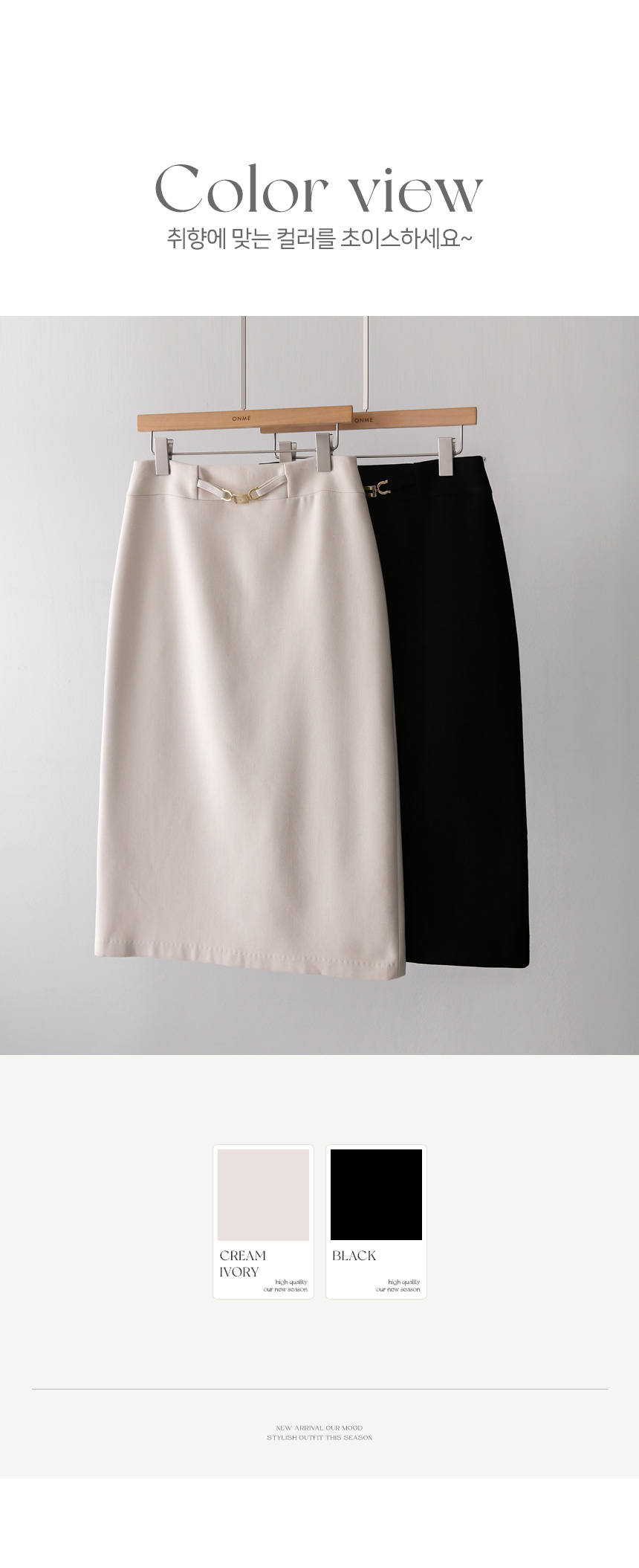 리나모 체인 버클 디테일 H라인 미디 펜슬 스커트