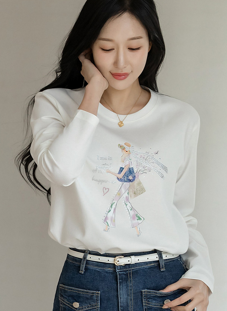 [LouisAngel] ラインストーン付き ガールプリントTシャツ ts44431