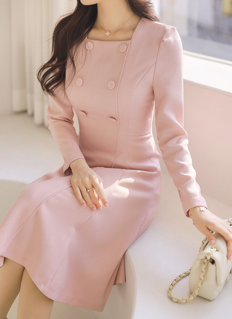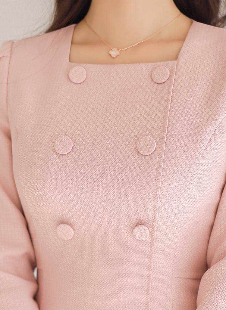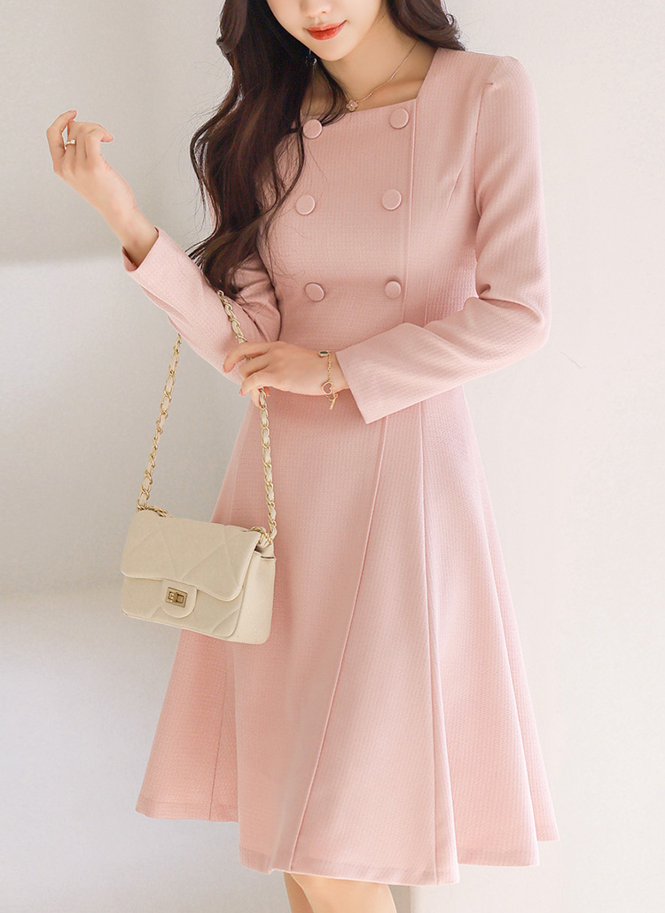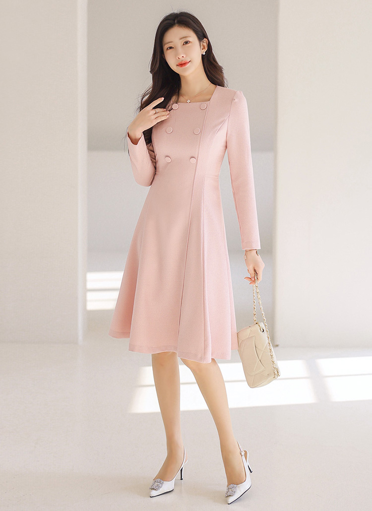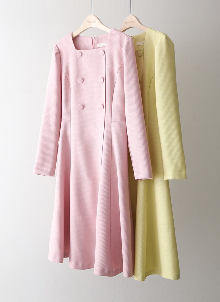 スクエアネック ダブルボタン フレアワンピース op44458