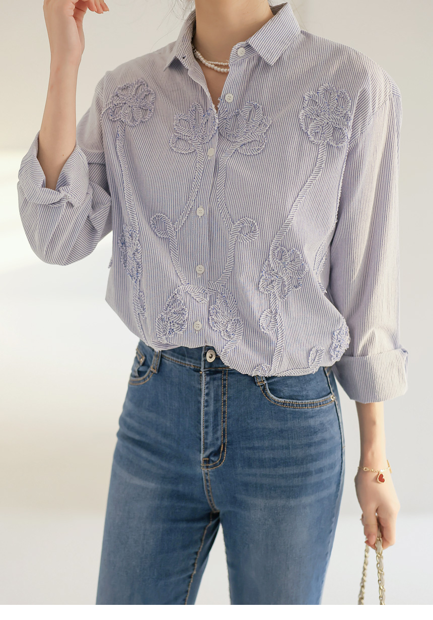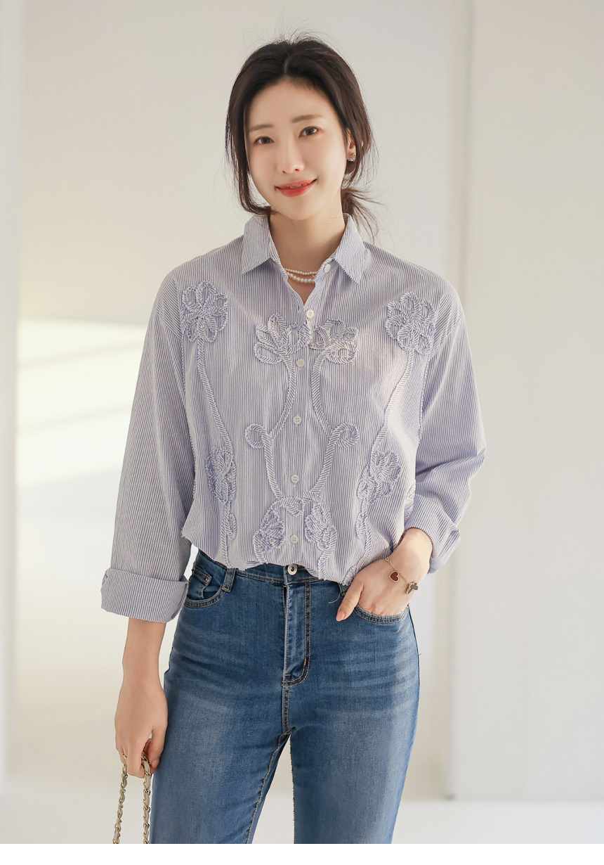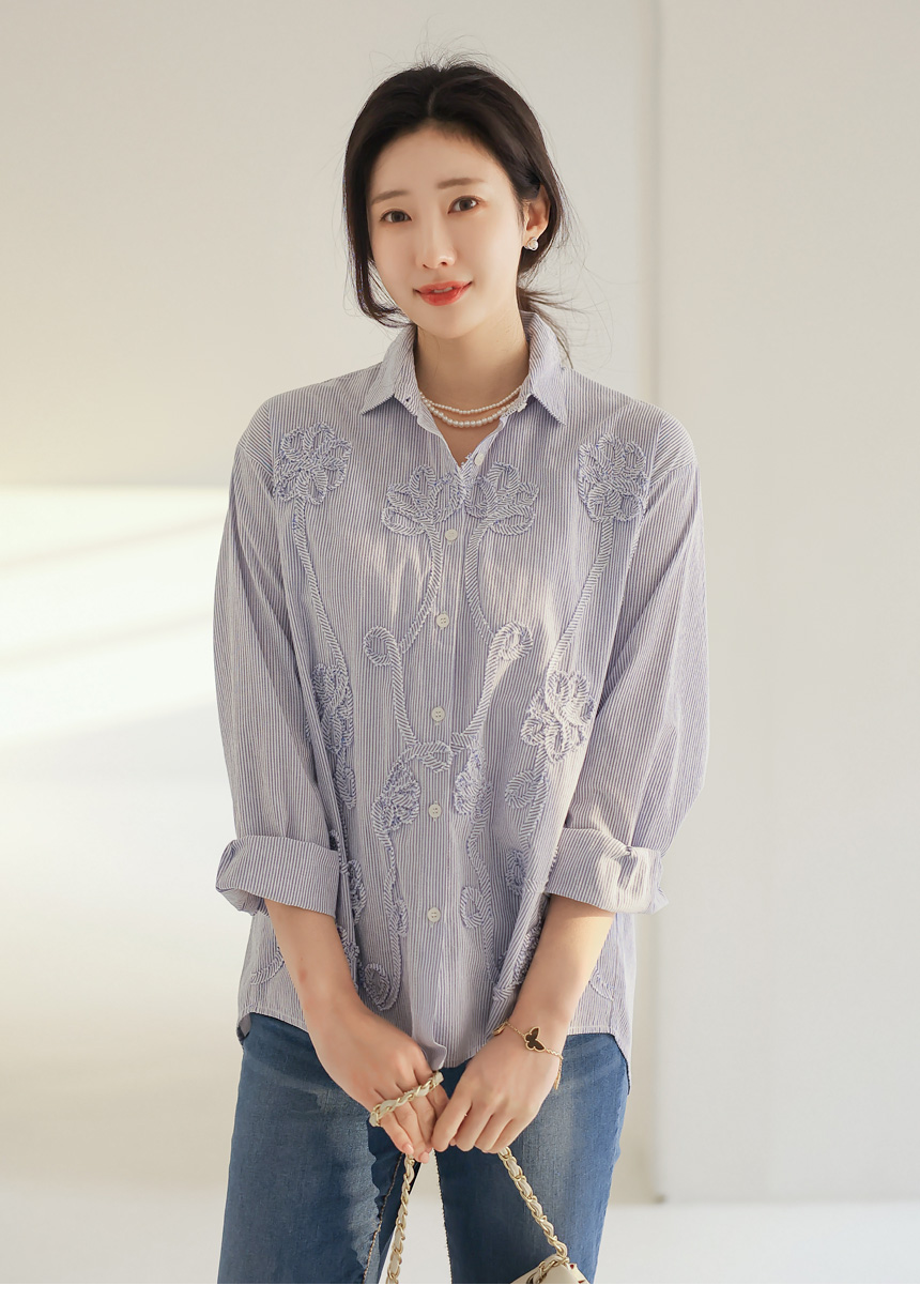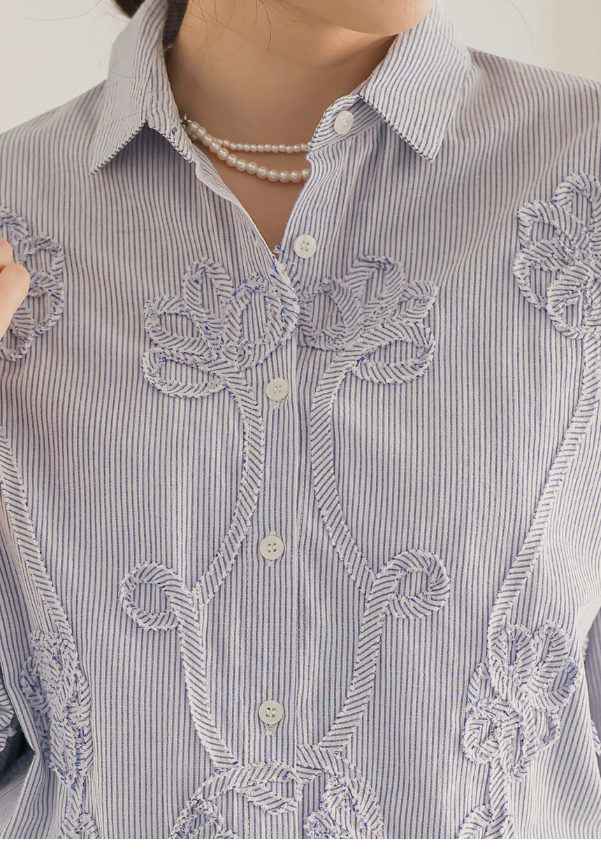 フラワーモチーフストライプシャツ bl44473