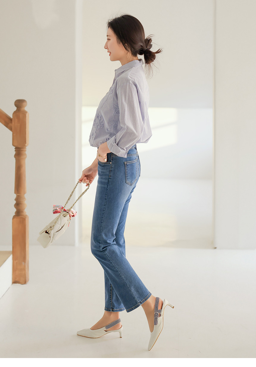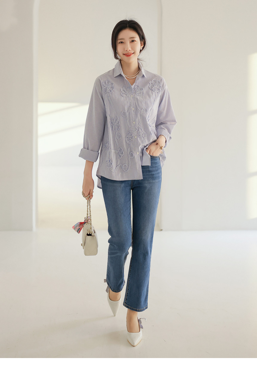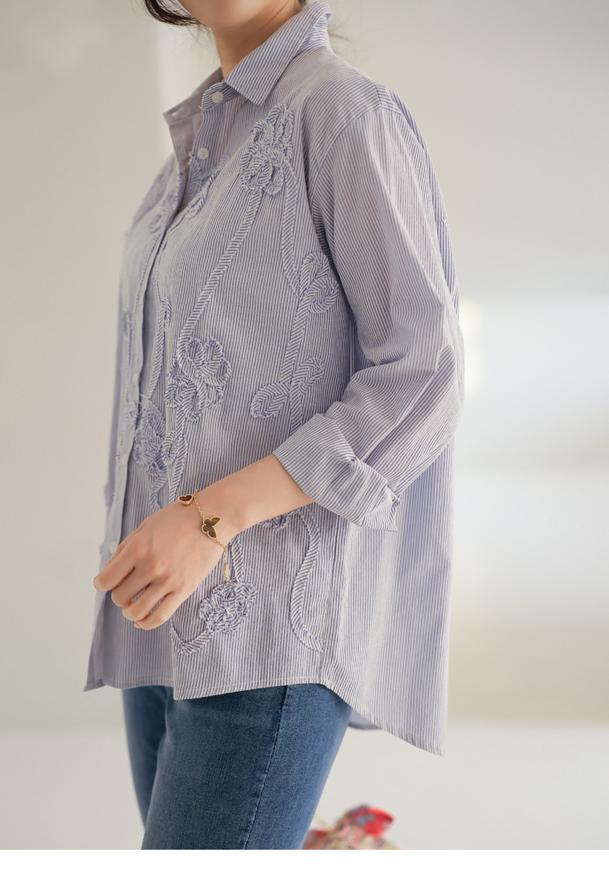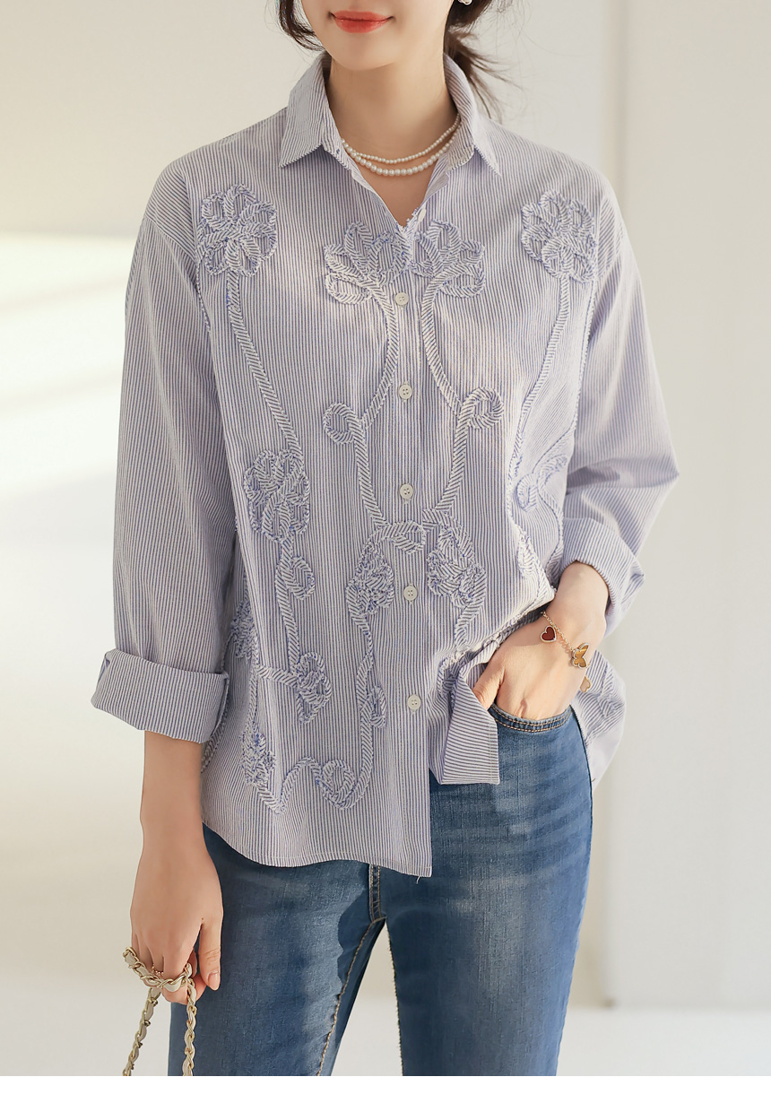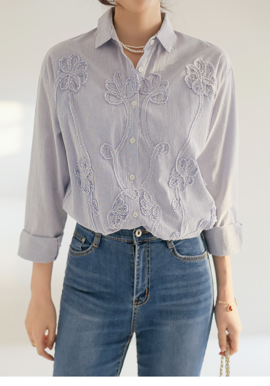 フラワーモチーフストライプシャツ bl44473