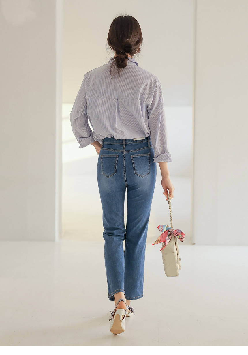 잔잔한 스트라이프 패턴의 원단을 사용해