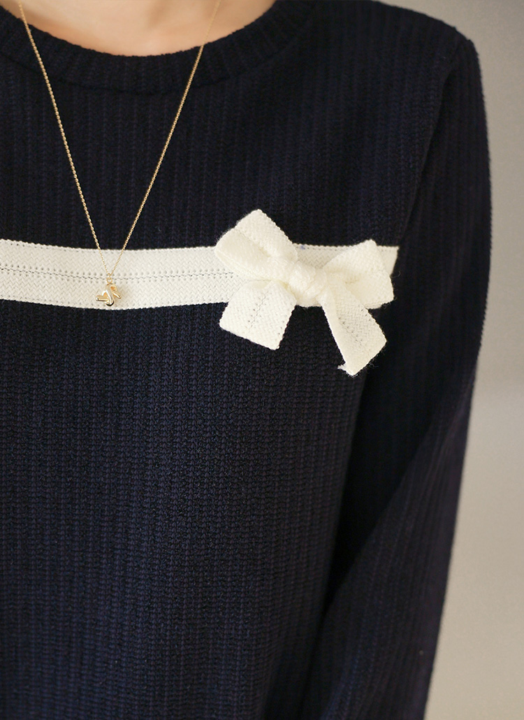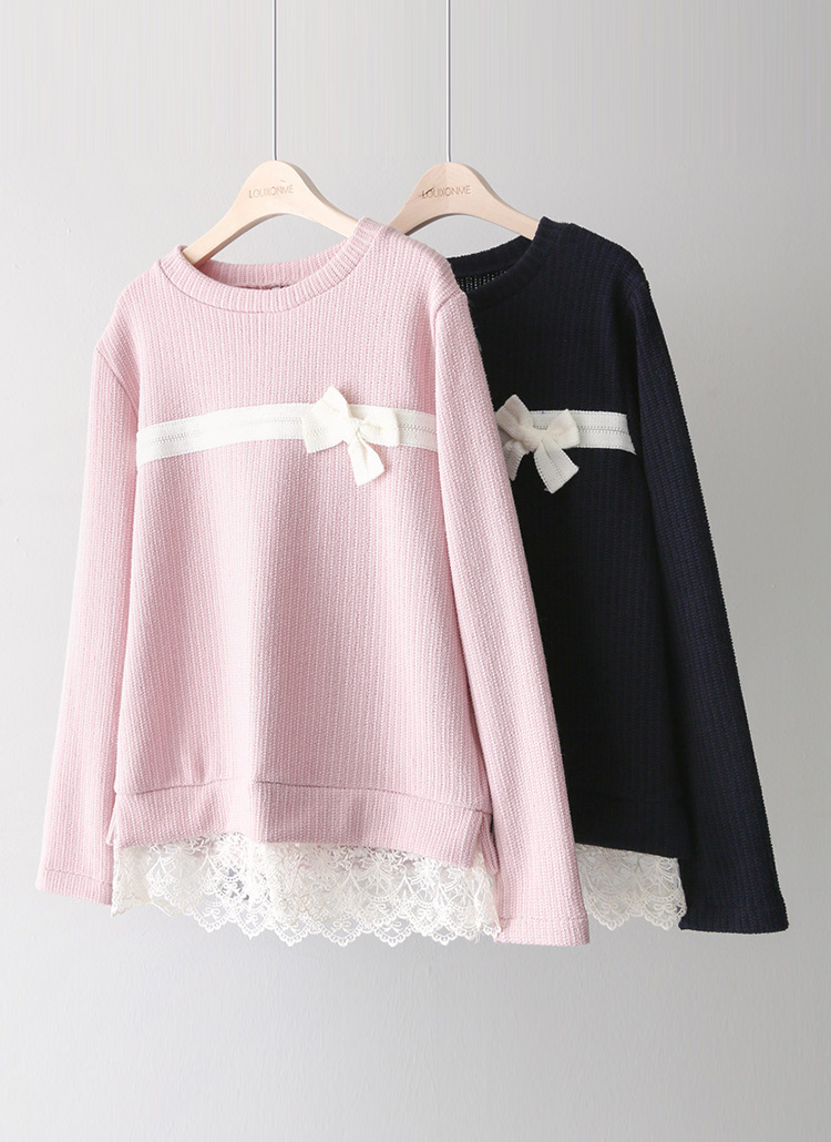 裾スカラップレースドッキング リボンポイント ニットプルオーバー nt44494