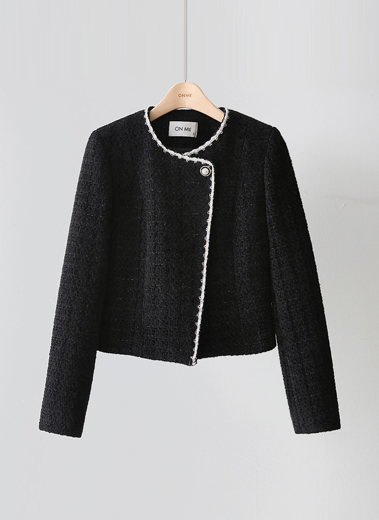 [LouisAngel] ウールブレンド 配色ライン アシメツイードジャケット jk44497