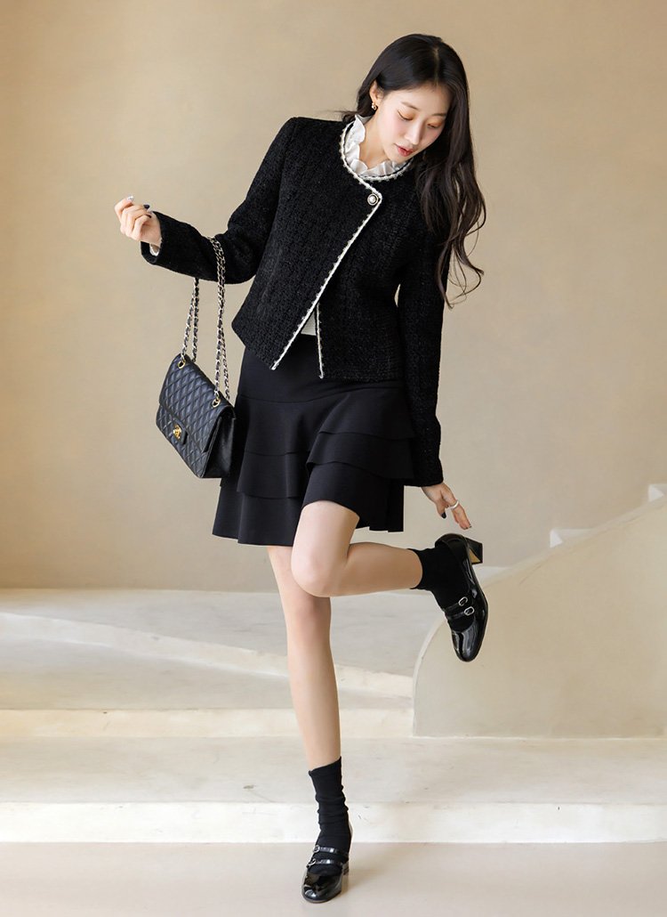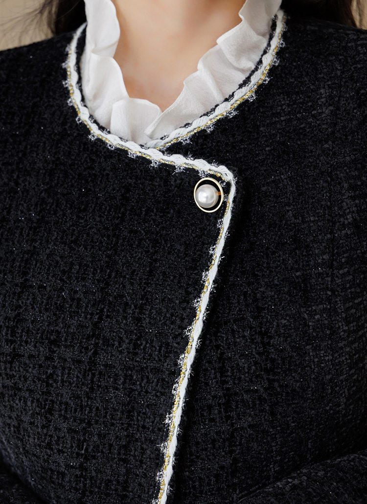 끝단에는 브레이드 라인을 배색해 트위드의 텍스쳐와