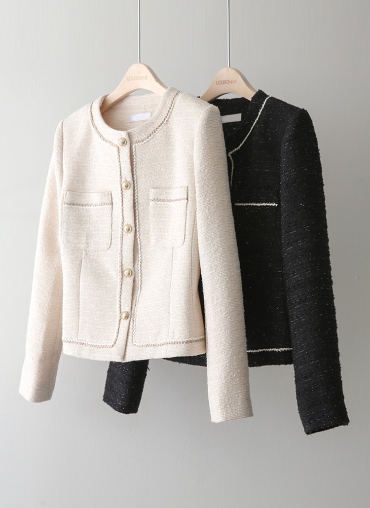 단정하면서도 우아한 분위기를 완성하는 트위드 자켓이에요