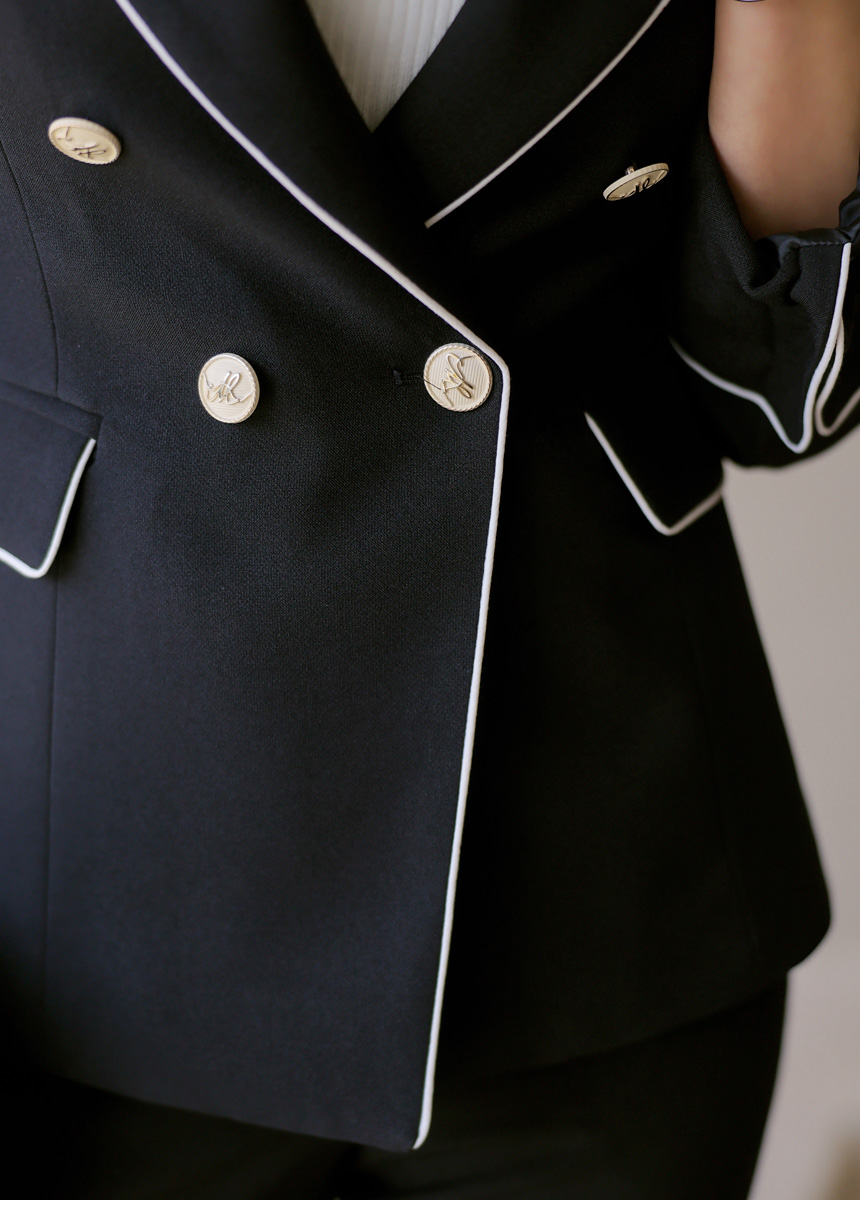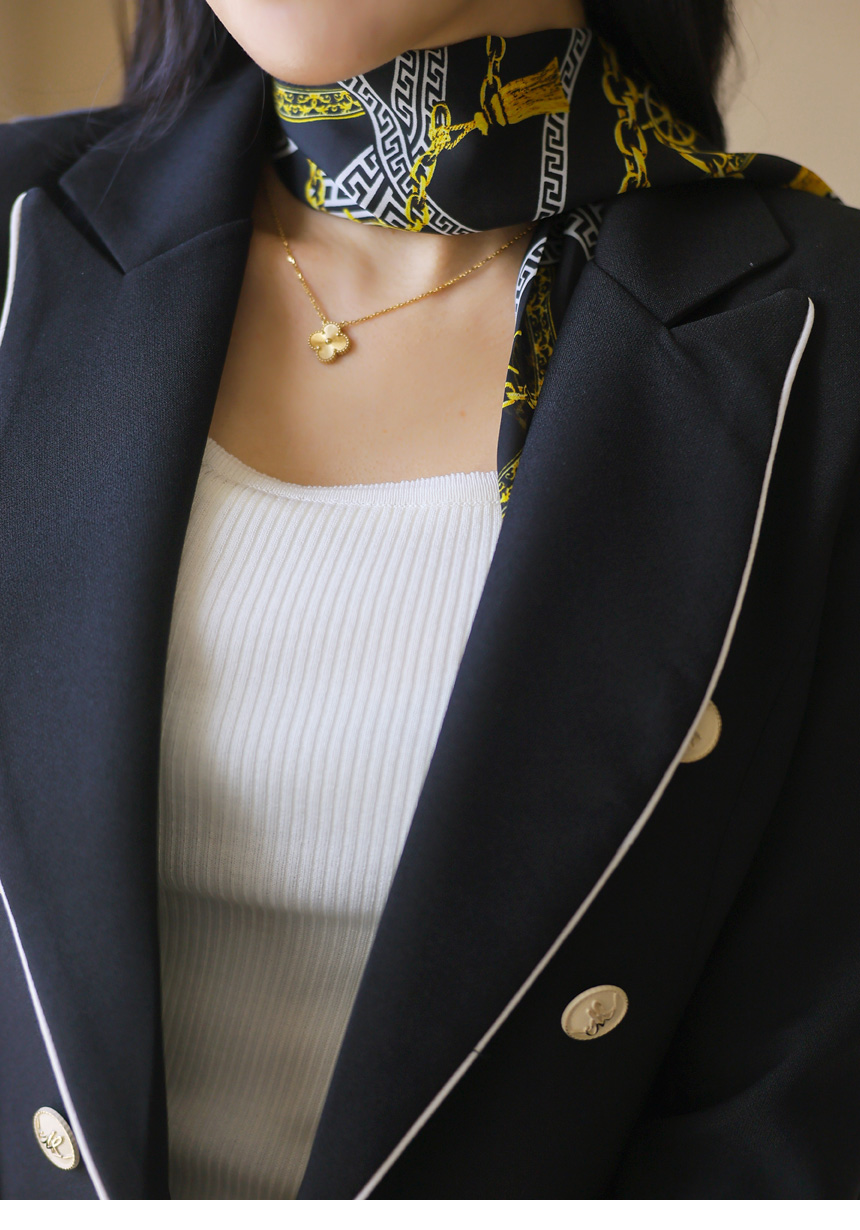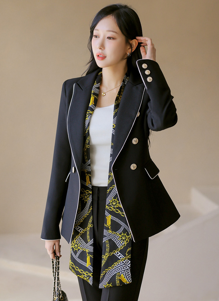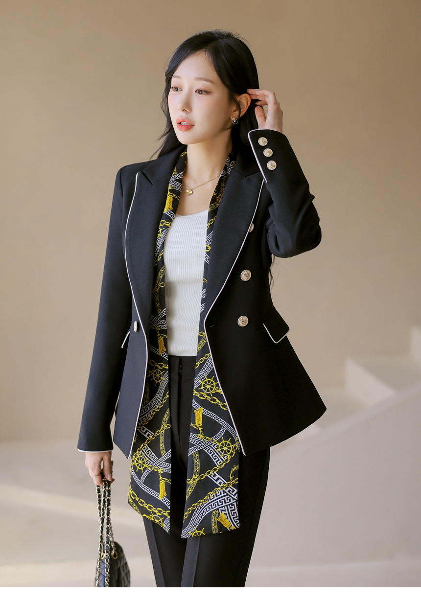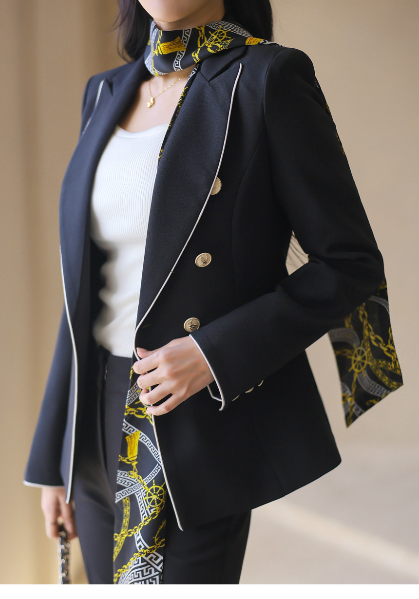 スカーフSET バイカラーライン スリムダブルボタンジャケット jk44587