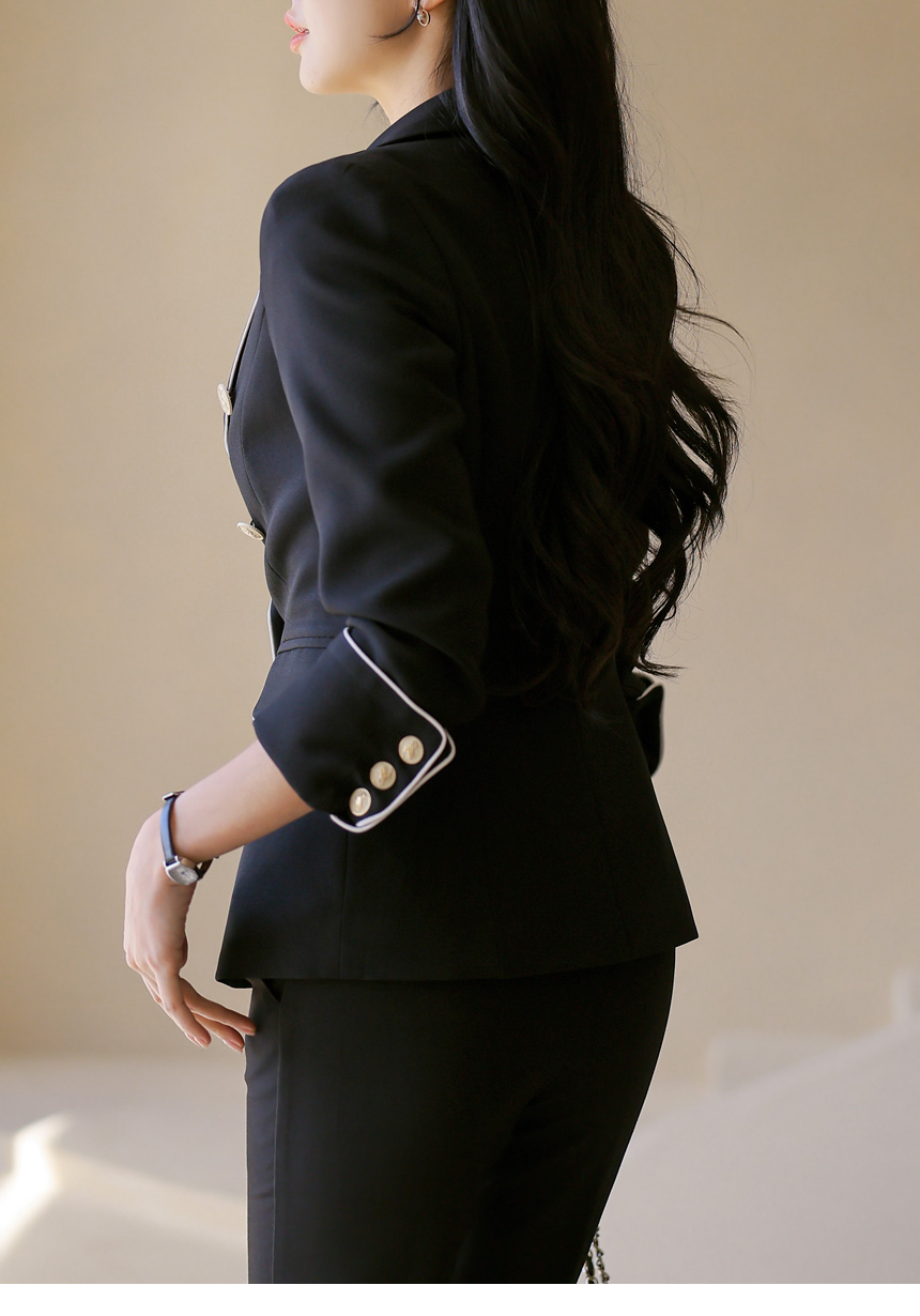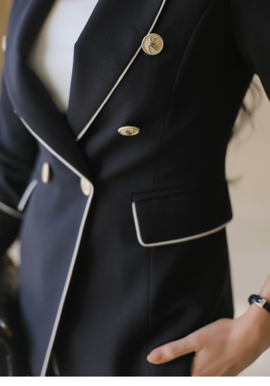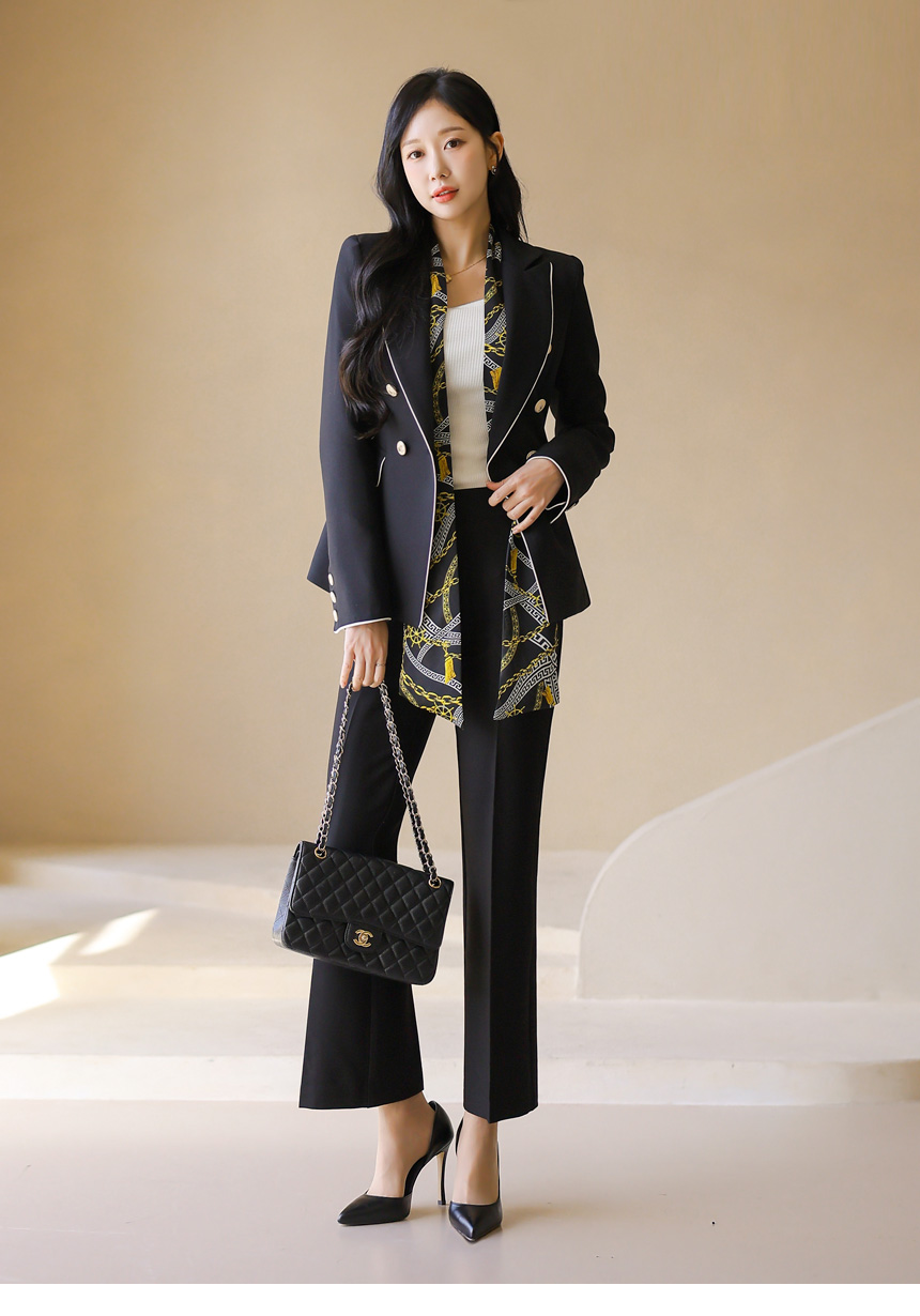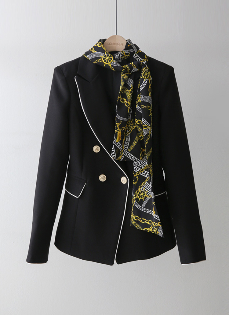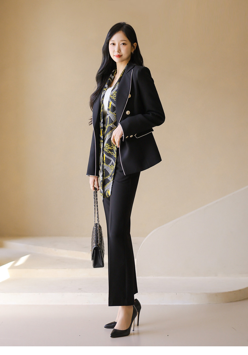 スカーフSET バイカラーライン スリムダブルボタンジャケット jk44587
