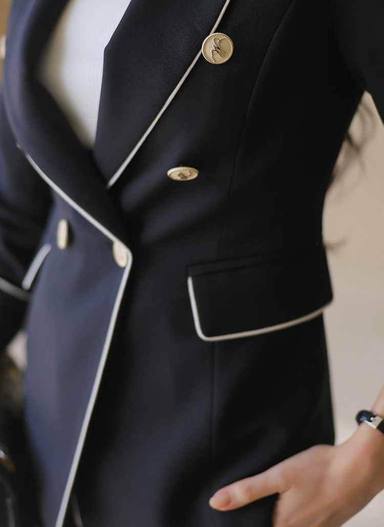 정교하게 잡힌 테일러드 카라와 슬림하게 들어간 허리 라인이 만나