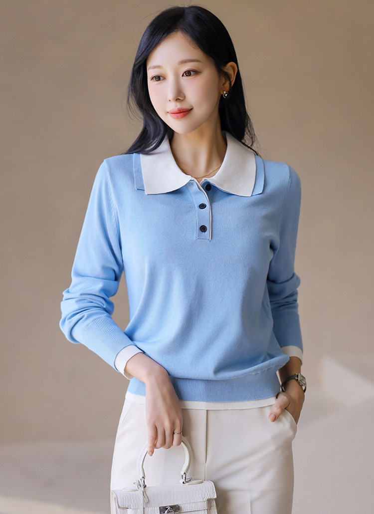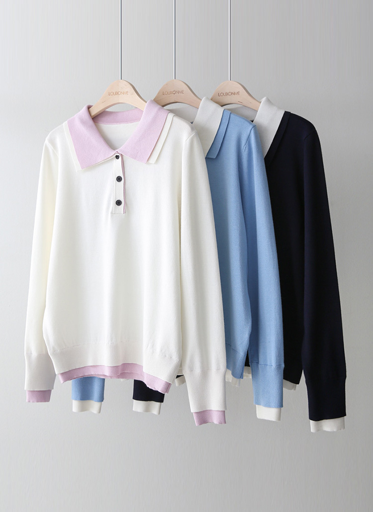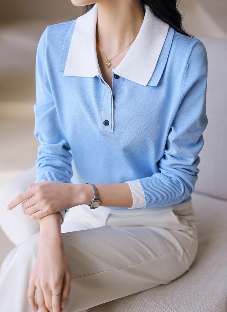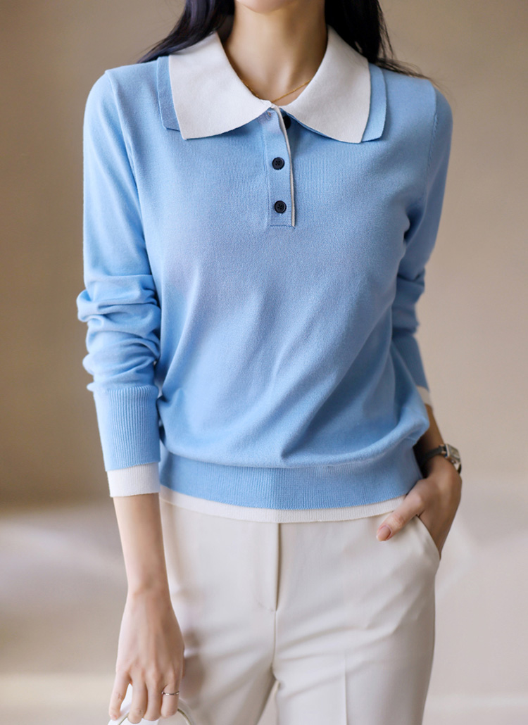 レイヤード風 配色ダブルカラー ポロニット nt44602