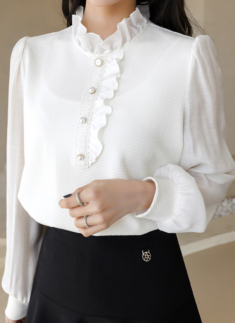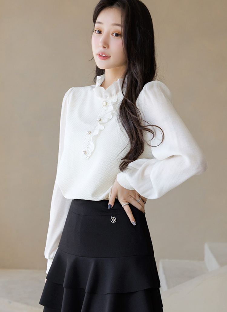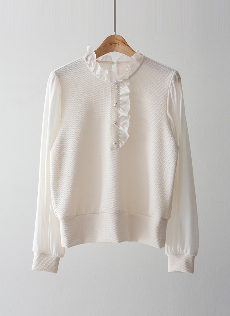 소매 부분은 은은하게 비치는 쉬폰 소재로 배색해