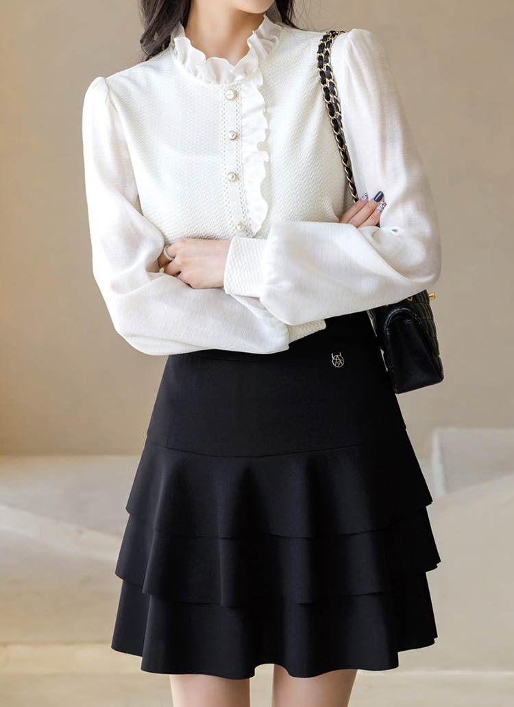 [LouisAngel] フリルネックジャガードプルオーバー bl44605