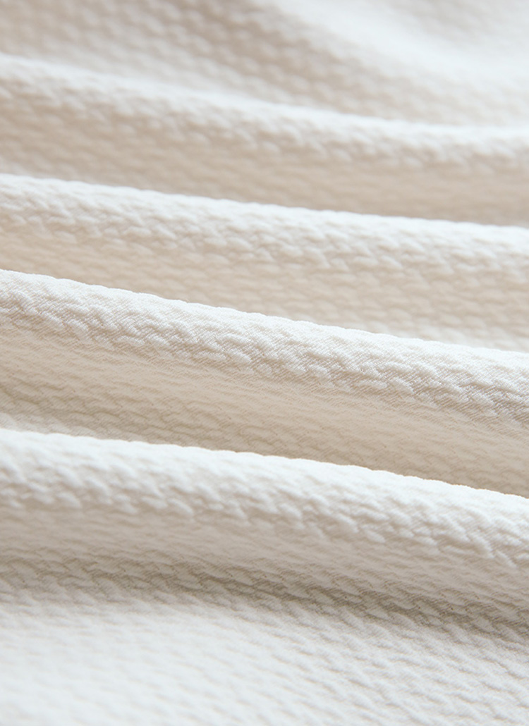 몸판 부분은 올록볼록 입체감이 느껴지는 쟈가드 소재로 제작되어
