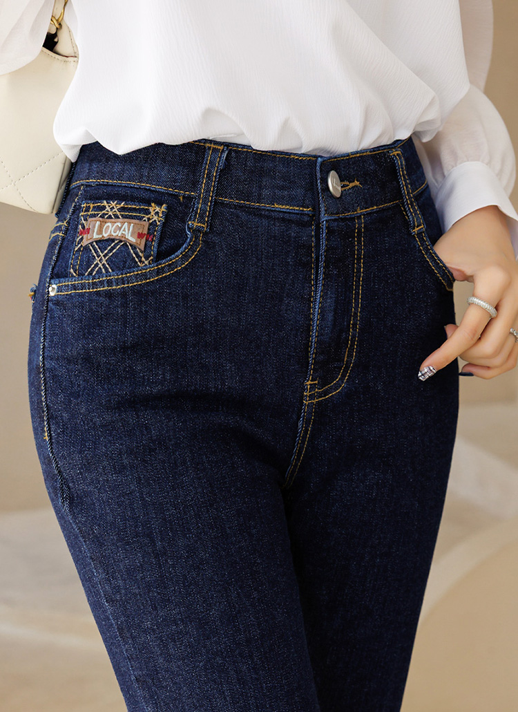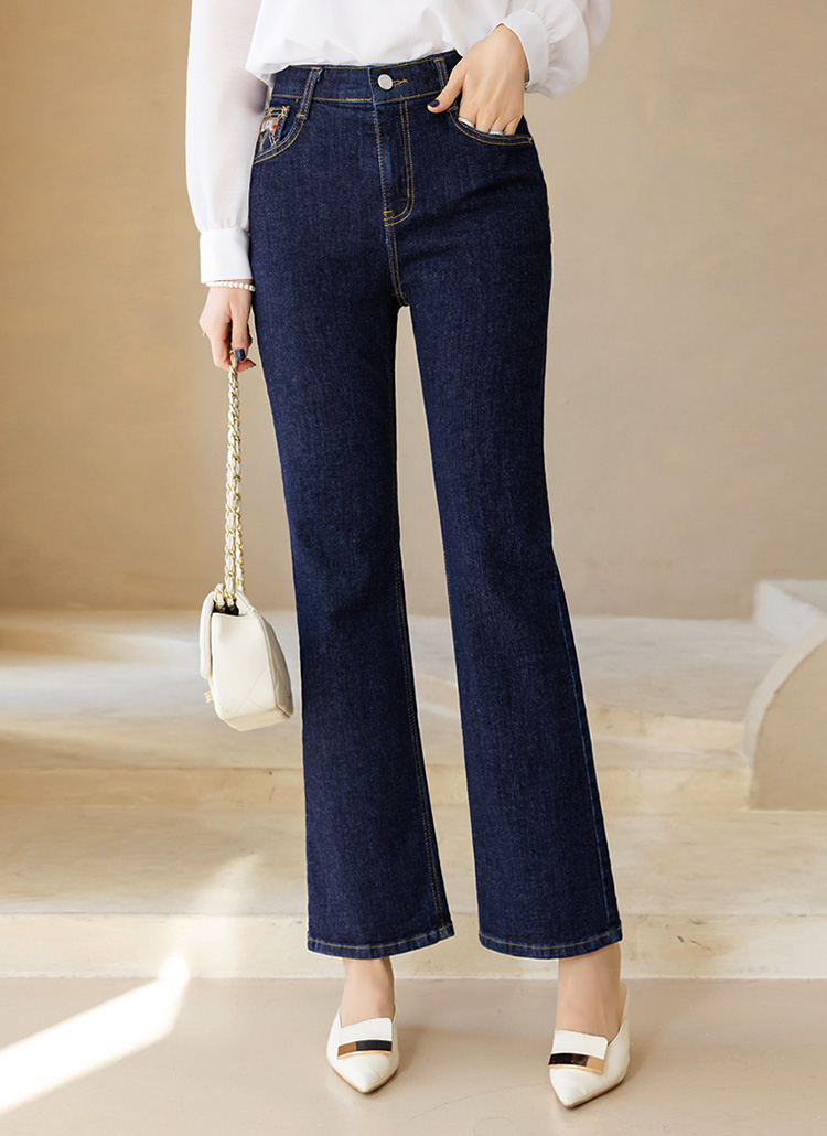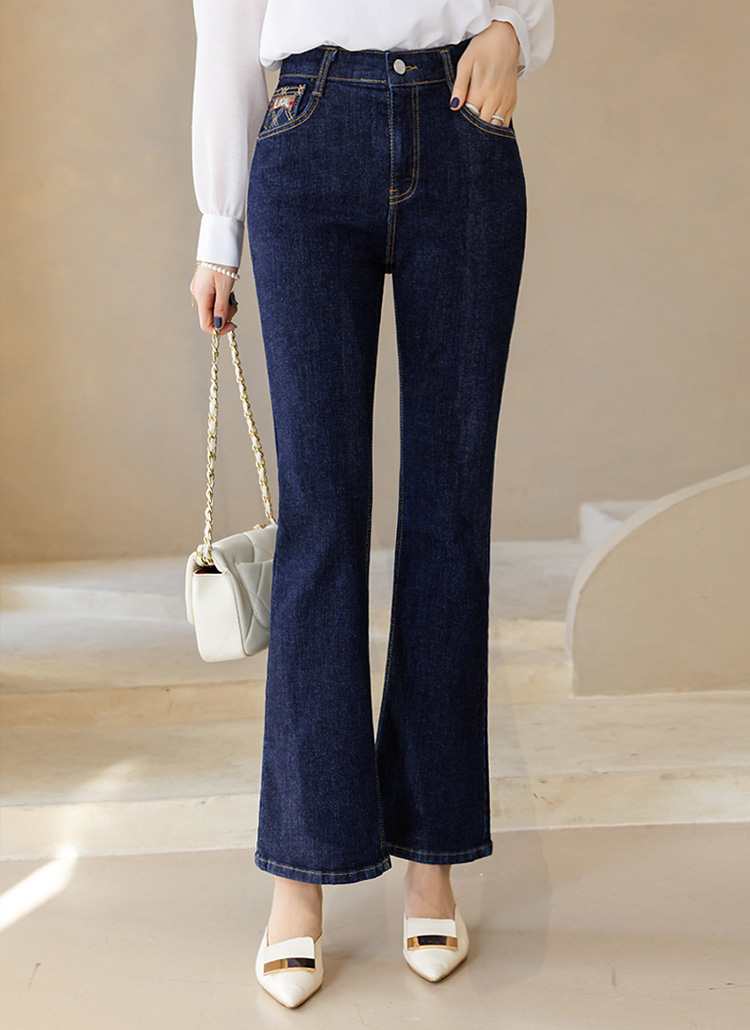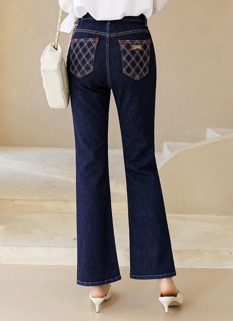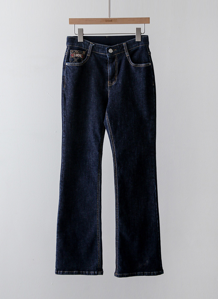 チェック刺繡ポケットフレアデニムパンツ pt44623