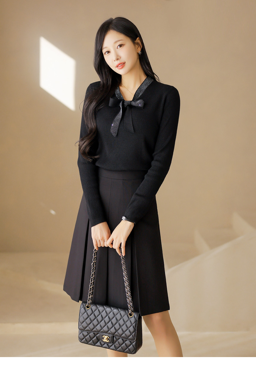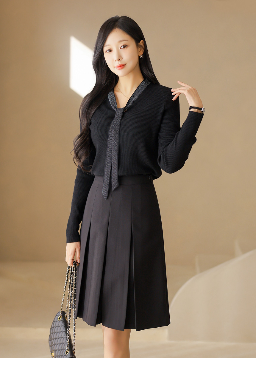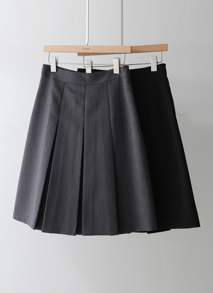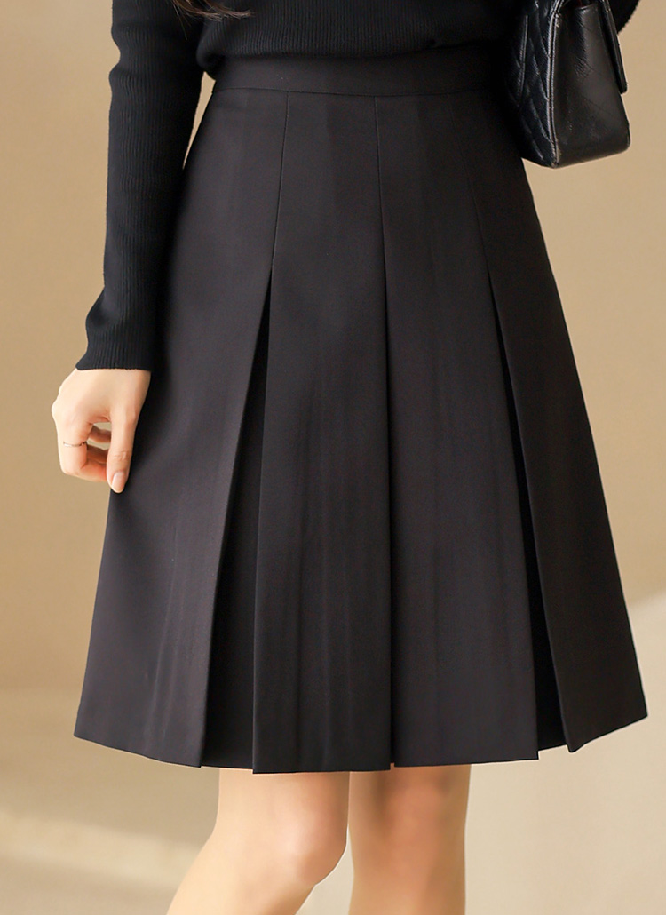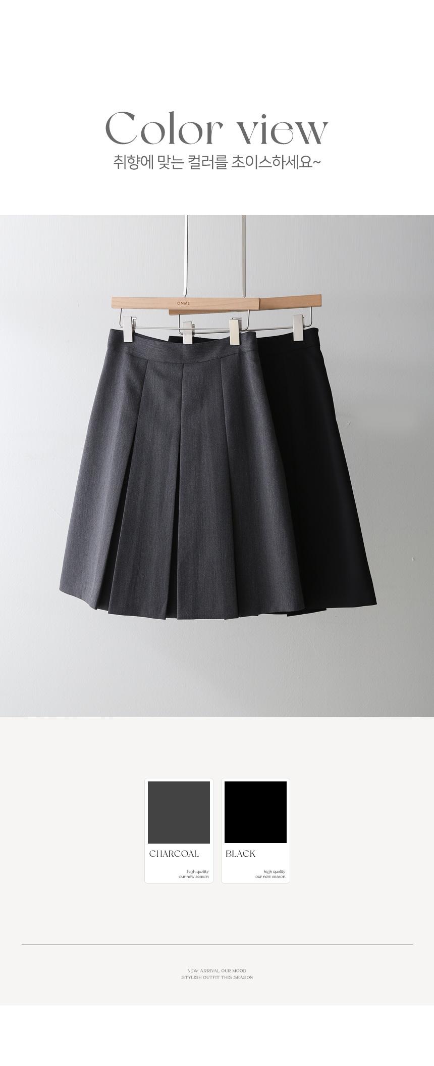 단정하면서도 세련된 무드를 선사하는 맞주름 플리츠 A라인 미디 스커트에요