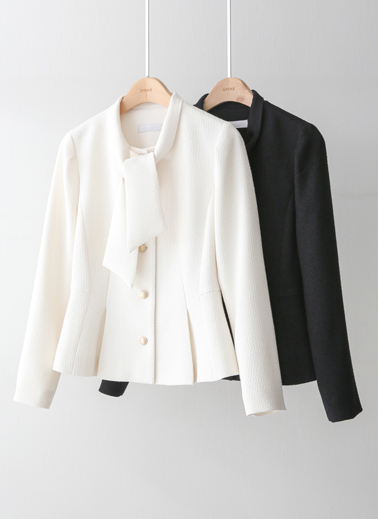 ボータイ付き ラメツイード ペプラムジャケット jk44635