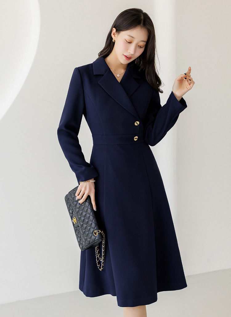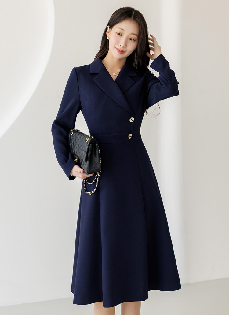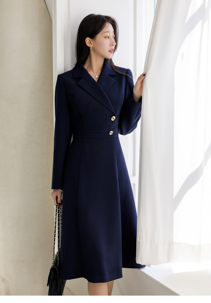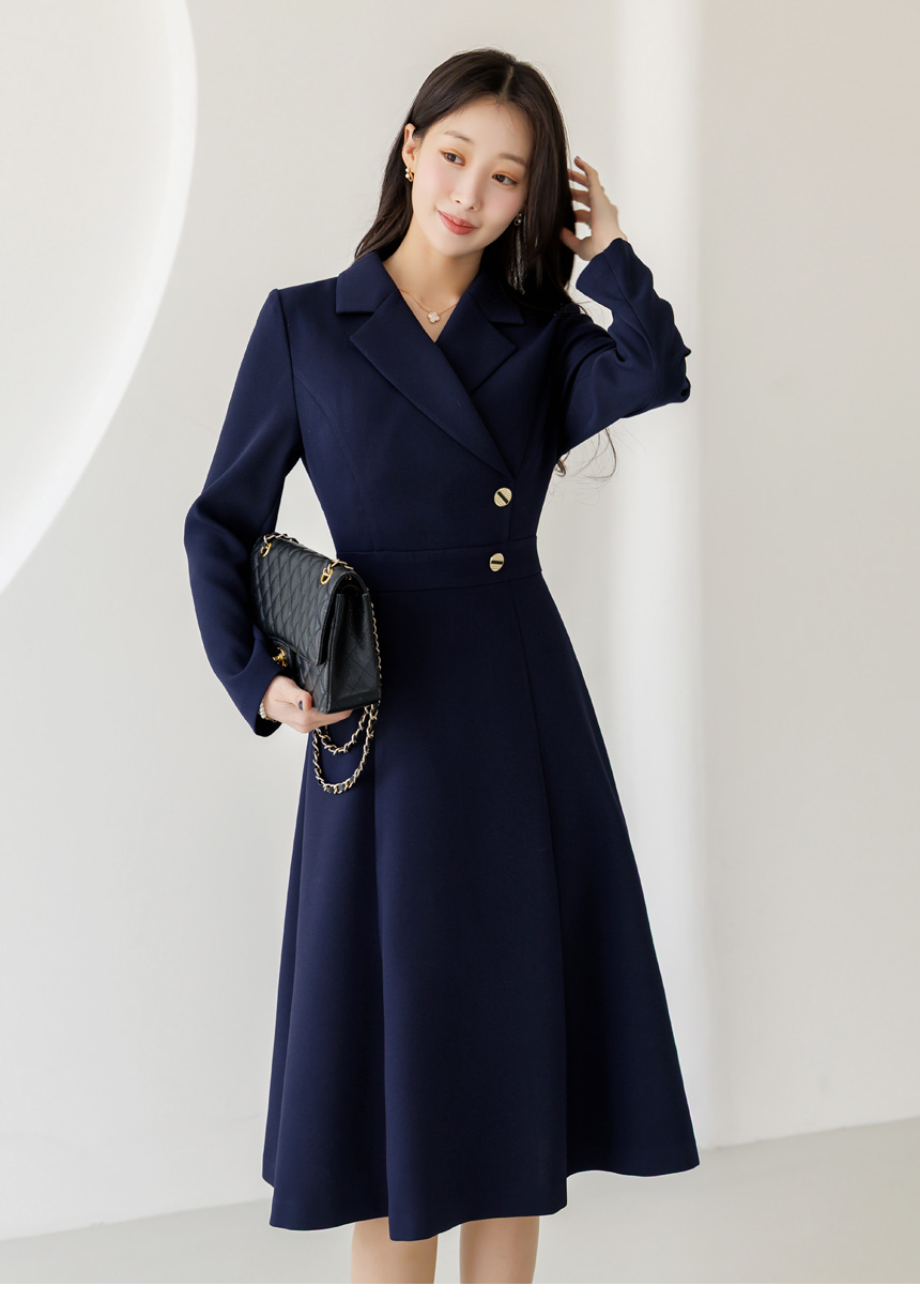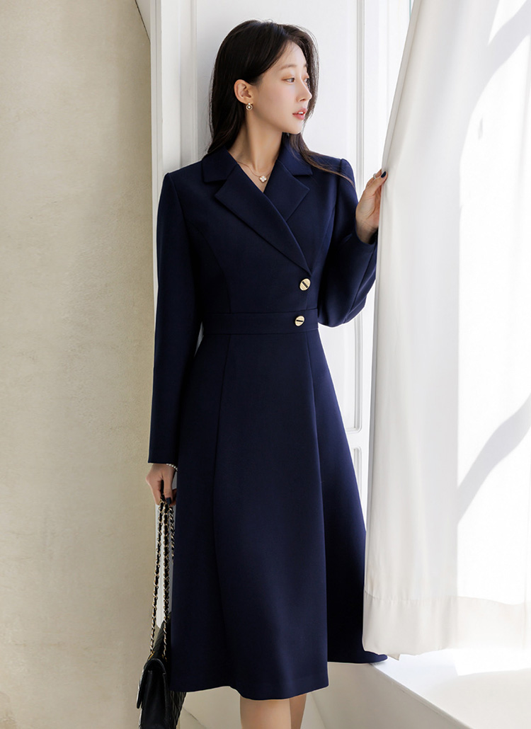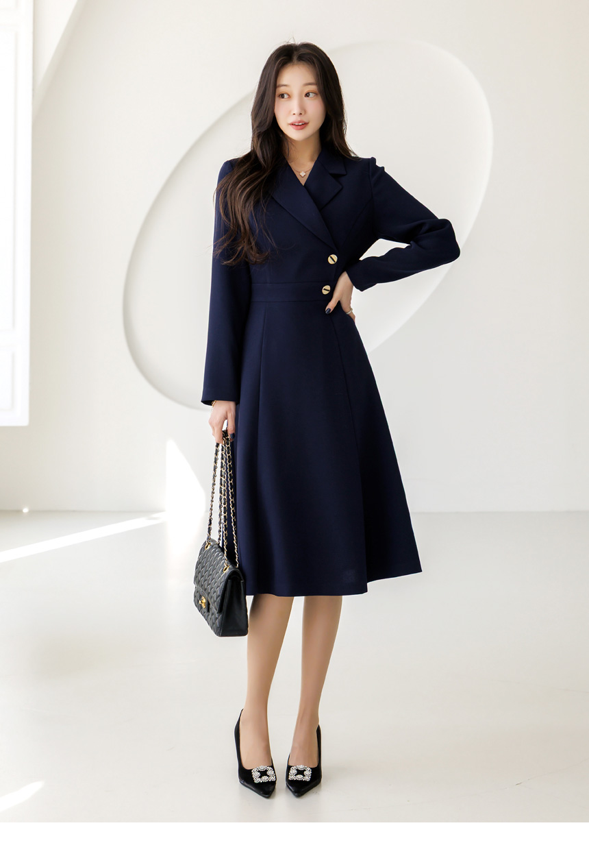 [LouisAngel] サイドボタン テーラードスリムフレアワンピース op44656