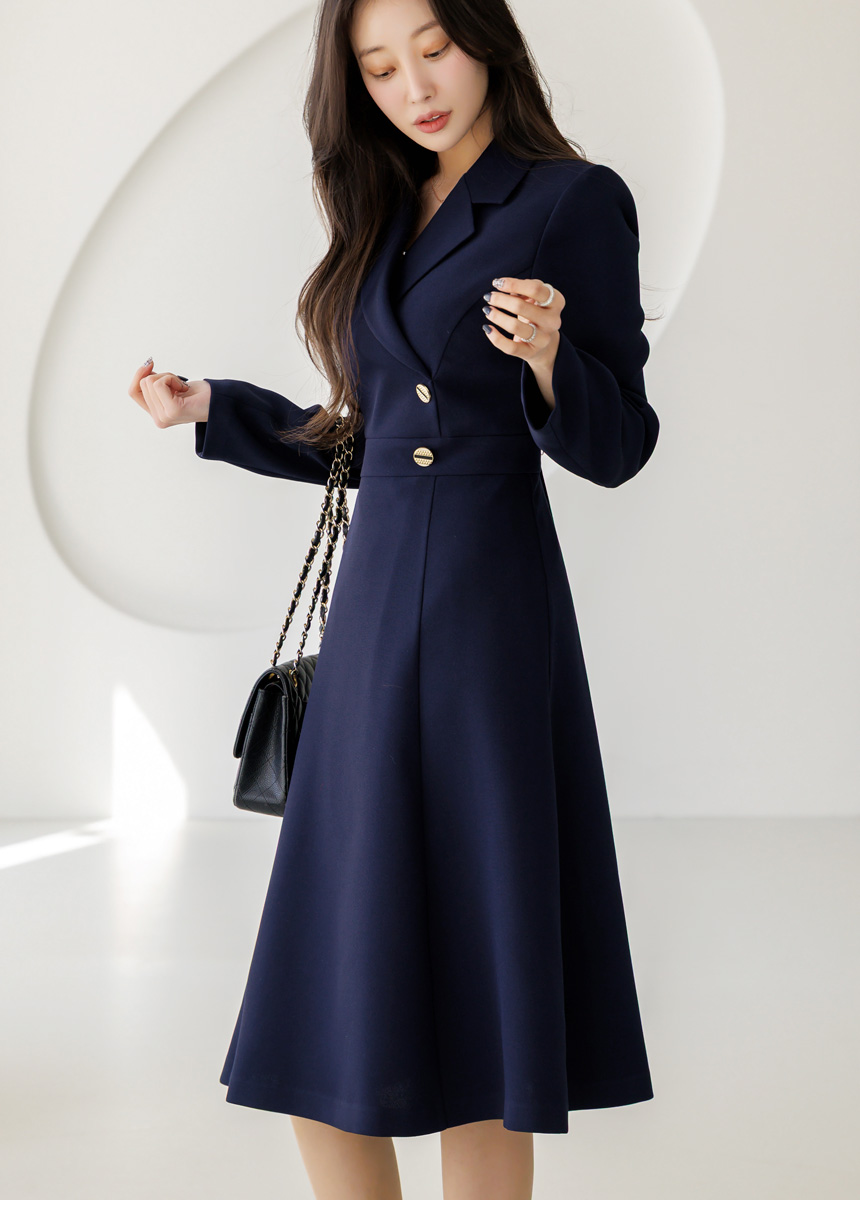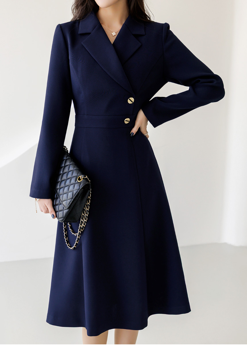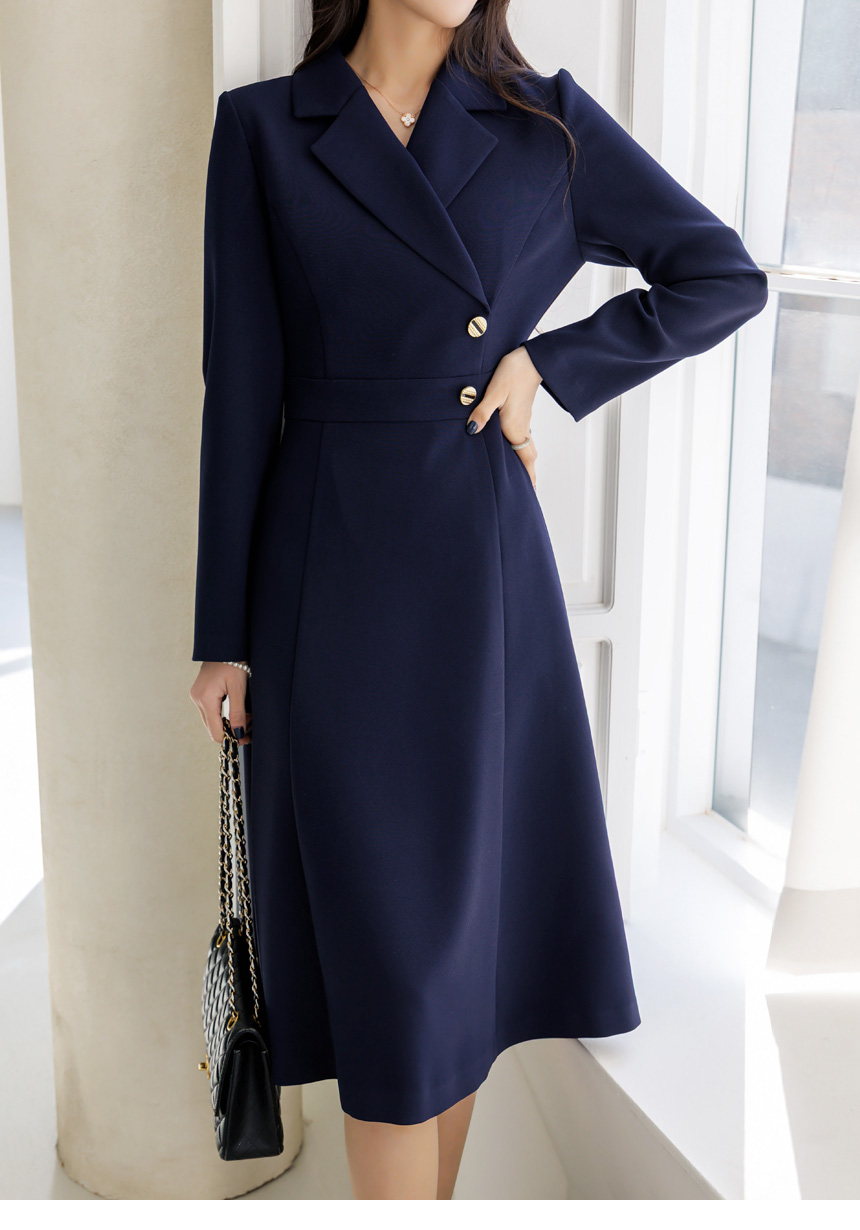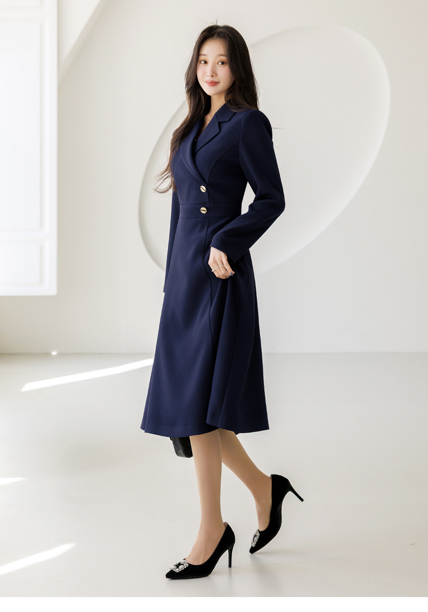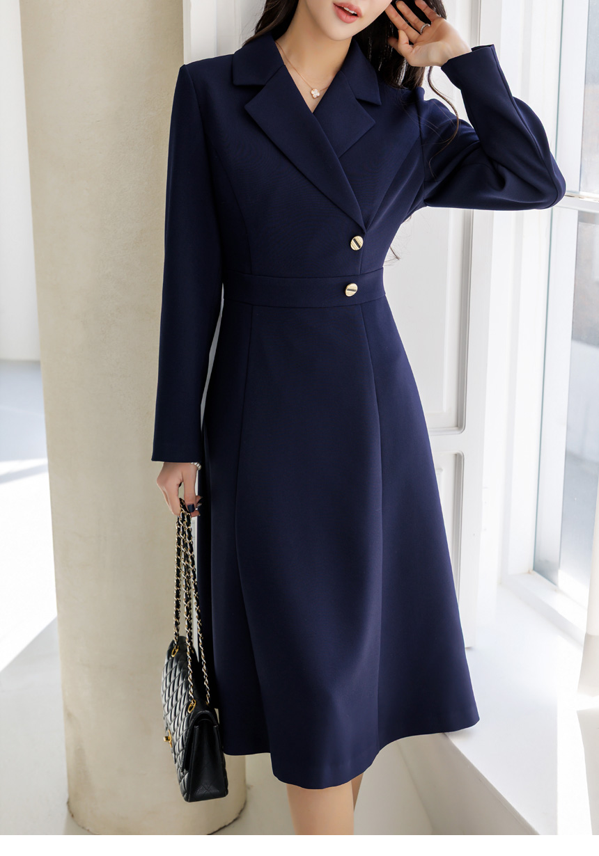 [LouisAngel] サイドボタン テーラードスリムフレアワンピース op44656