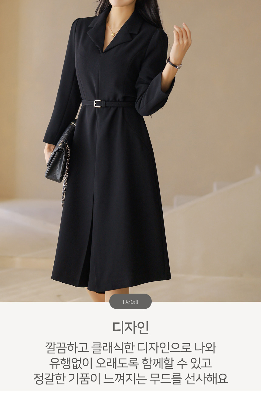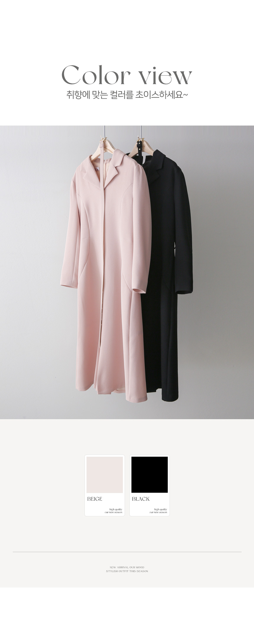 깔끔한 테일러드 카라 디자인이 포멀하고 우아한 무드를 연출해주며