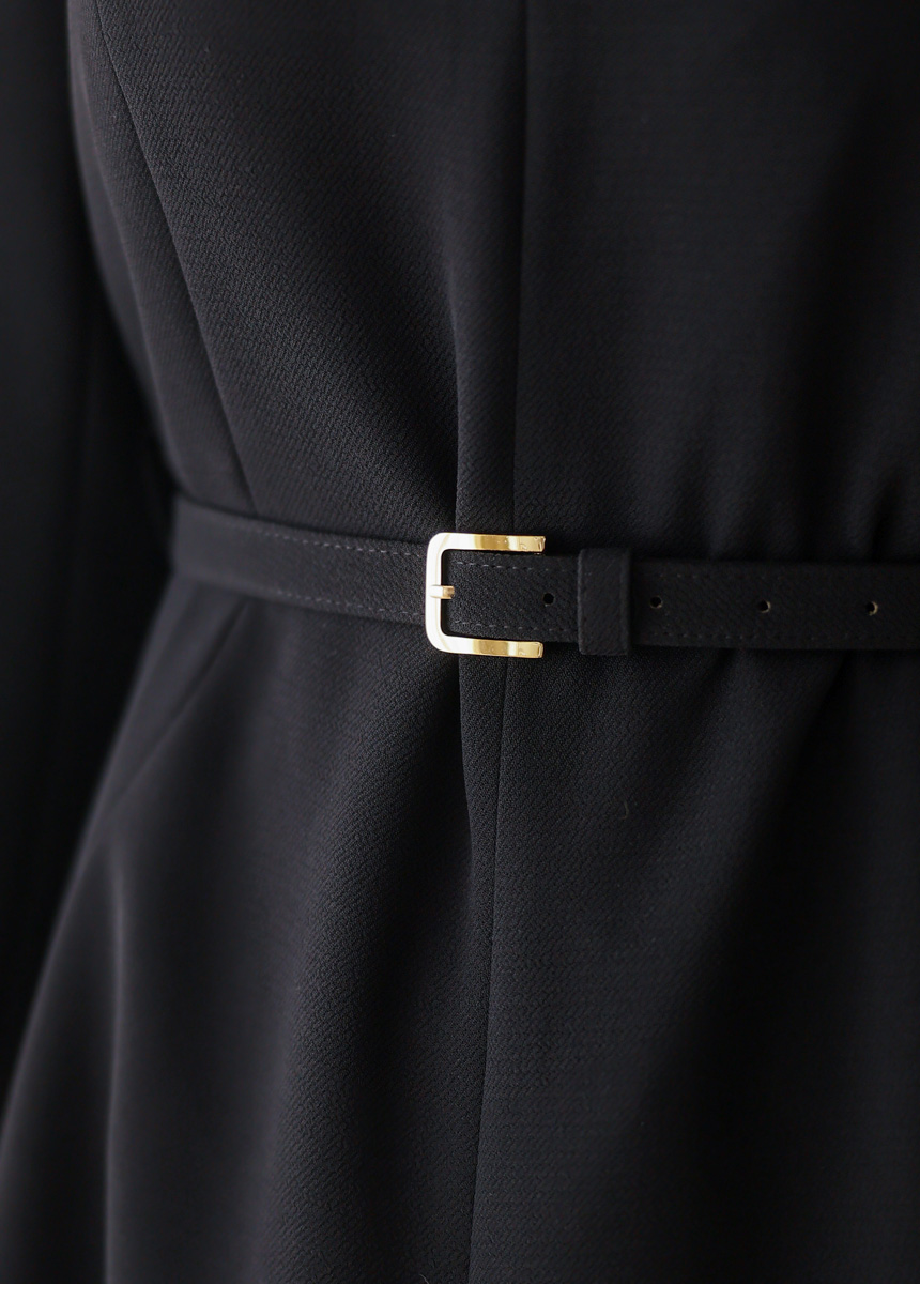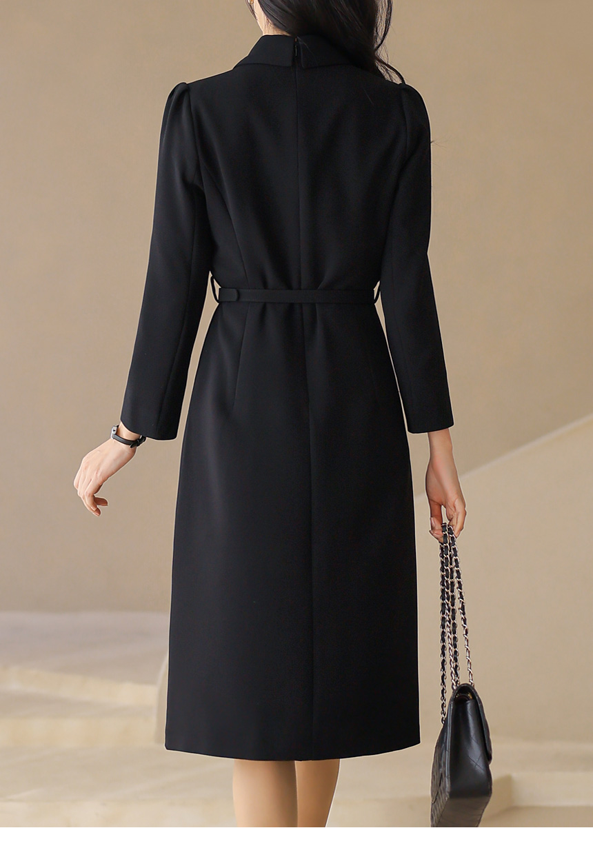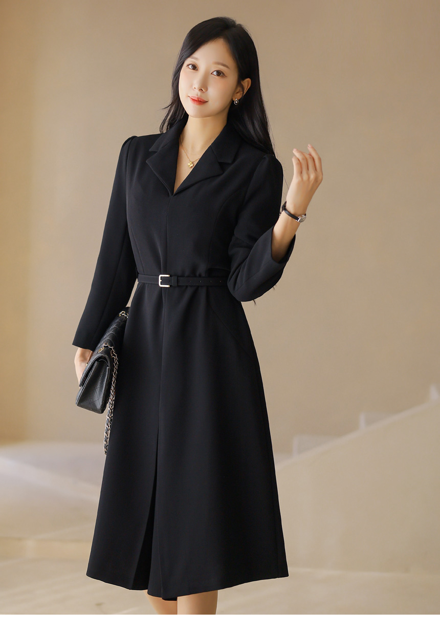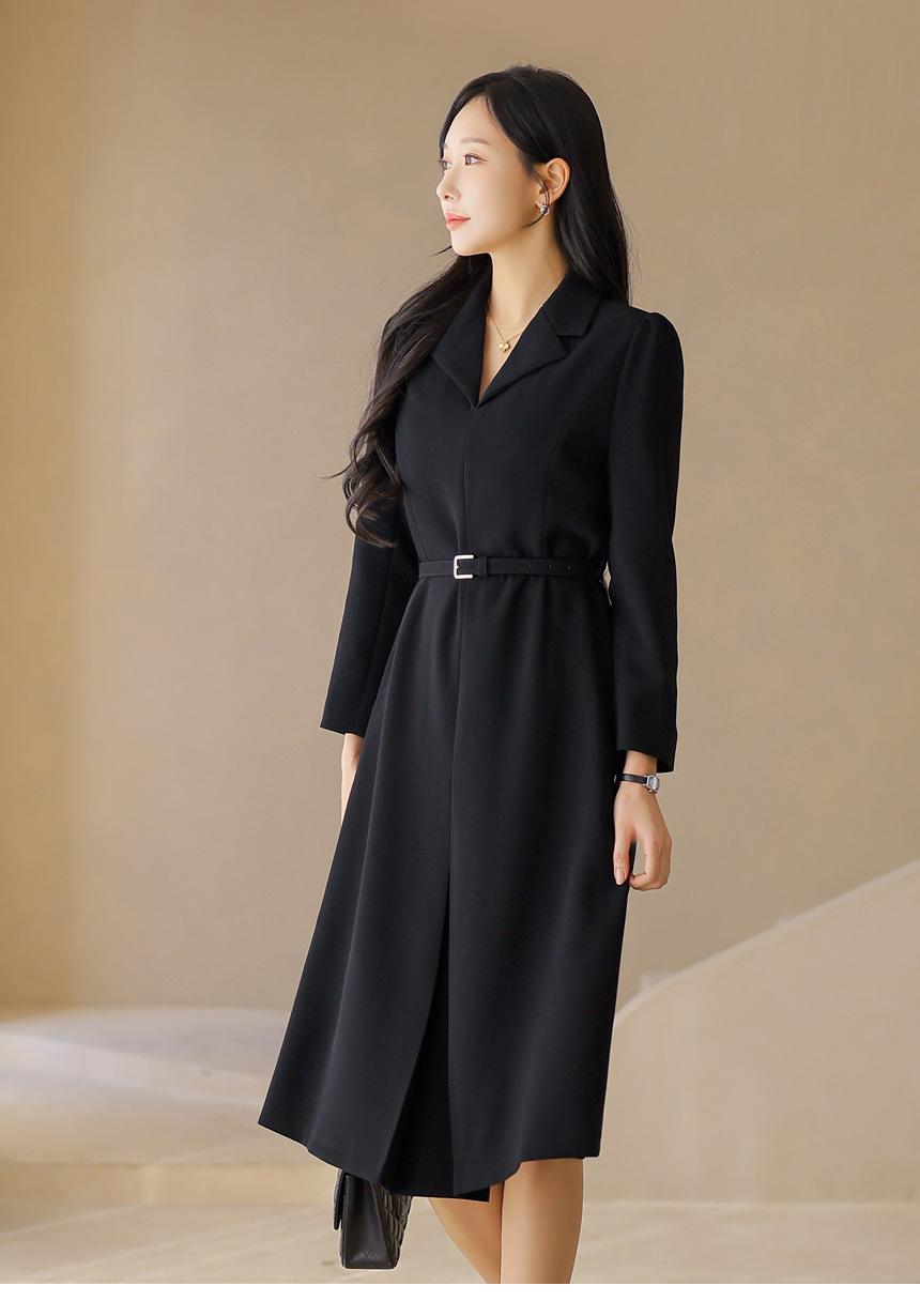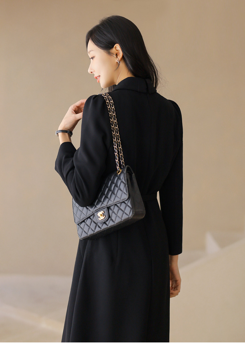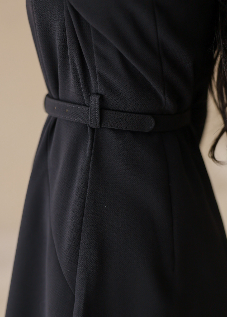 단정하고 세련된 분위기가 돋보이는 클래식 미디 블랙 원피스에요