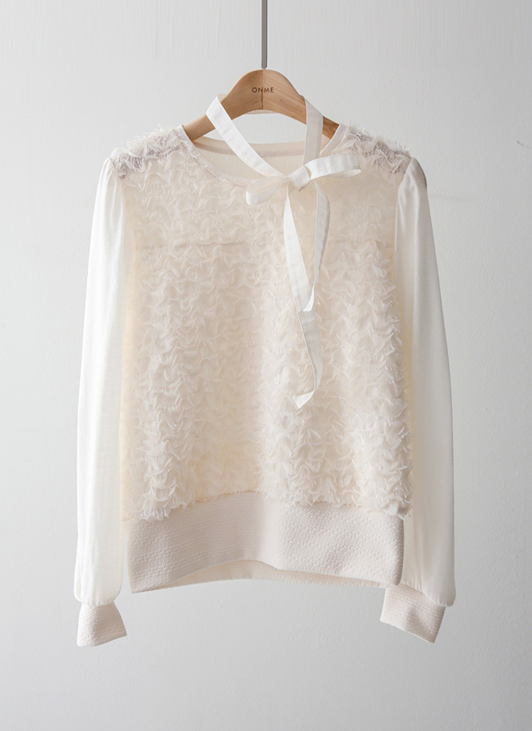 소매 부분은 은은하게 비침이 느껴지는 쉬폰 소재로 배색되어