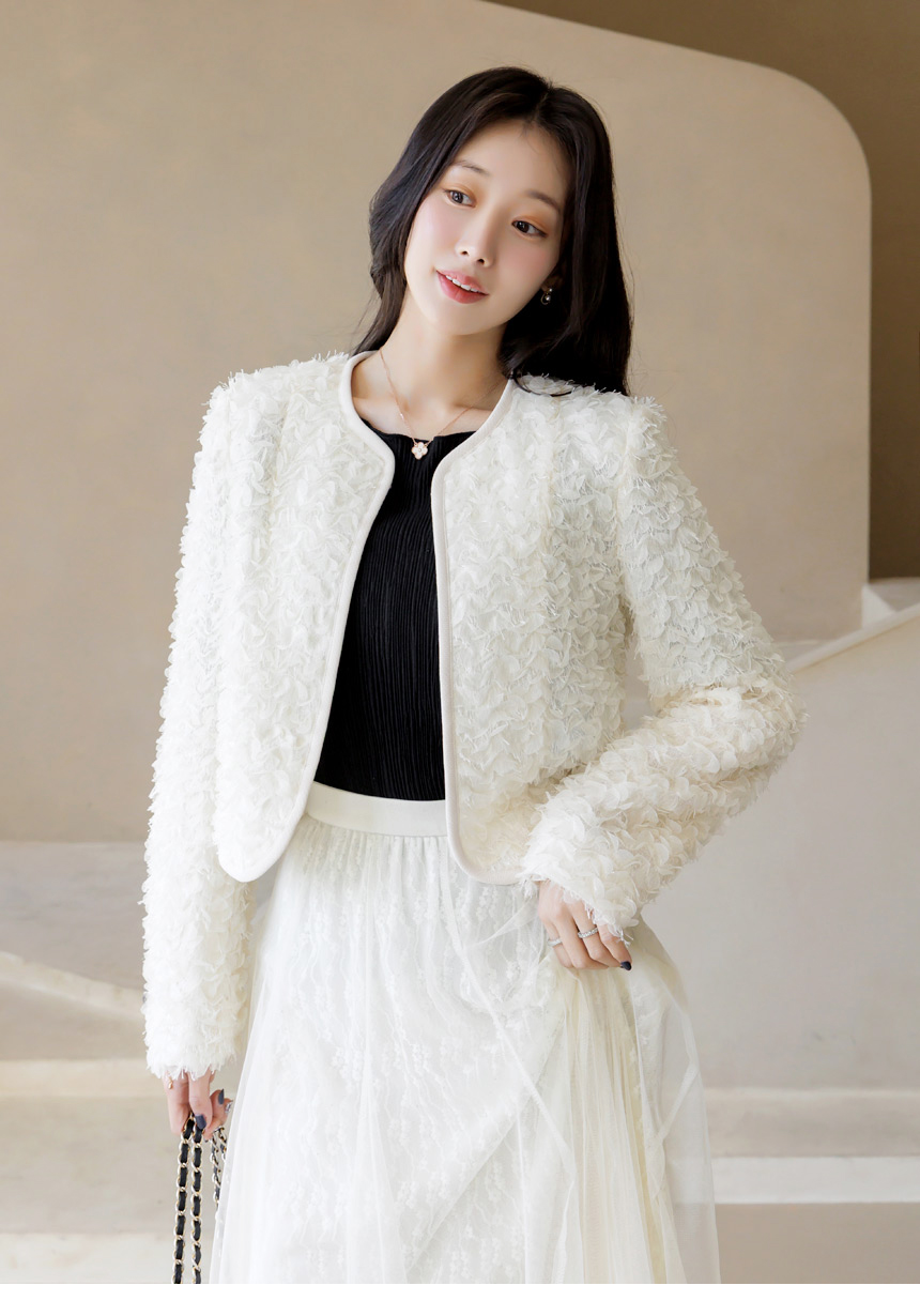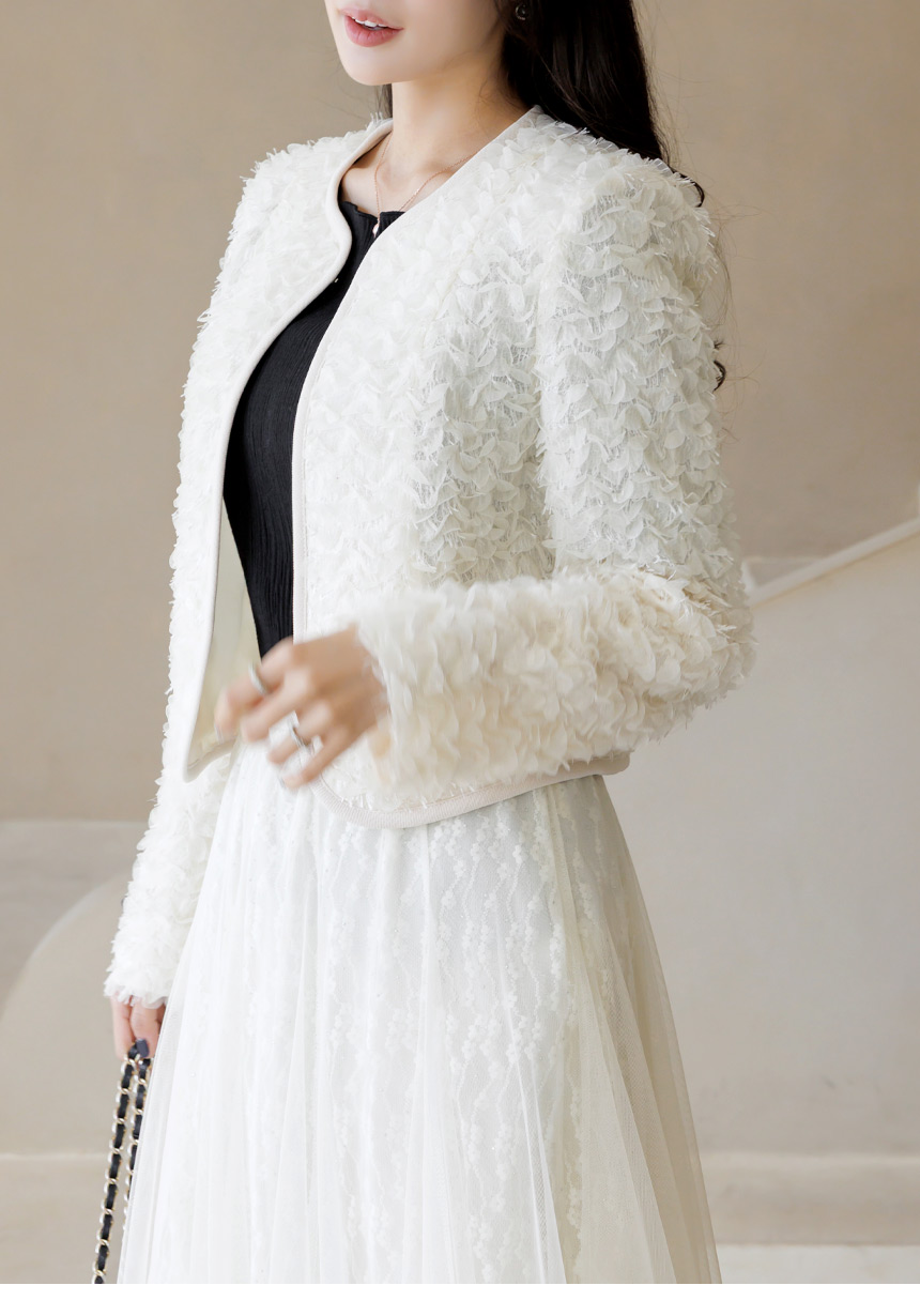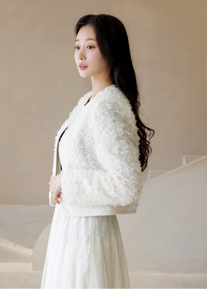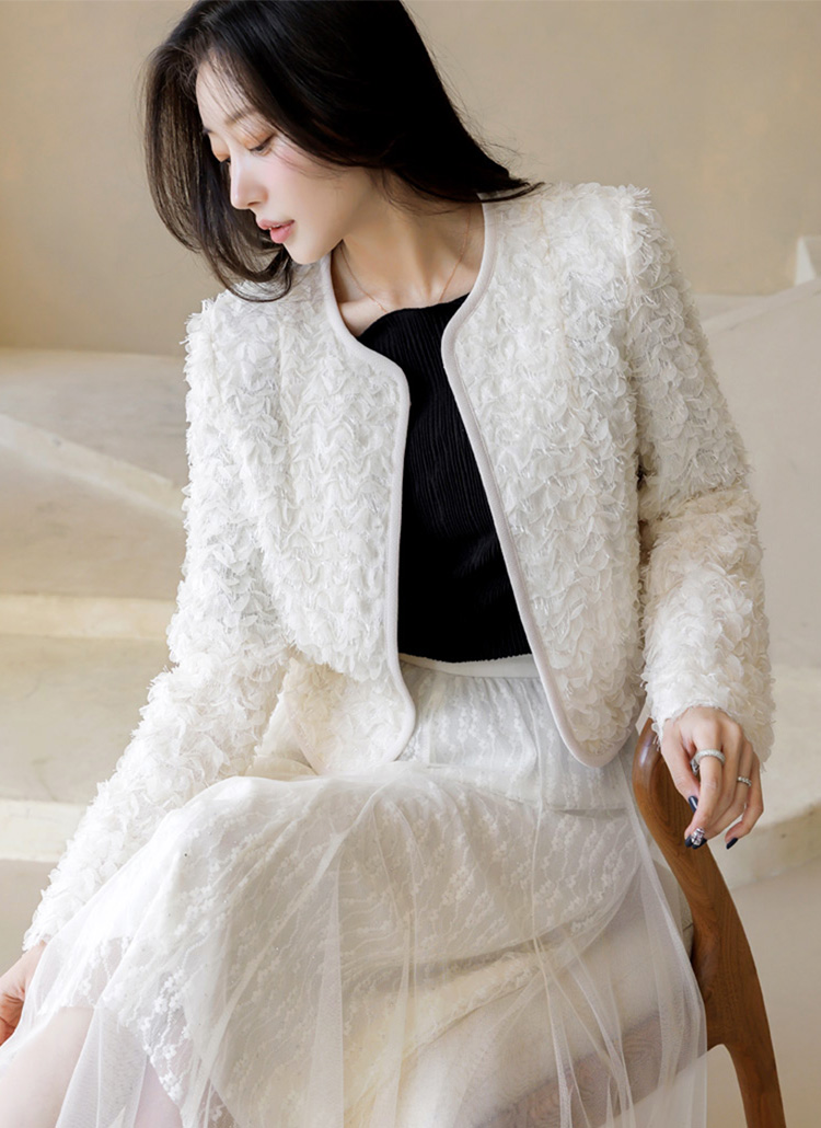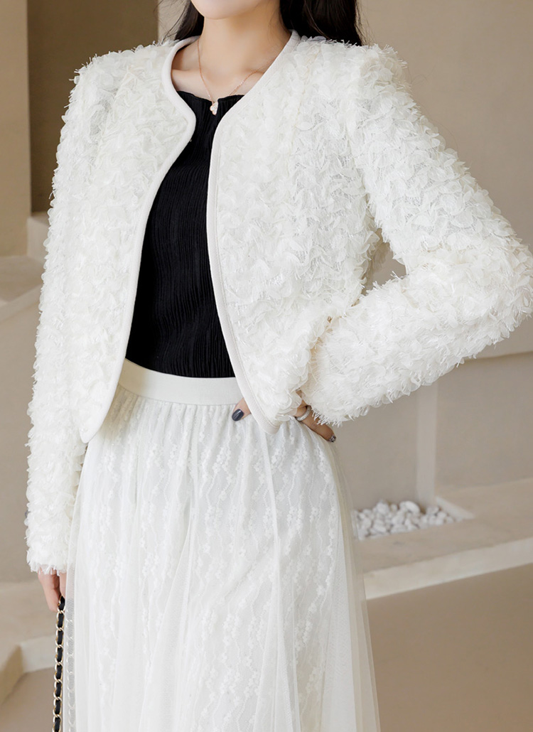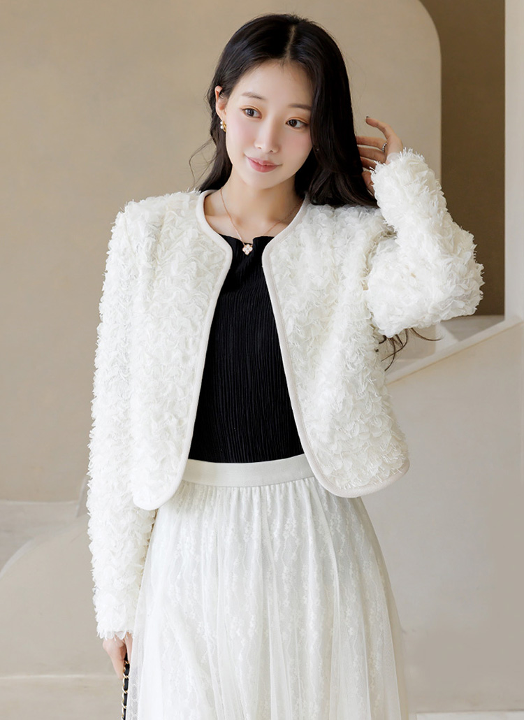 [LouisAngel] 立体フラワーノーカラージャケット jk44749