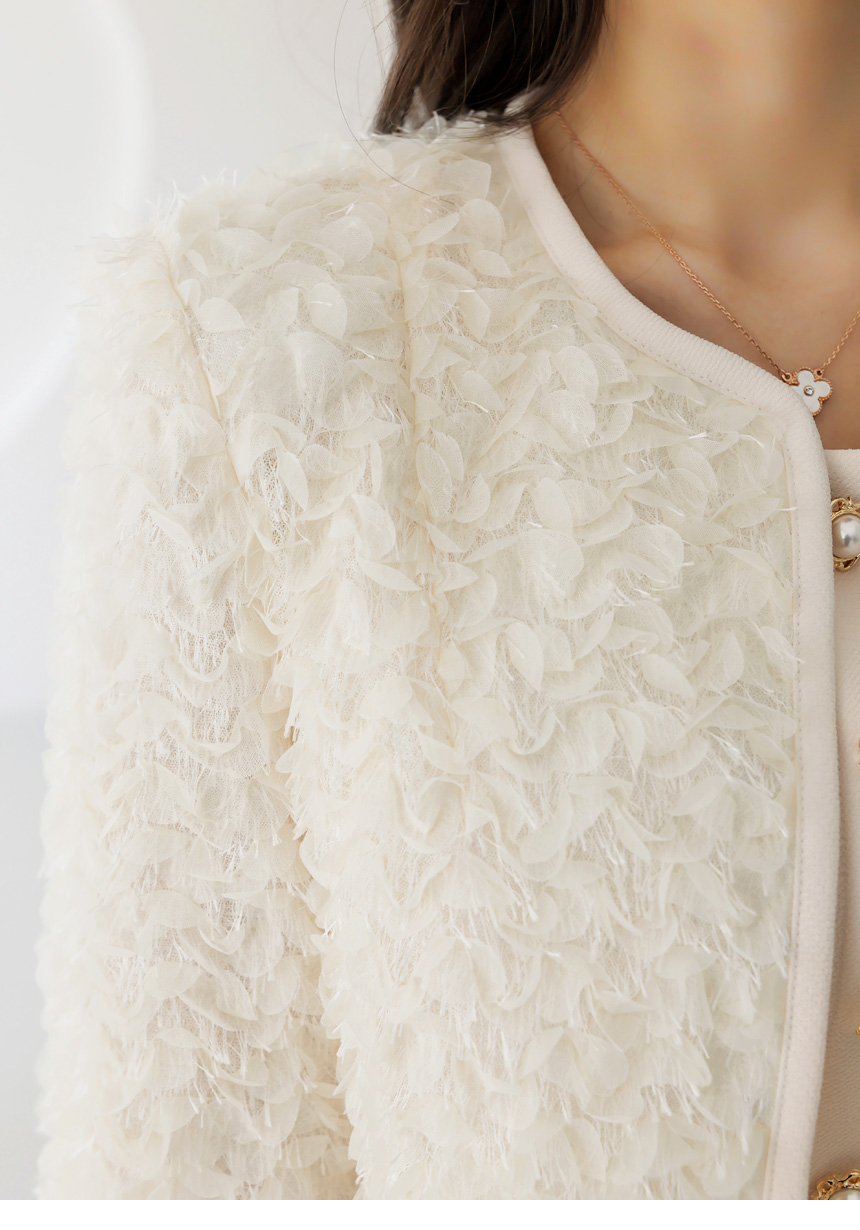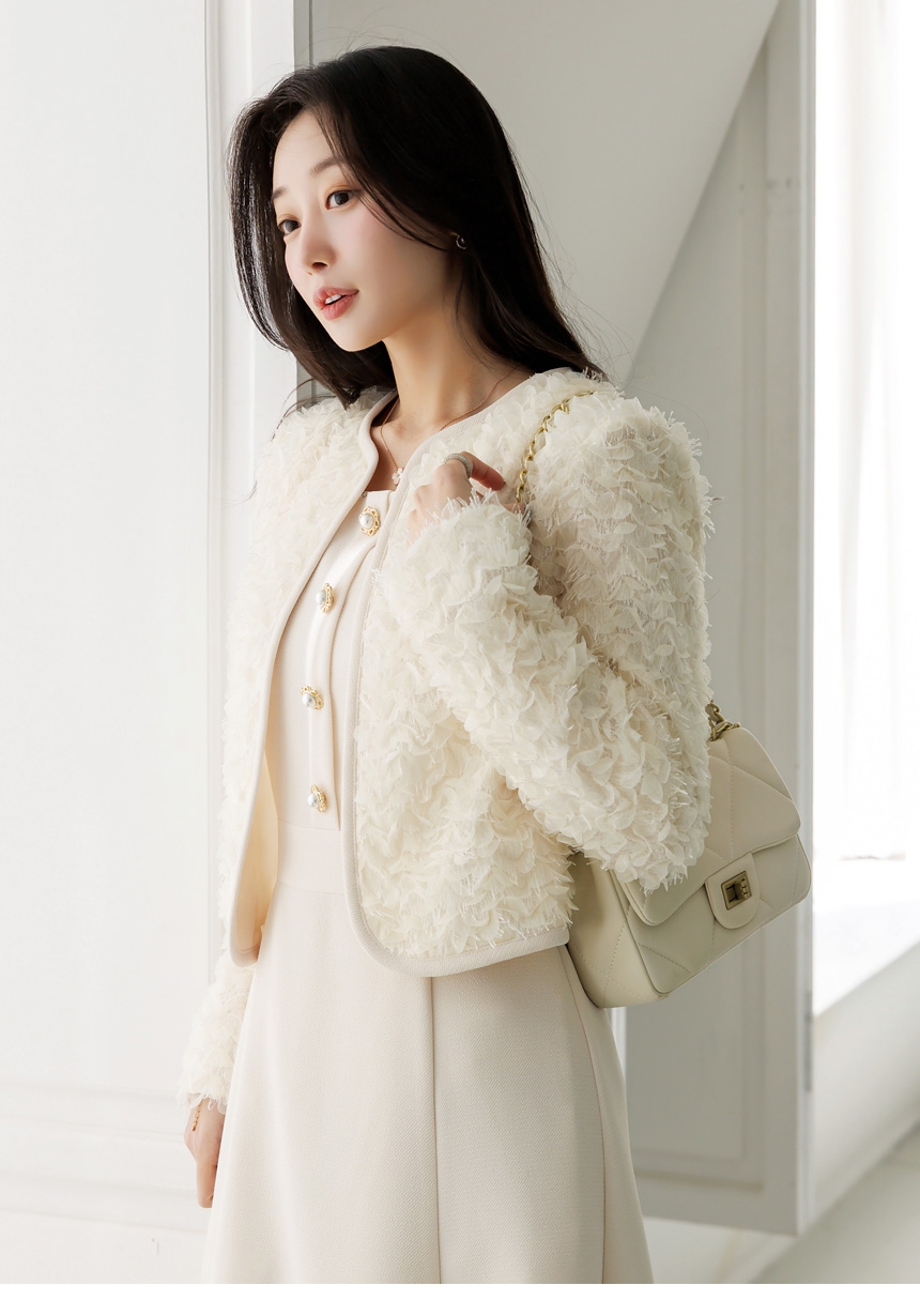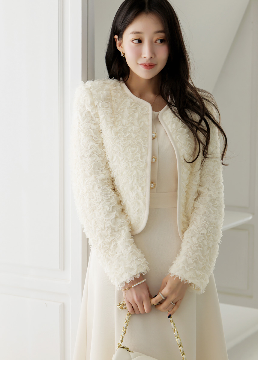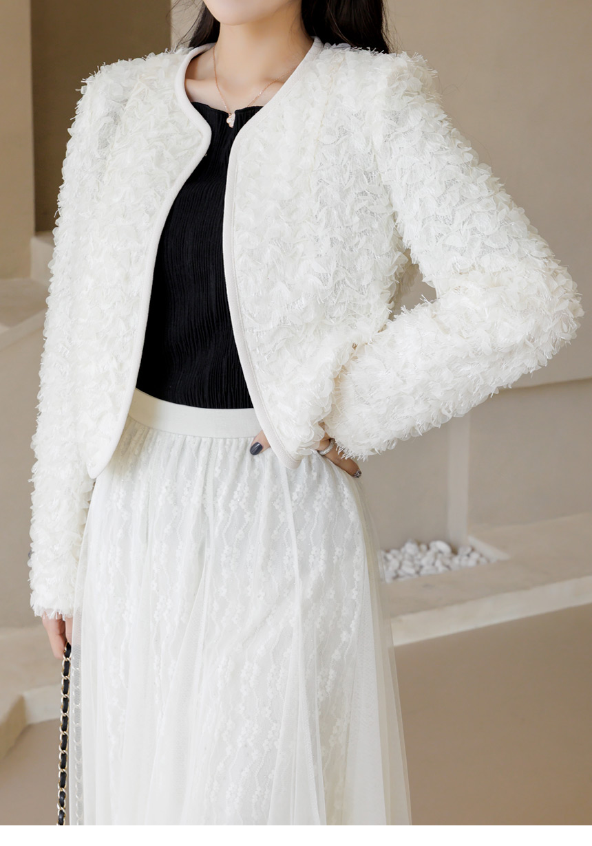 [LouisAngel] 立体フラワーノーカラージャケット jk44749