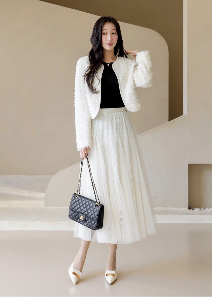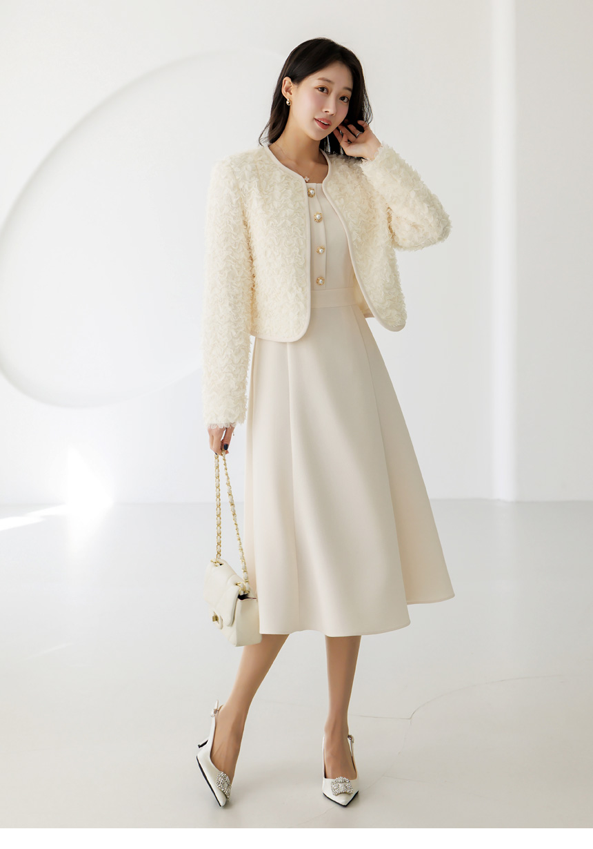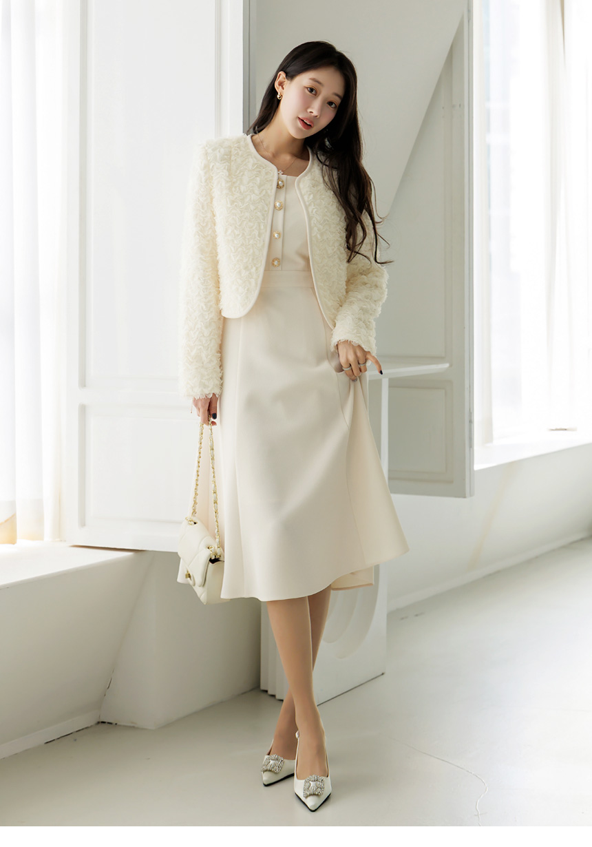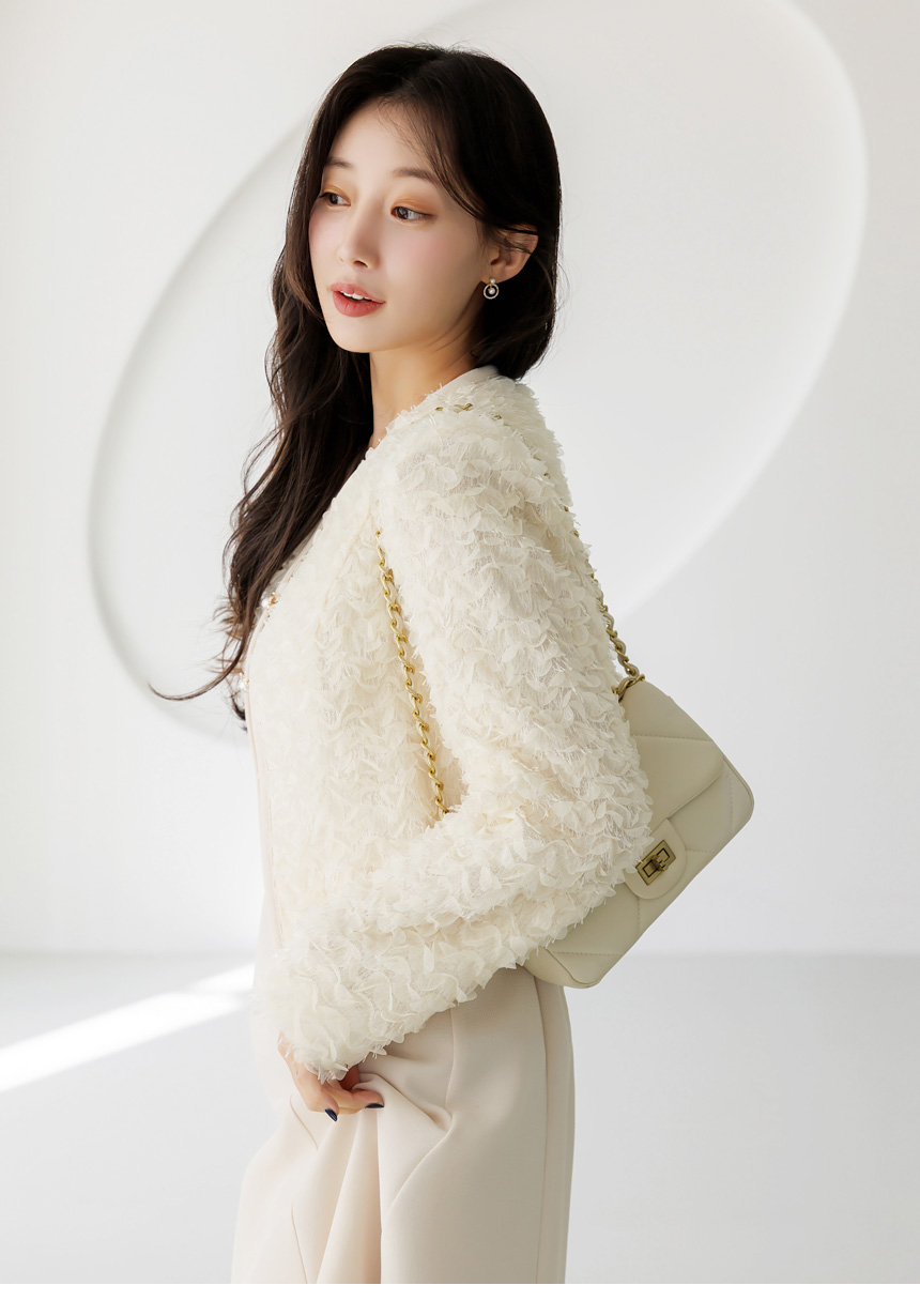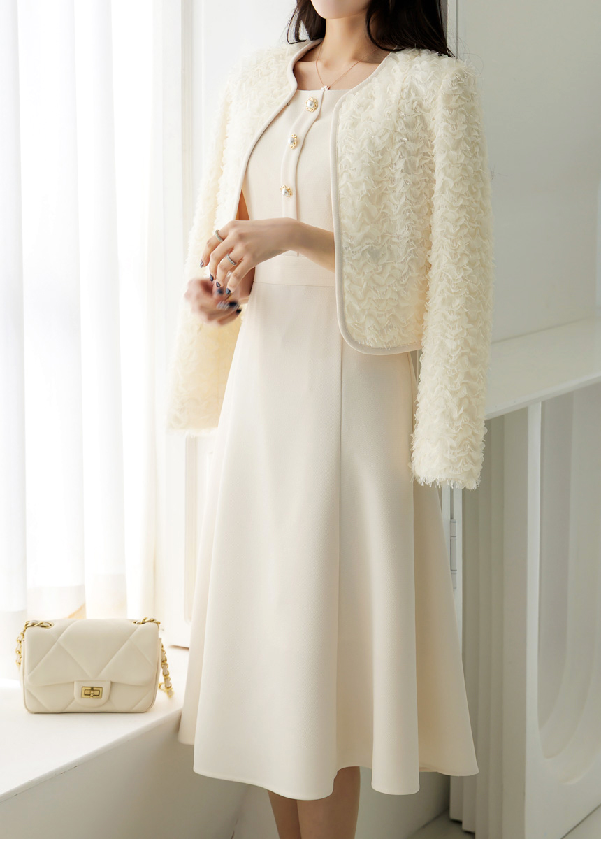 [LouisAngel] 立体フラワーノーカラージャケット jk44749