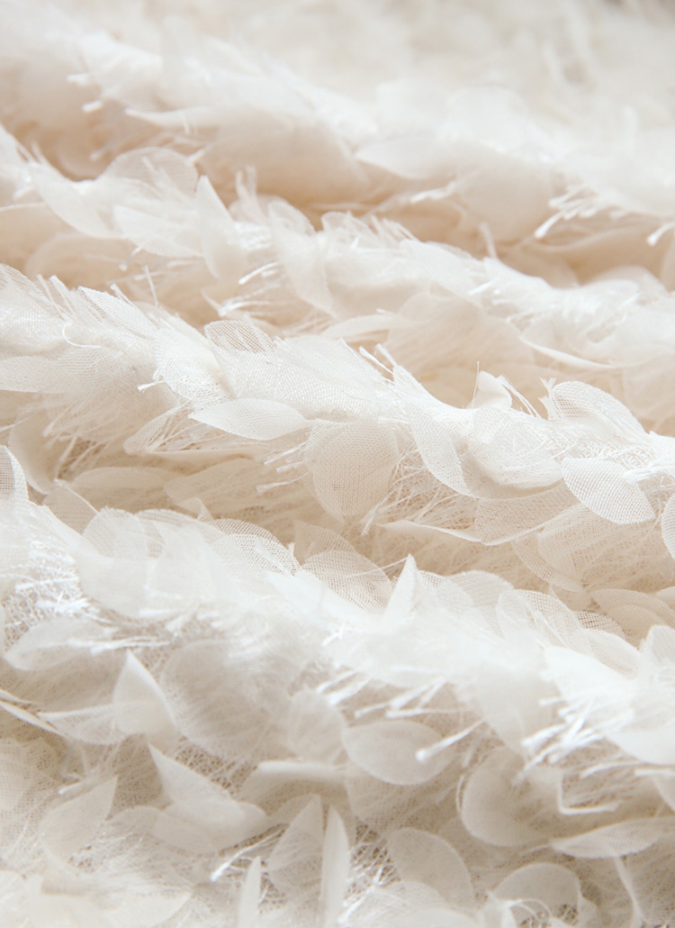 ビーズ、スパンコールなどの装飾はビジュー周りを基準に畳んだりシワにならないようにご注意ください。