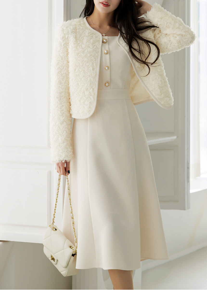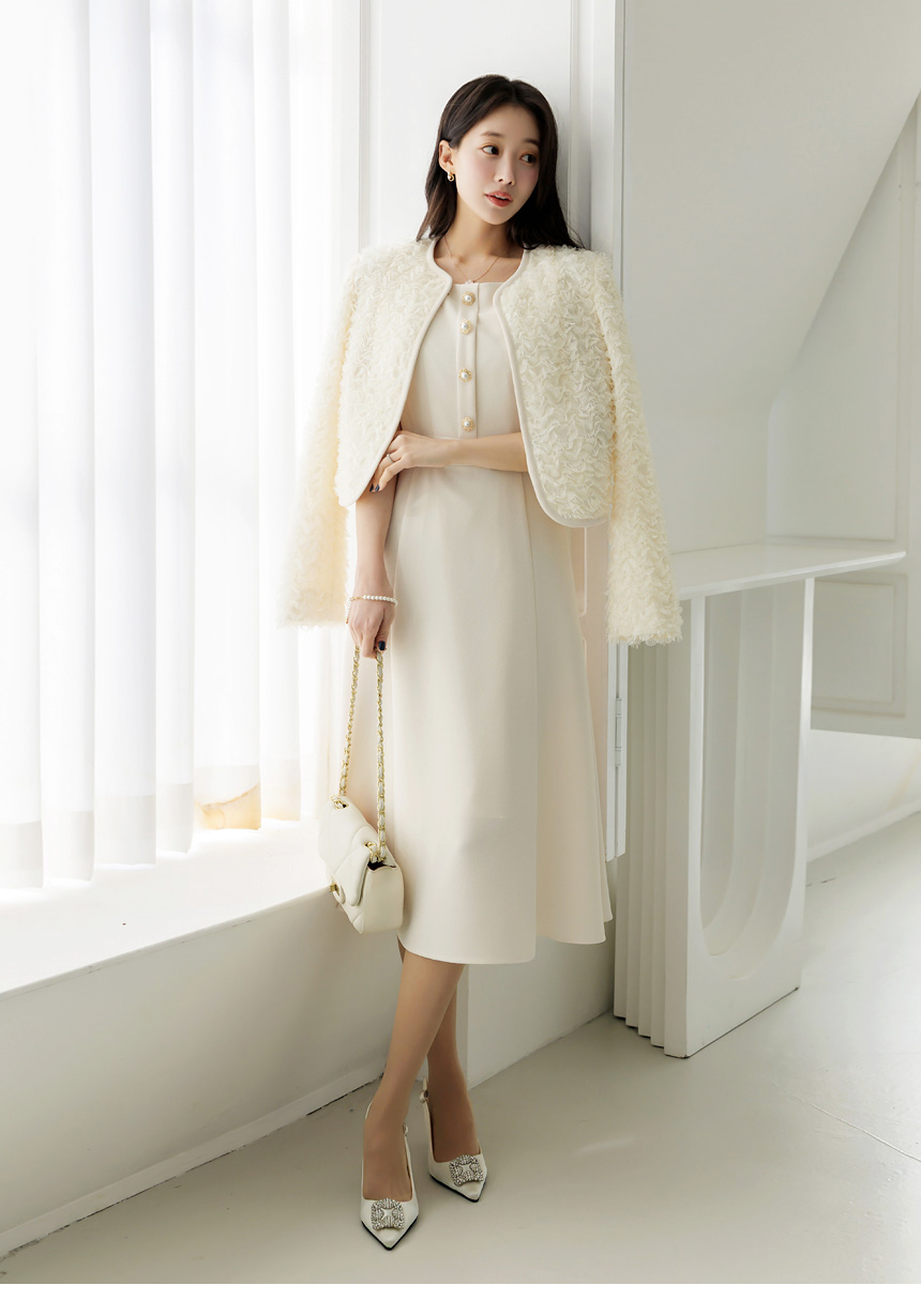 원피스 위에 매치하면 더욱 여성스럽고 단정한 분위기를 연출하며