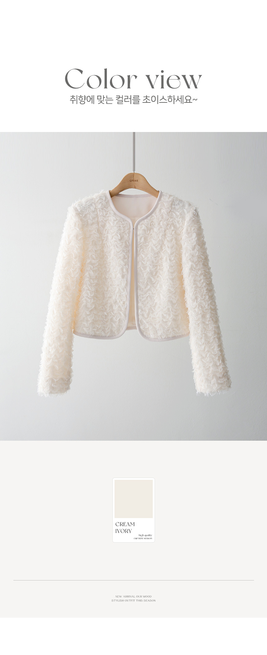부담 없이 걸치기 좋은 볼레로 타입으로 제작되어