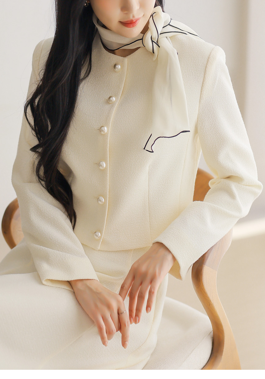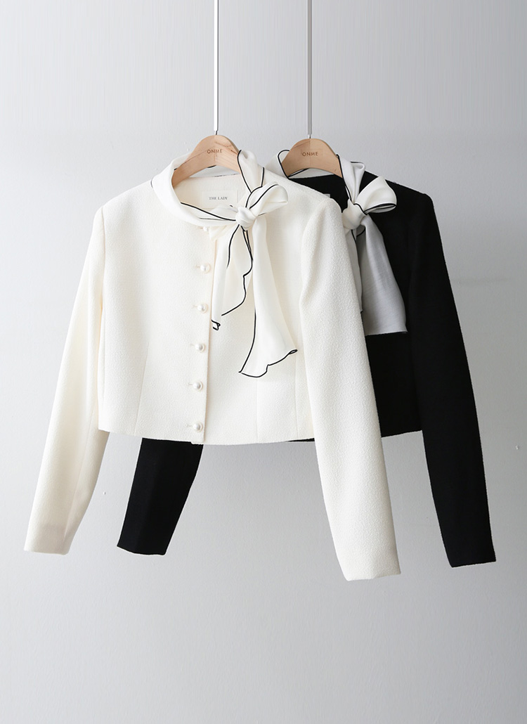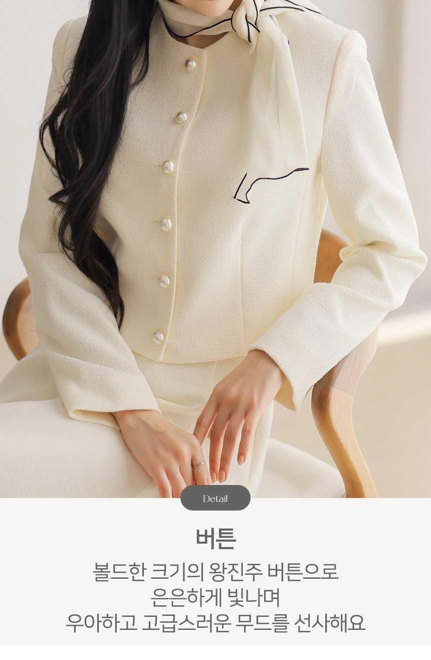 프론트에는 볼드한 왕진주 버튼을 더해 은은하게 빛나는 포인트를 완성했으며