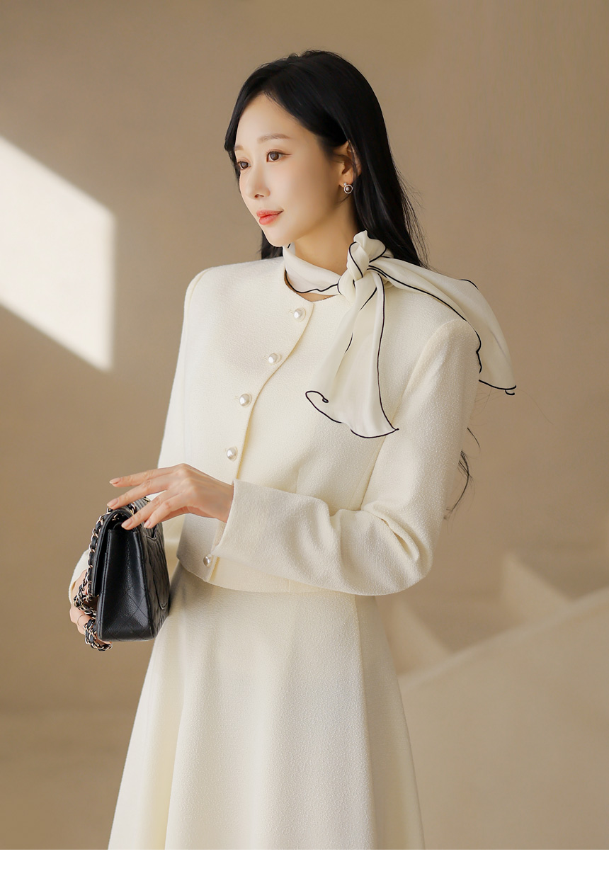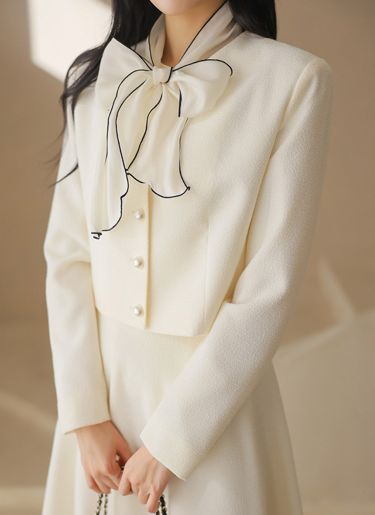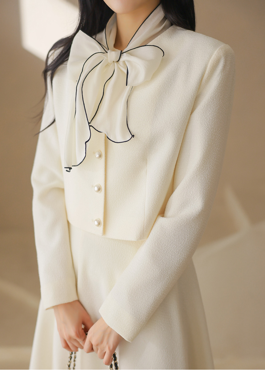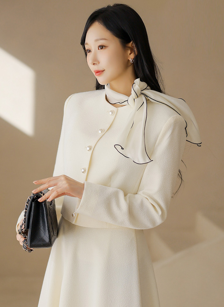 프론트에는 볼드한 왕진주 버튼을 더해 은은하게 빛나는 포인트를 완성했으며