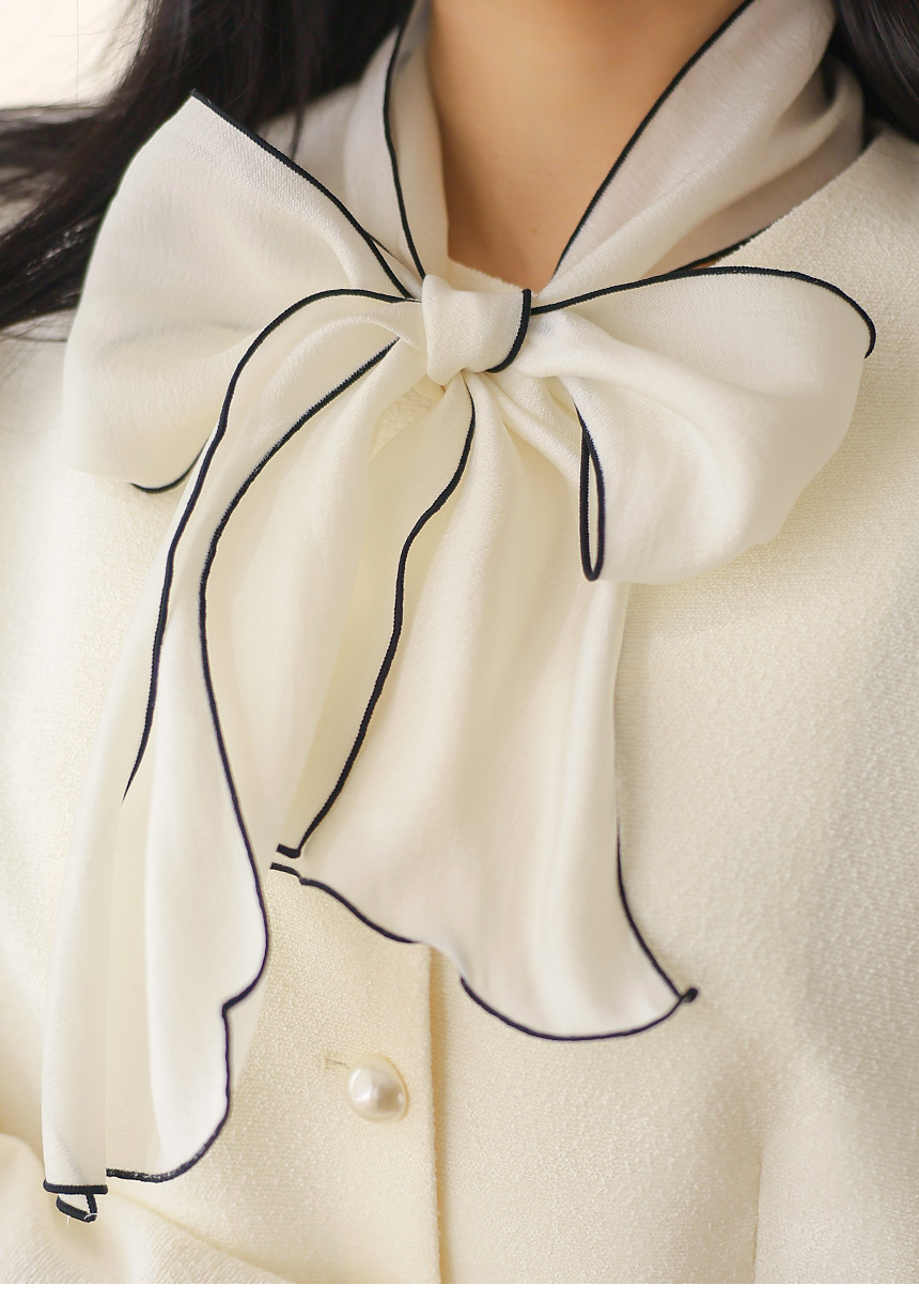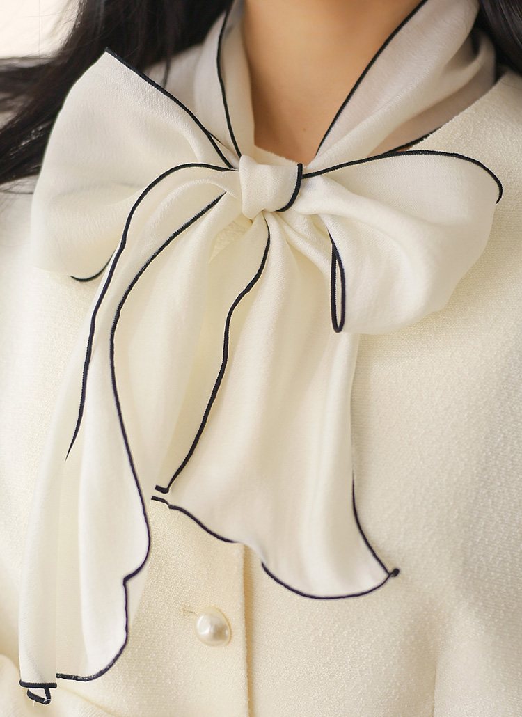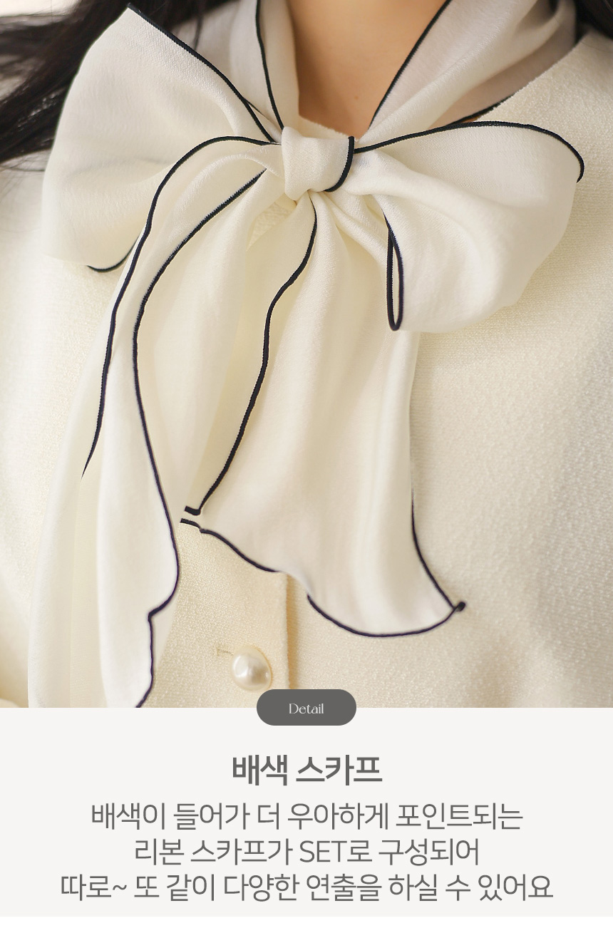 배색 디테일이 더해진 시스루 스카프 리본이 SET로 구성되어