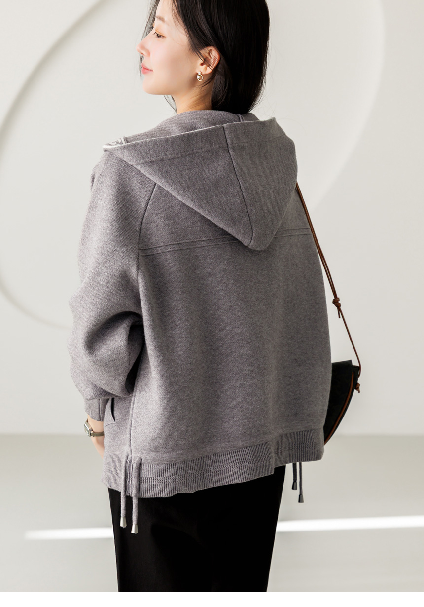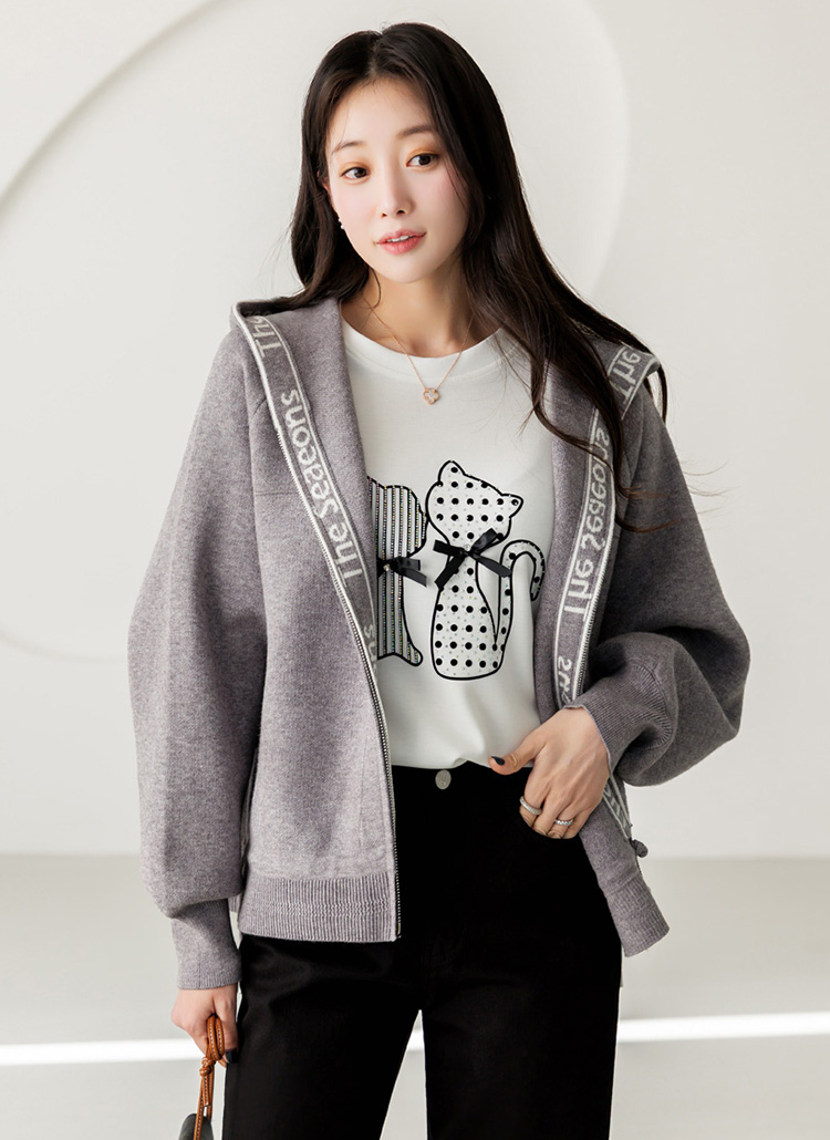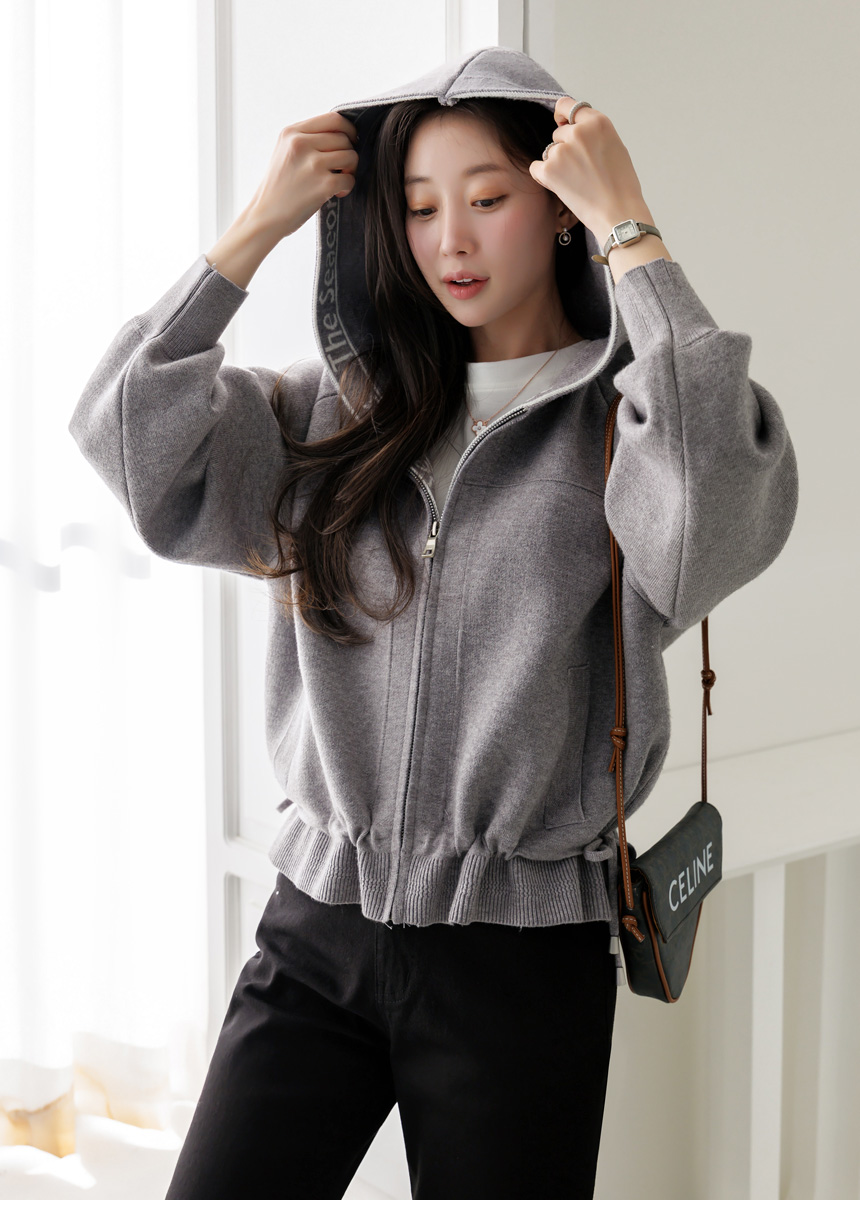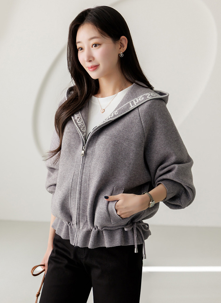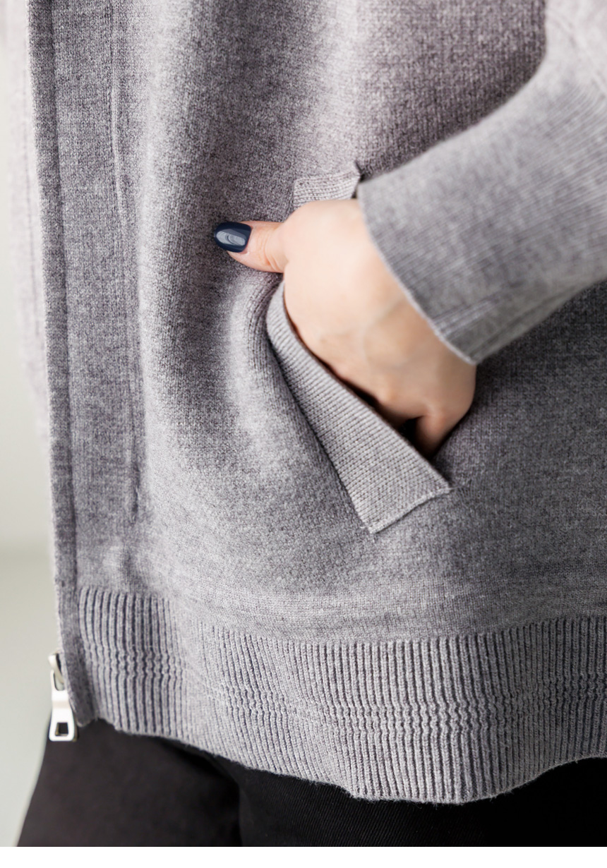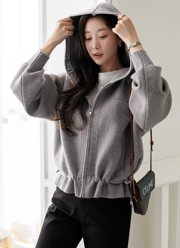 편안함과 세련된 포인트를 동시에 담아낸 니트 후드 집업 가디건이에요
