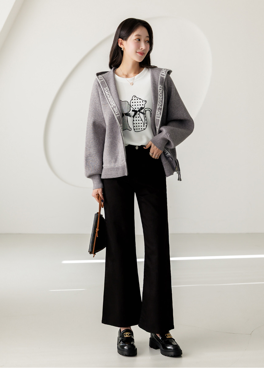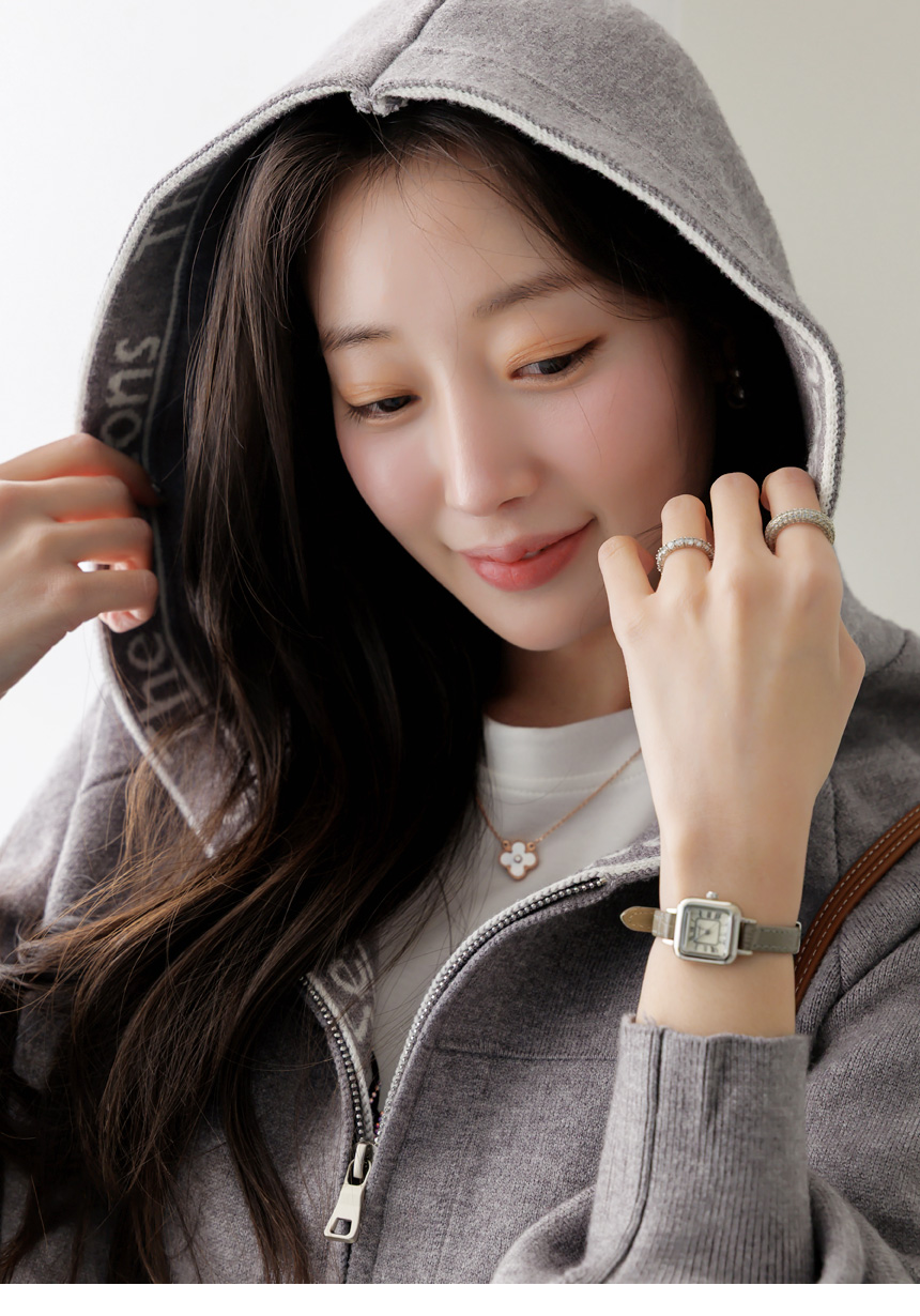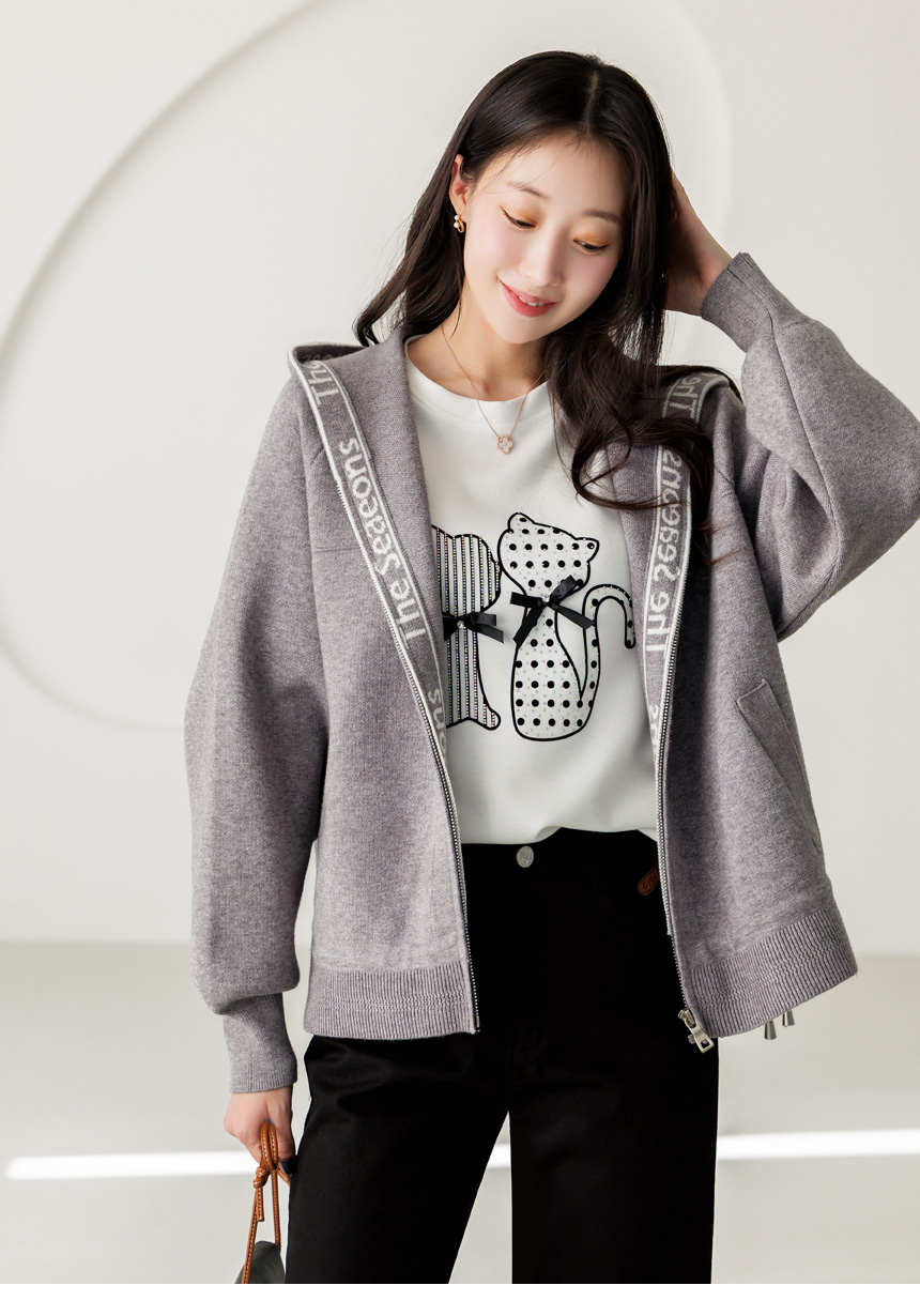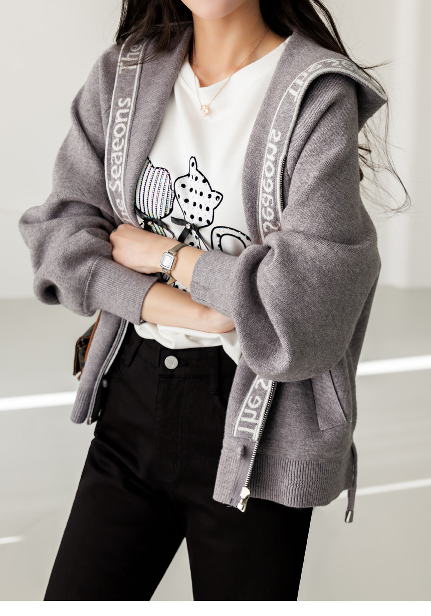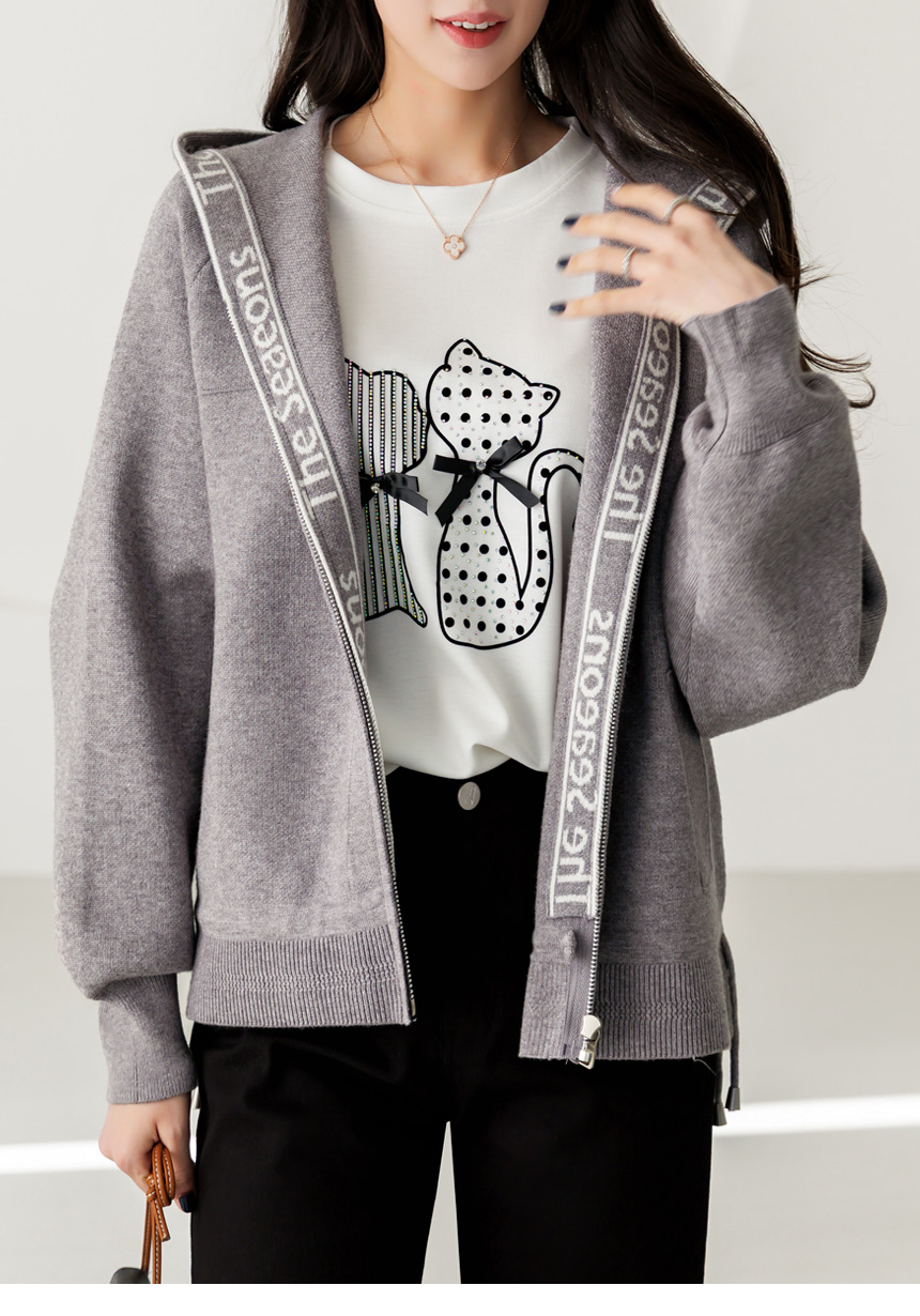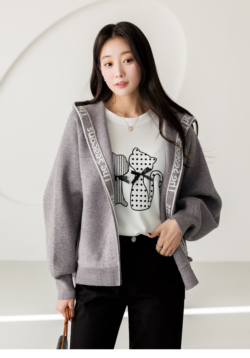 편안함과 세련된 포인트를 동시에 담아낸 니트 후드 집업 가디건이에요