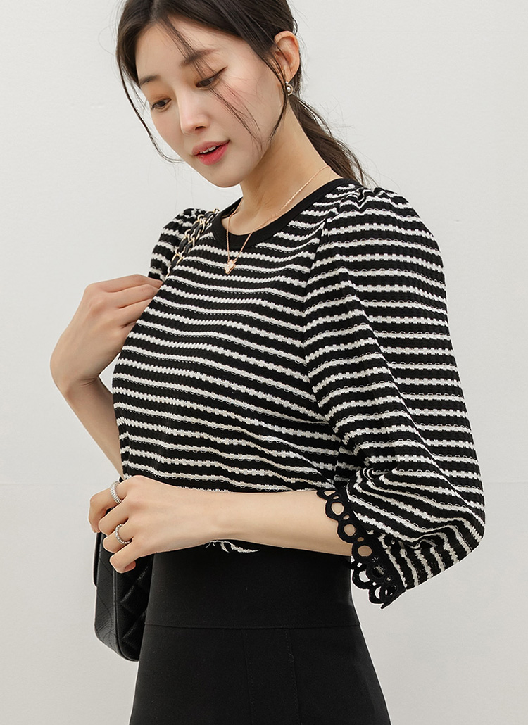 소매 밑단에는 펀칭 레이스를 배색해 시원시원한 느낌과 함께