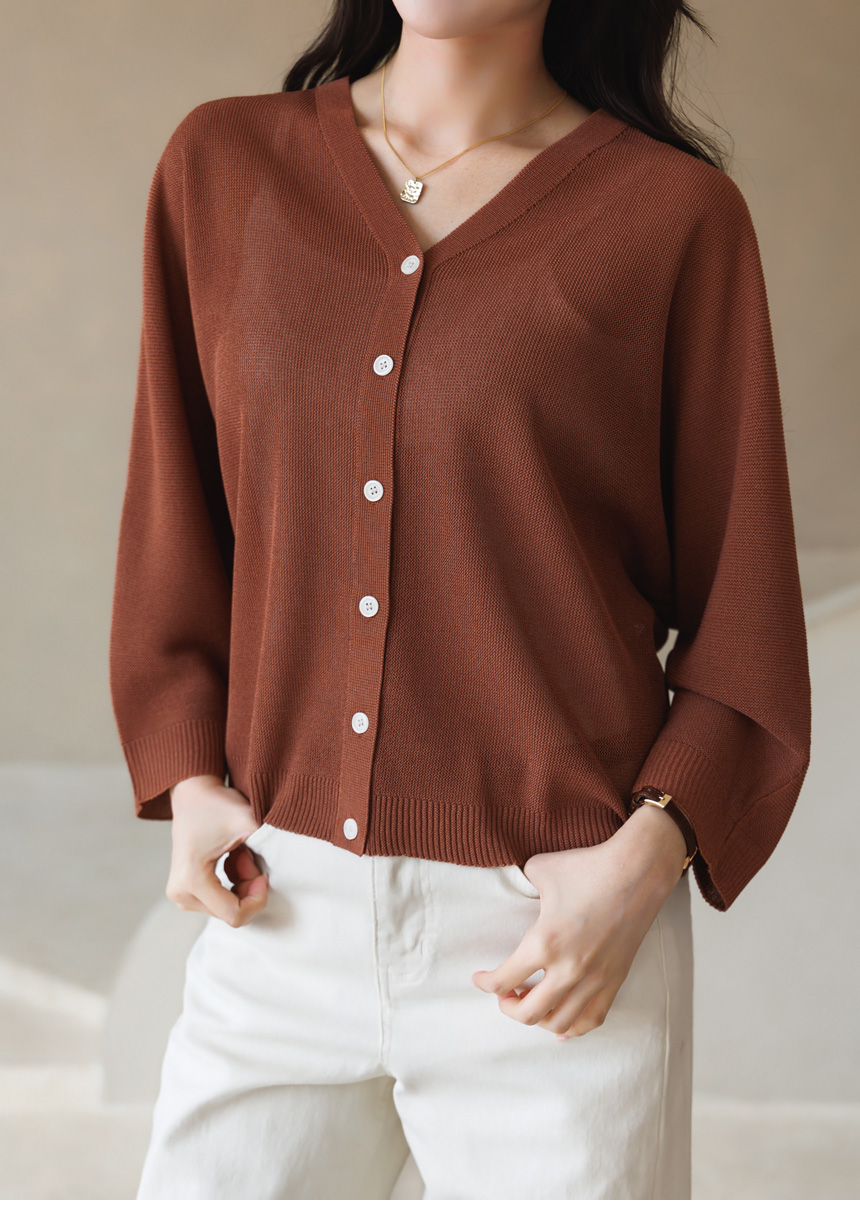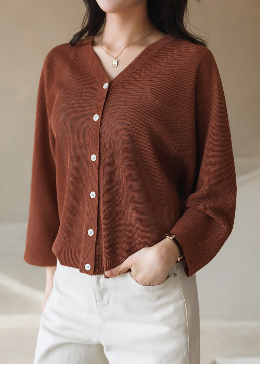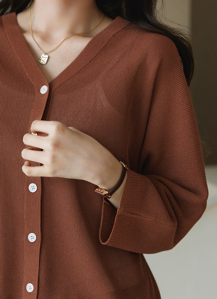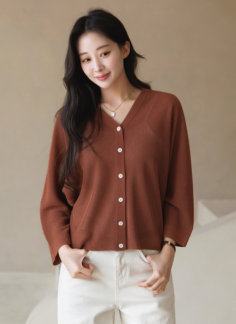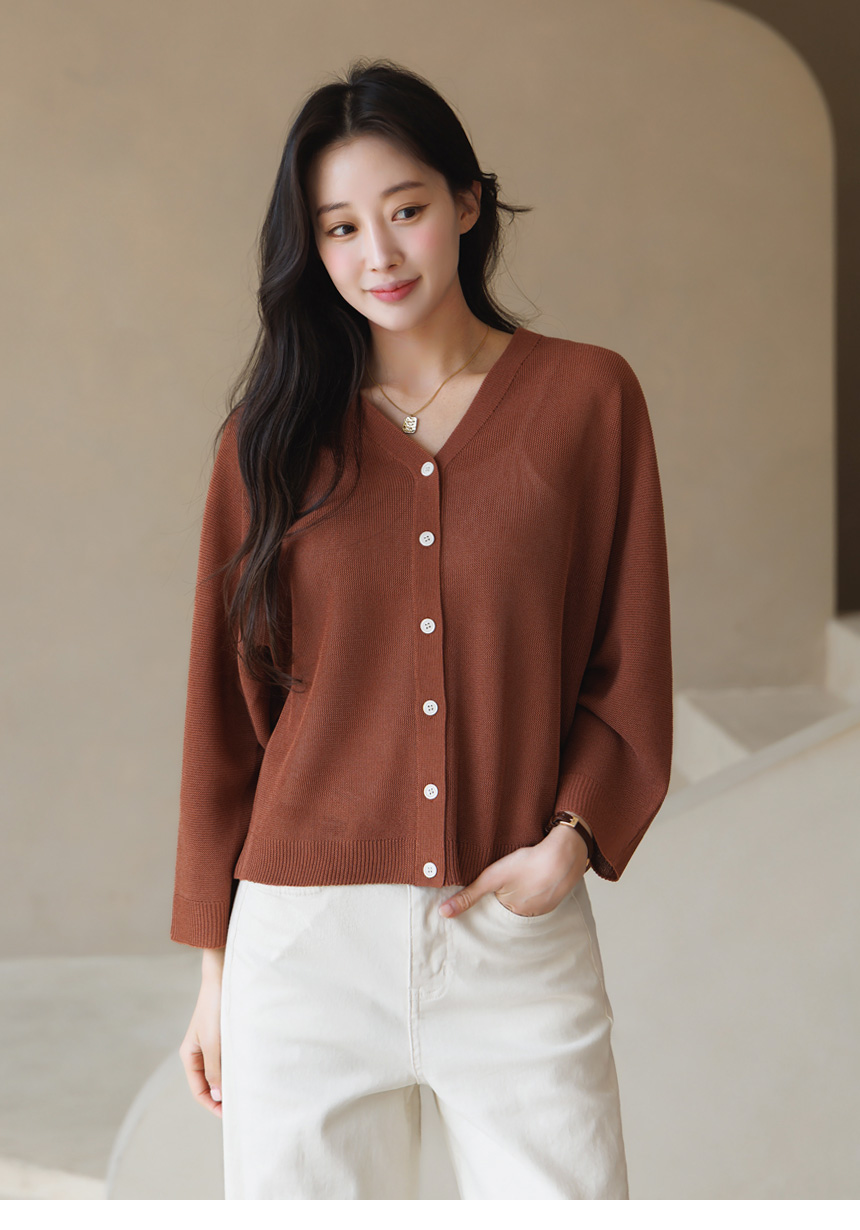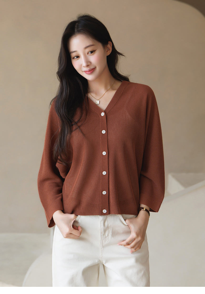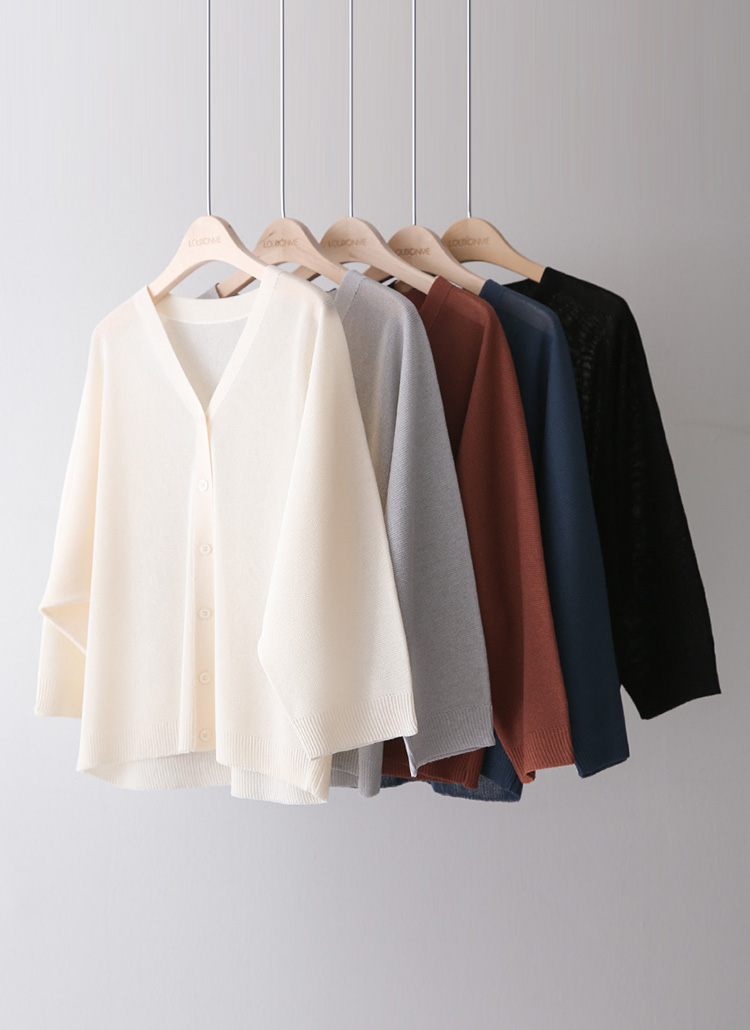 [Theonme] 헤이레 여리 루즈 시스루 양두 브이넥 니트 가디건