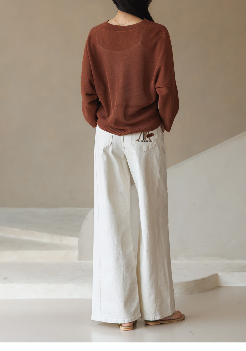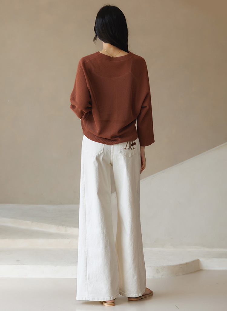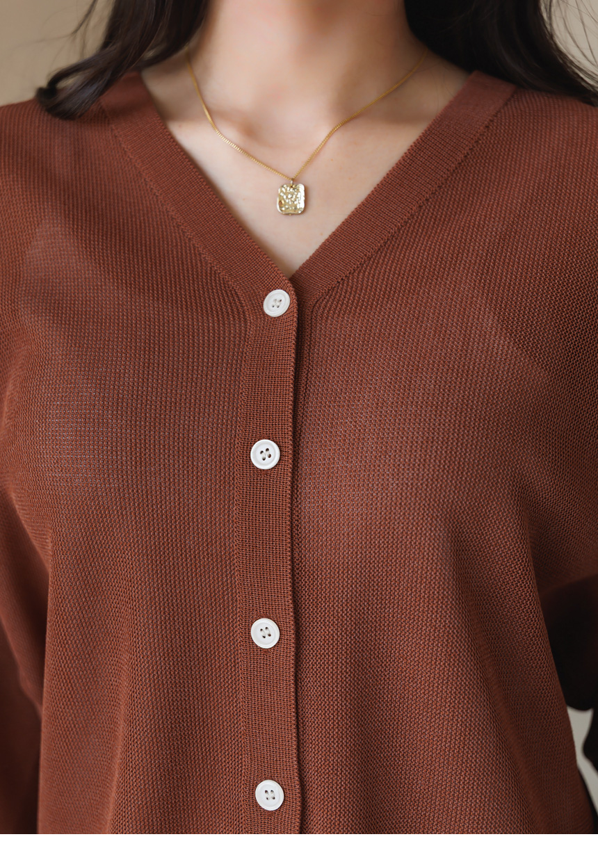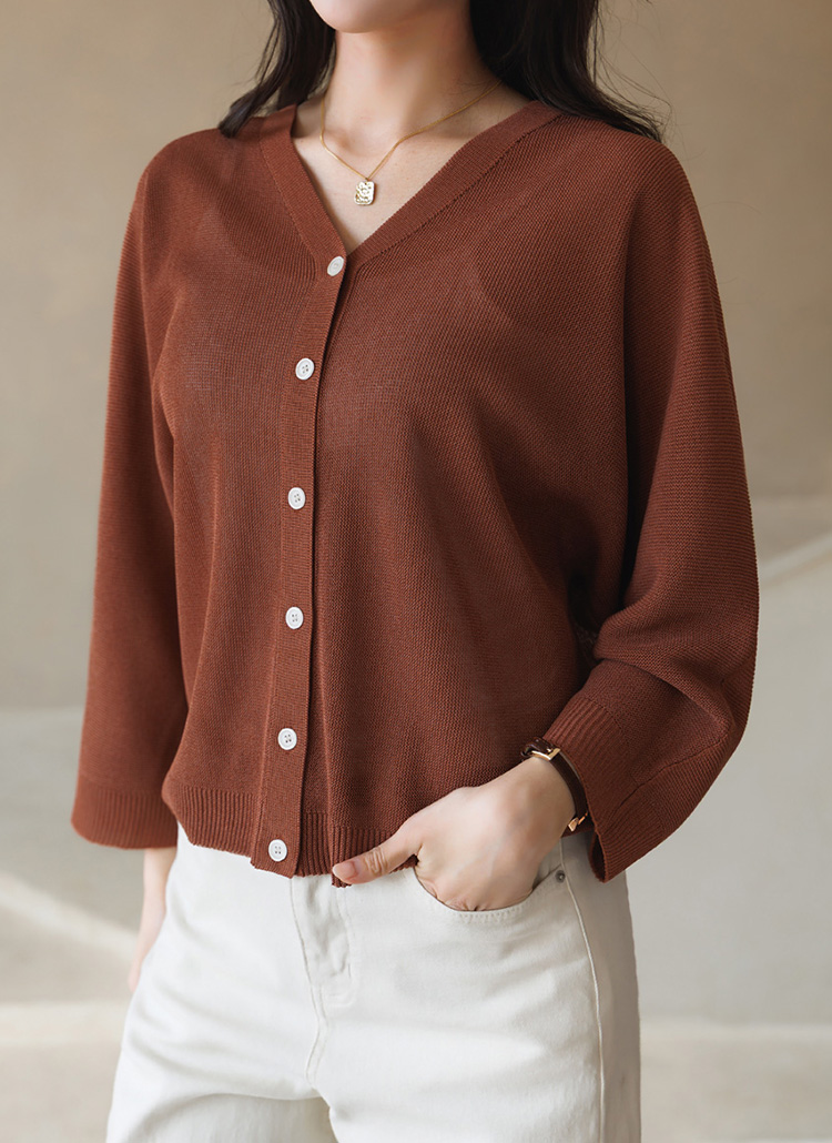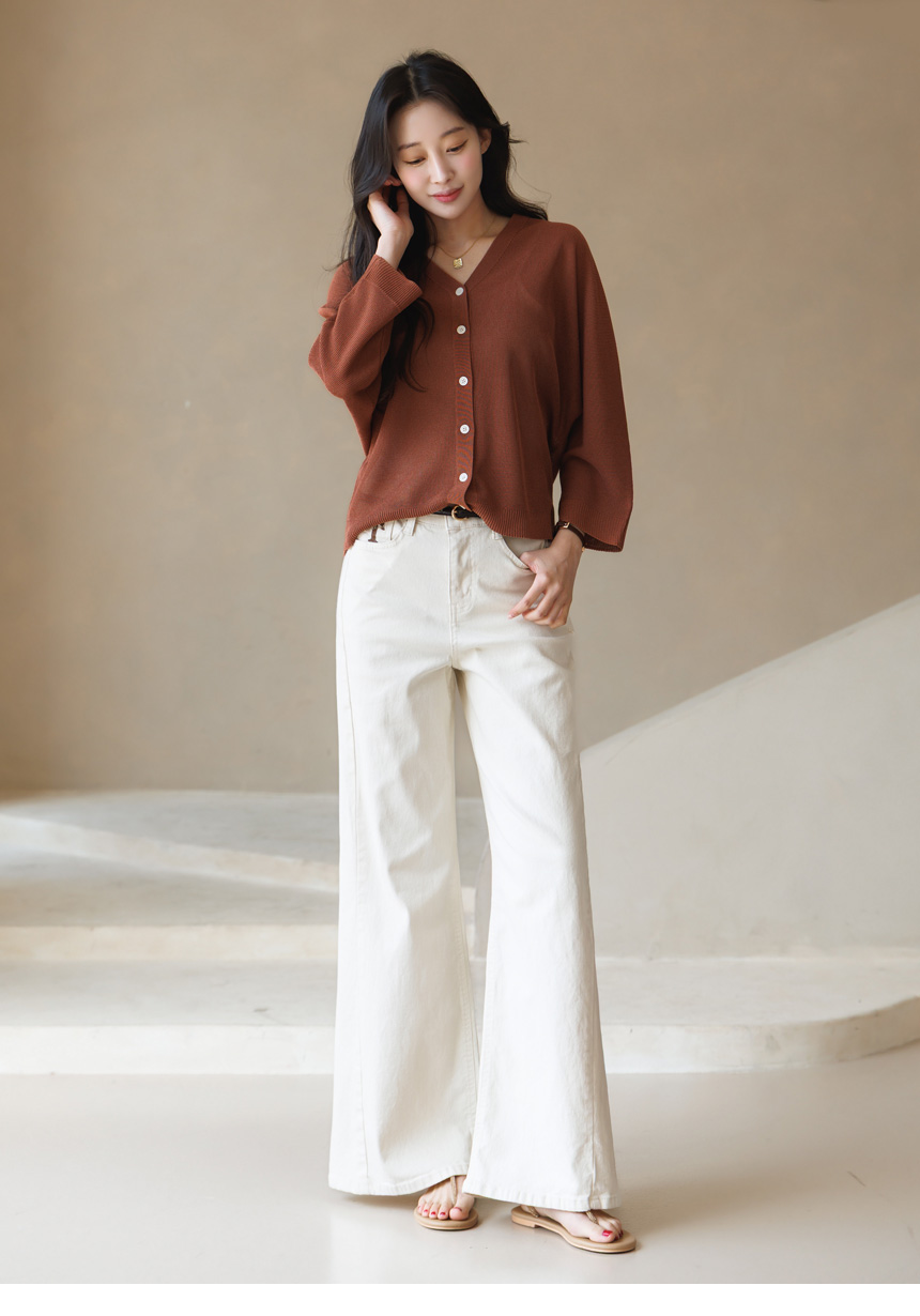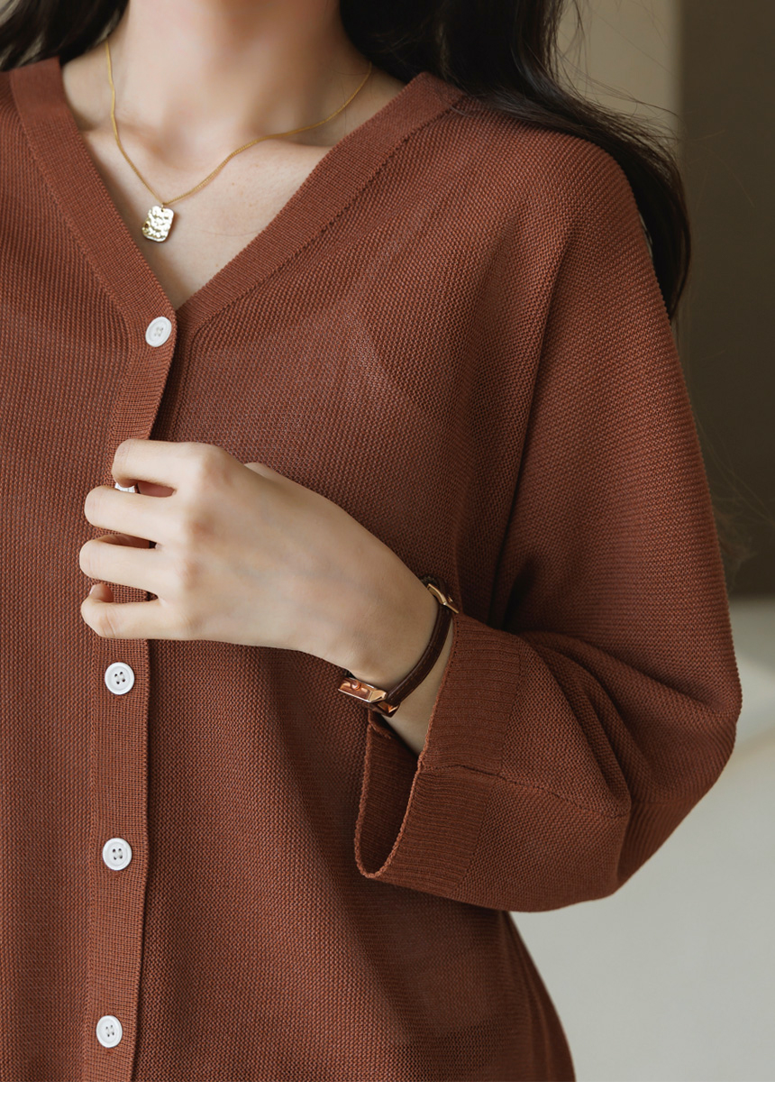 [Theonme] 헤이레 여리 루즈 시스루 양두 브이넥 니트 가디건