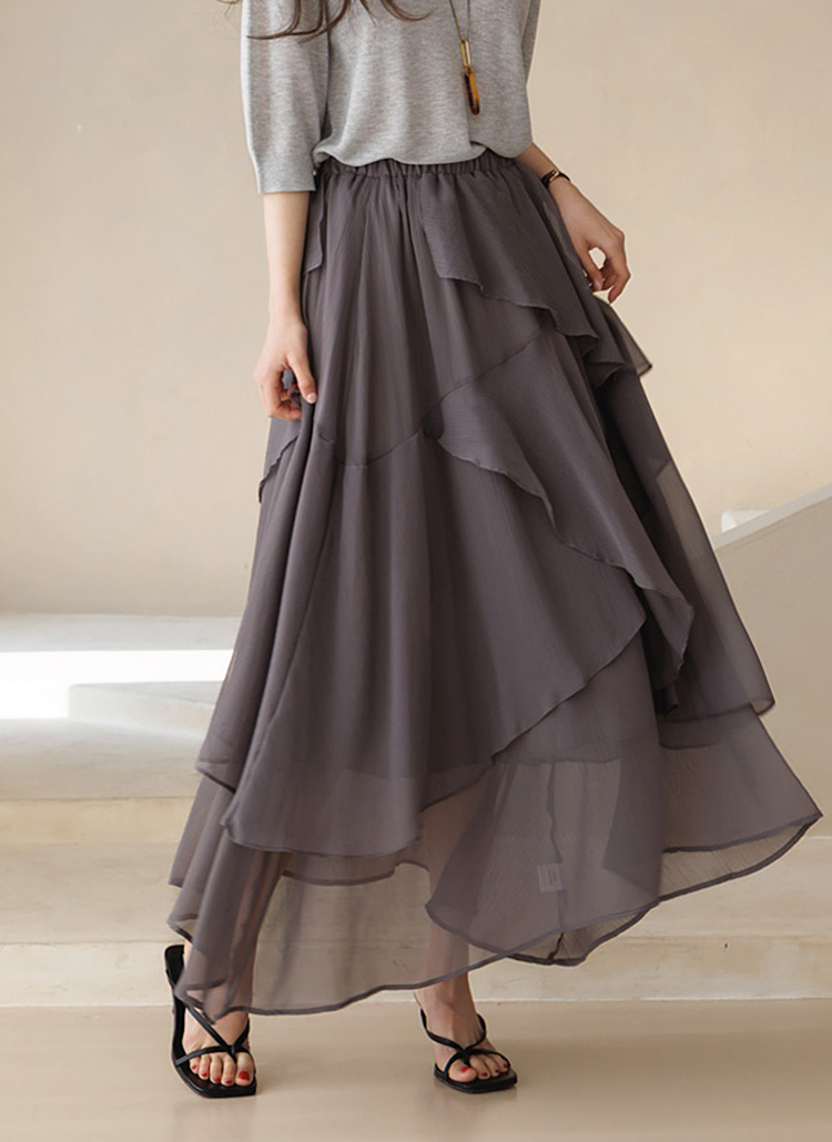 [THE ONME] 楊柳シフォン アシメティアード ロングスカートsk44985
