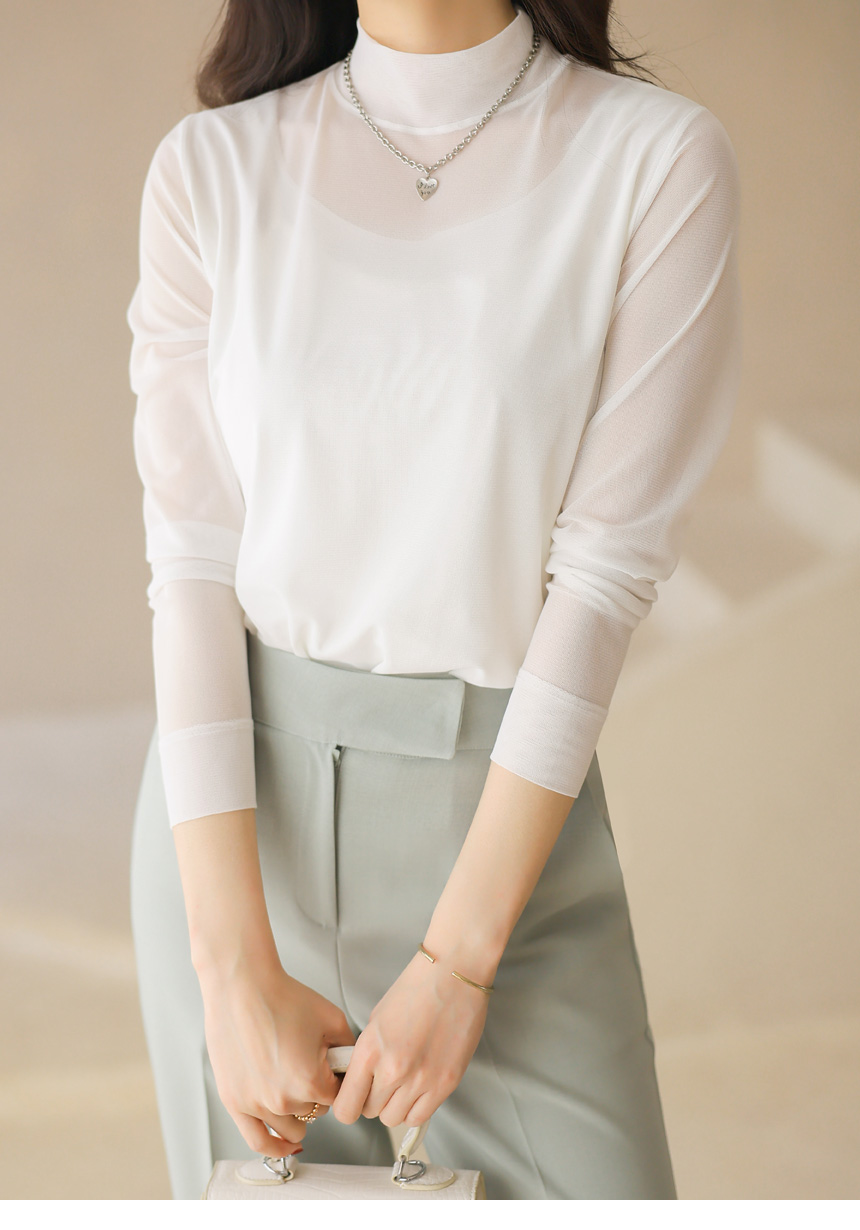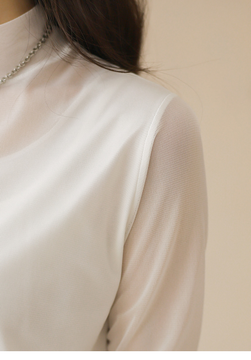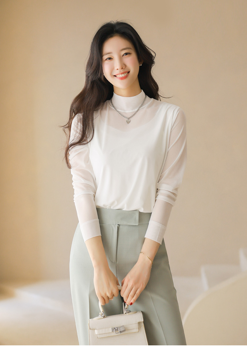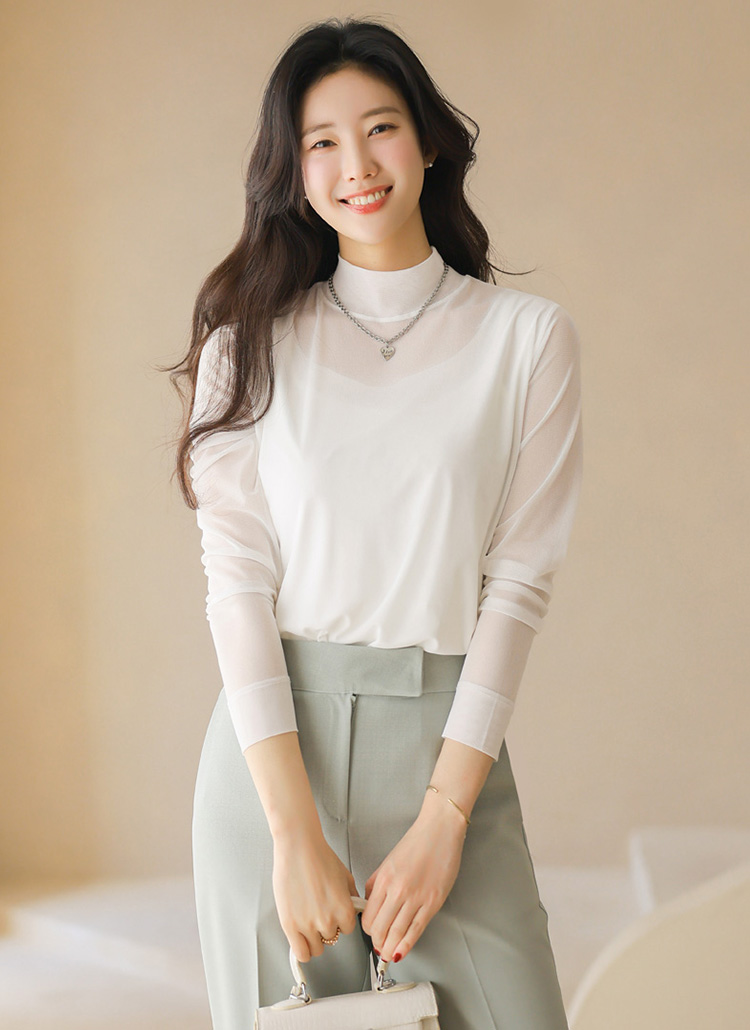 넥 라인까지 은은하게 이어지는 시스루 디자인이