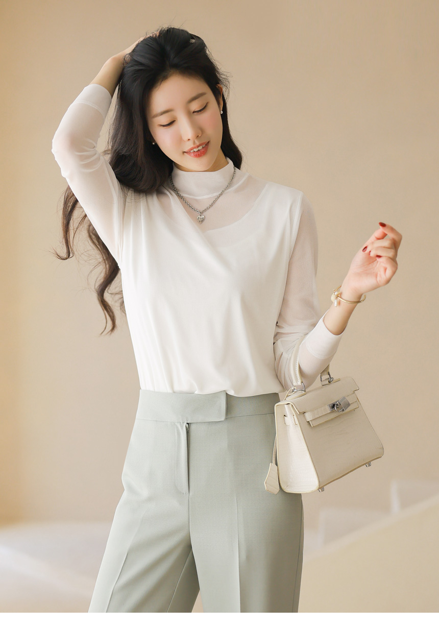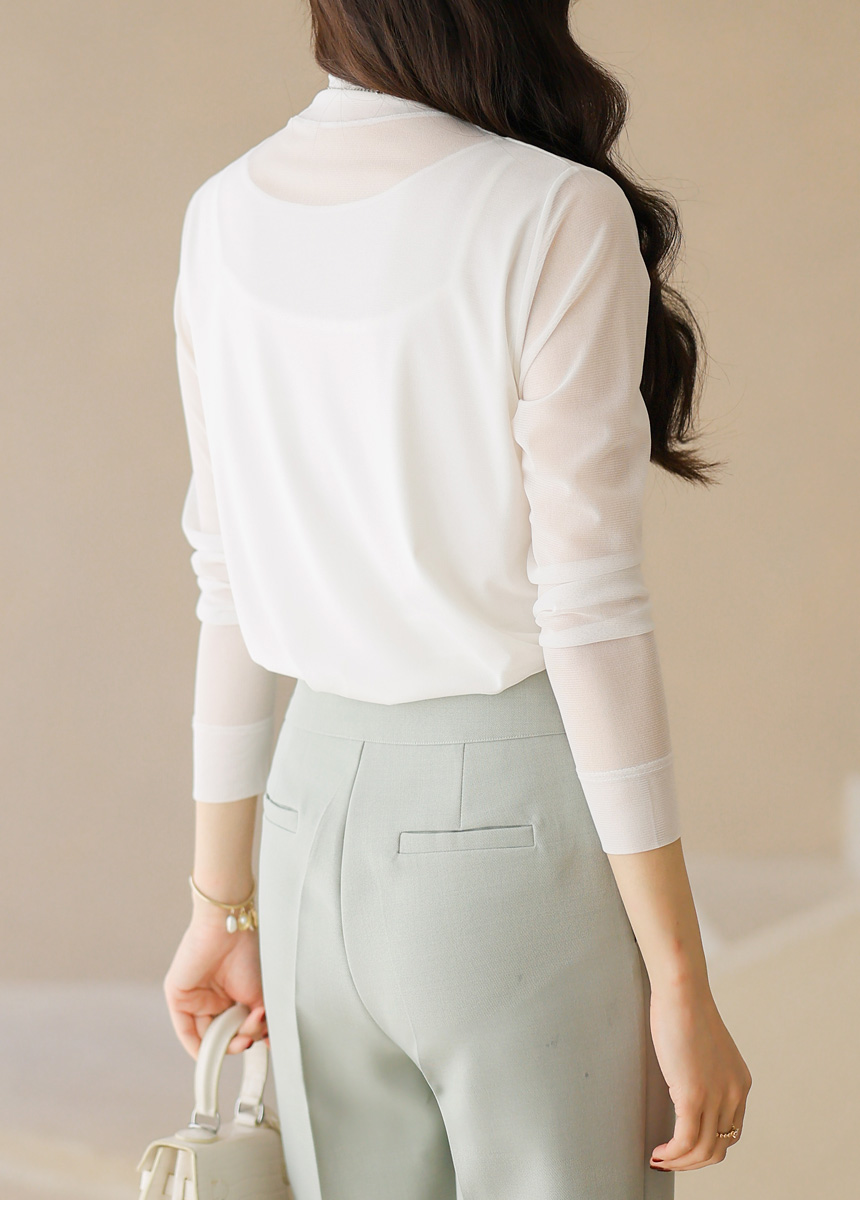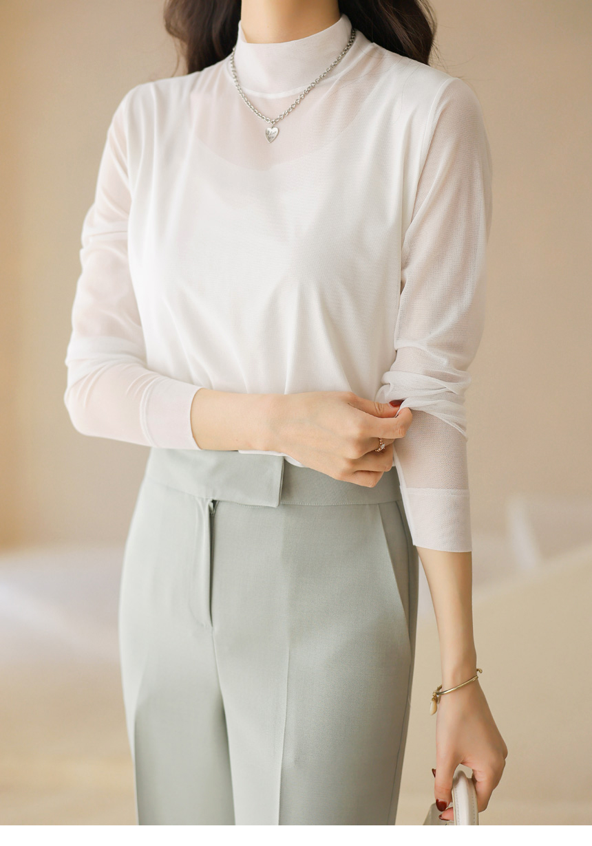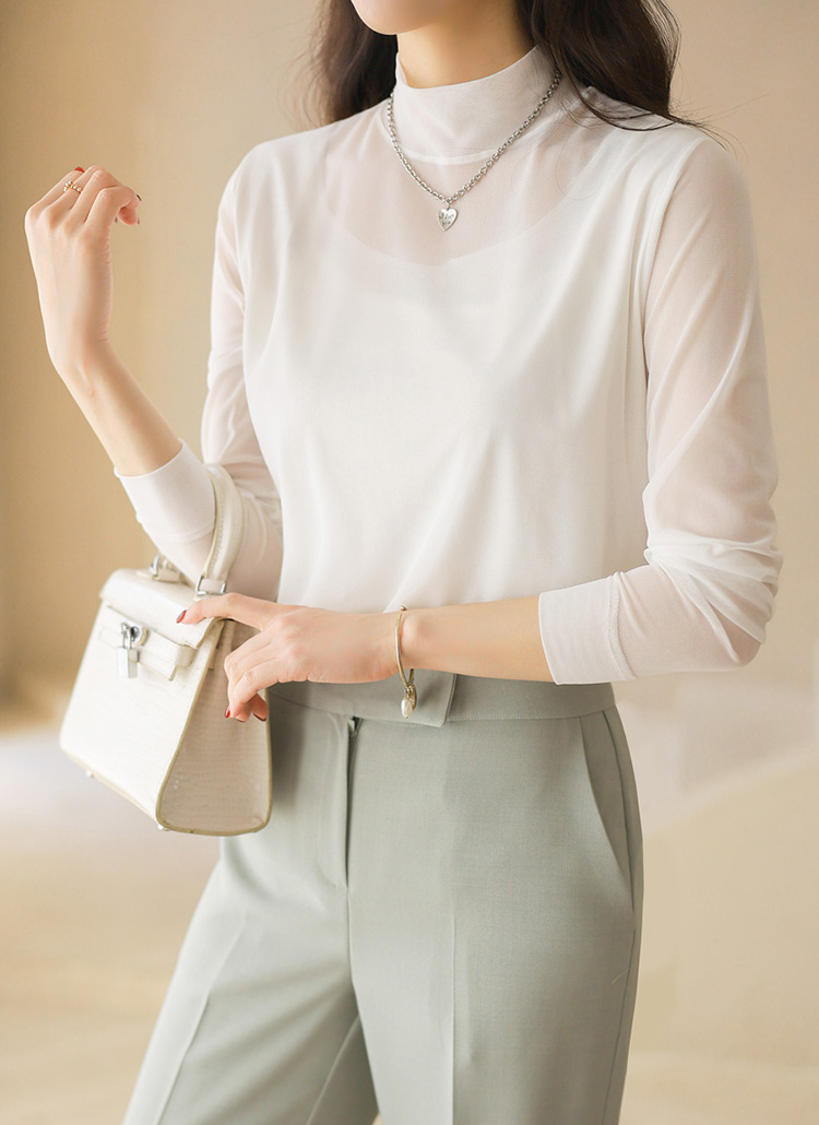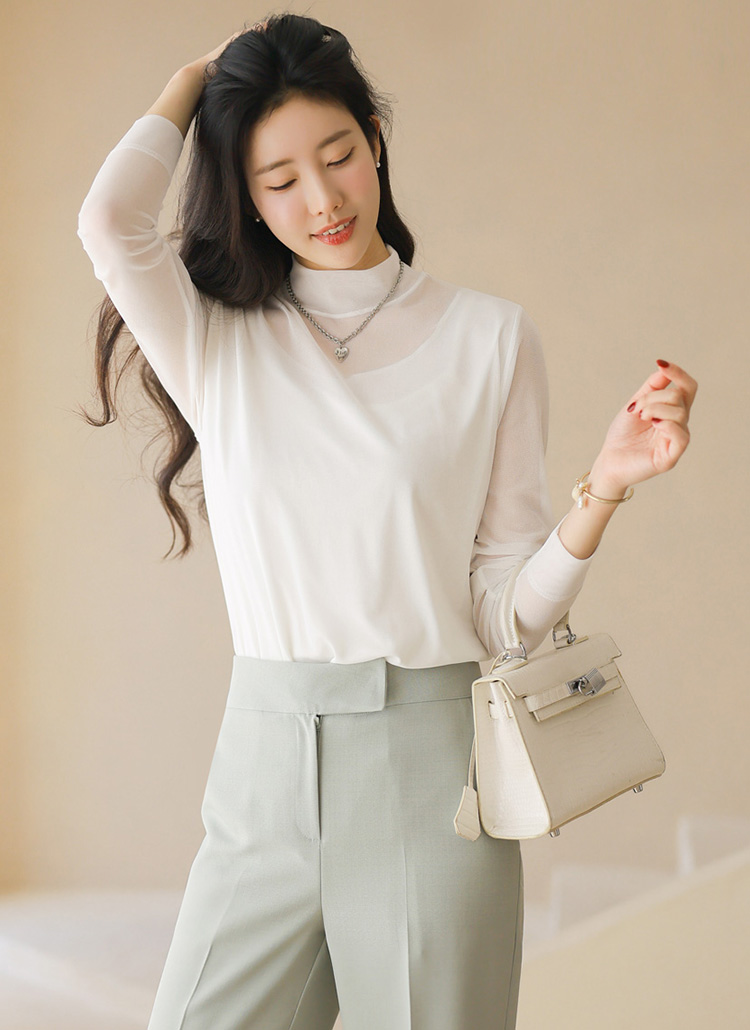 넥 라인까지 은은하게 이어지는 시스루 디자인이