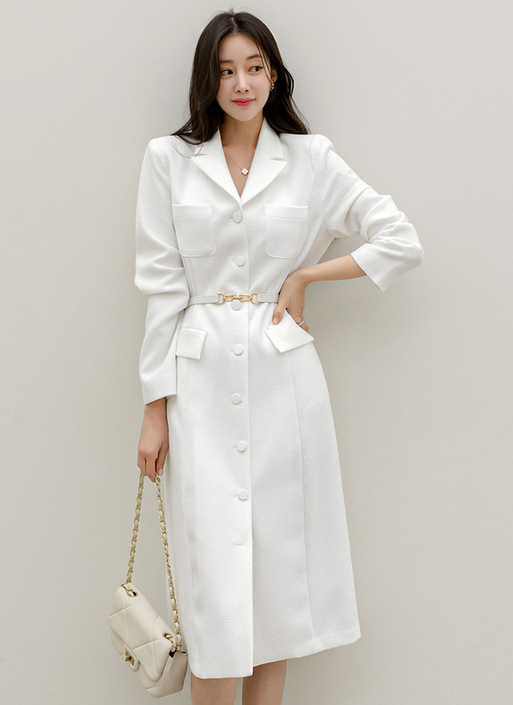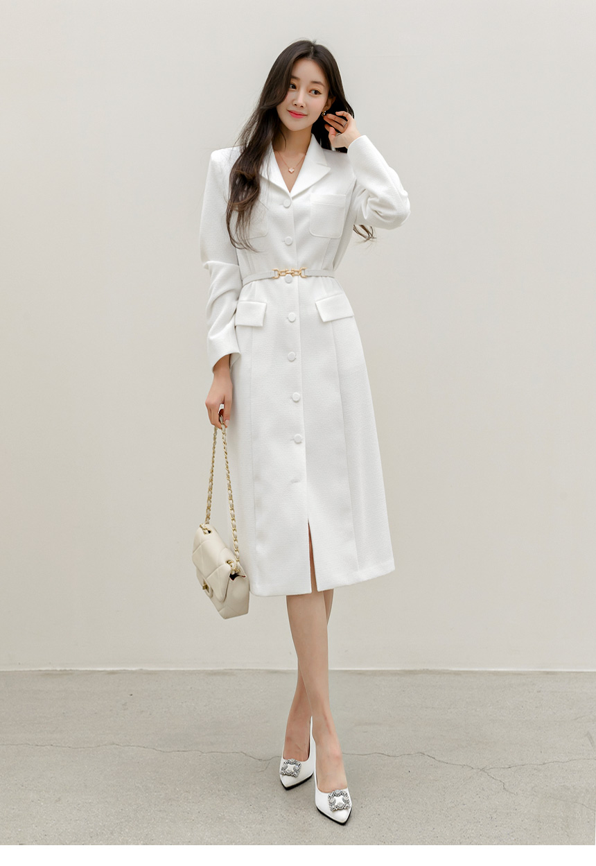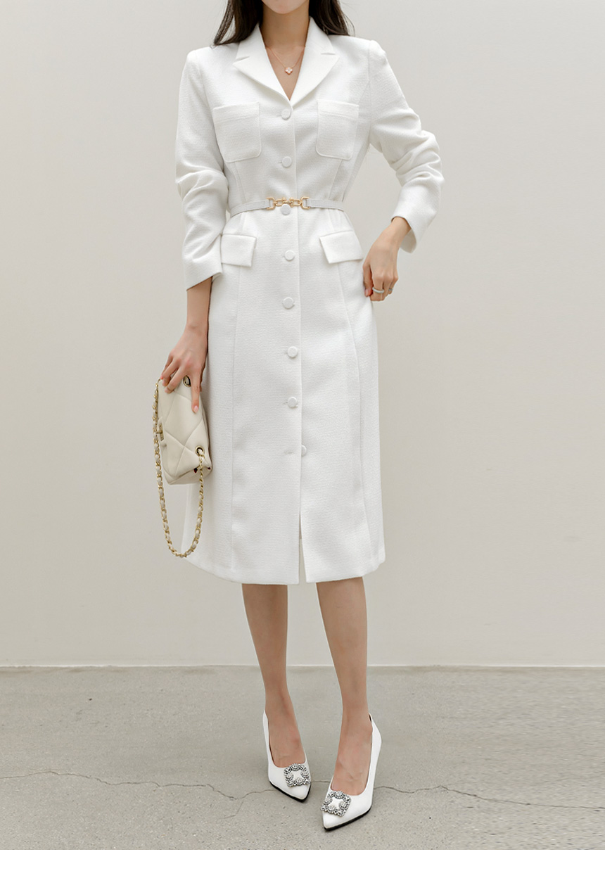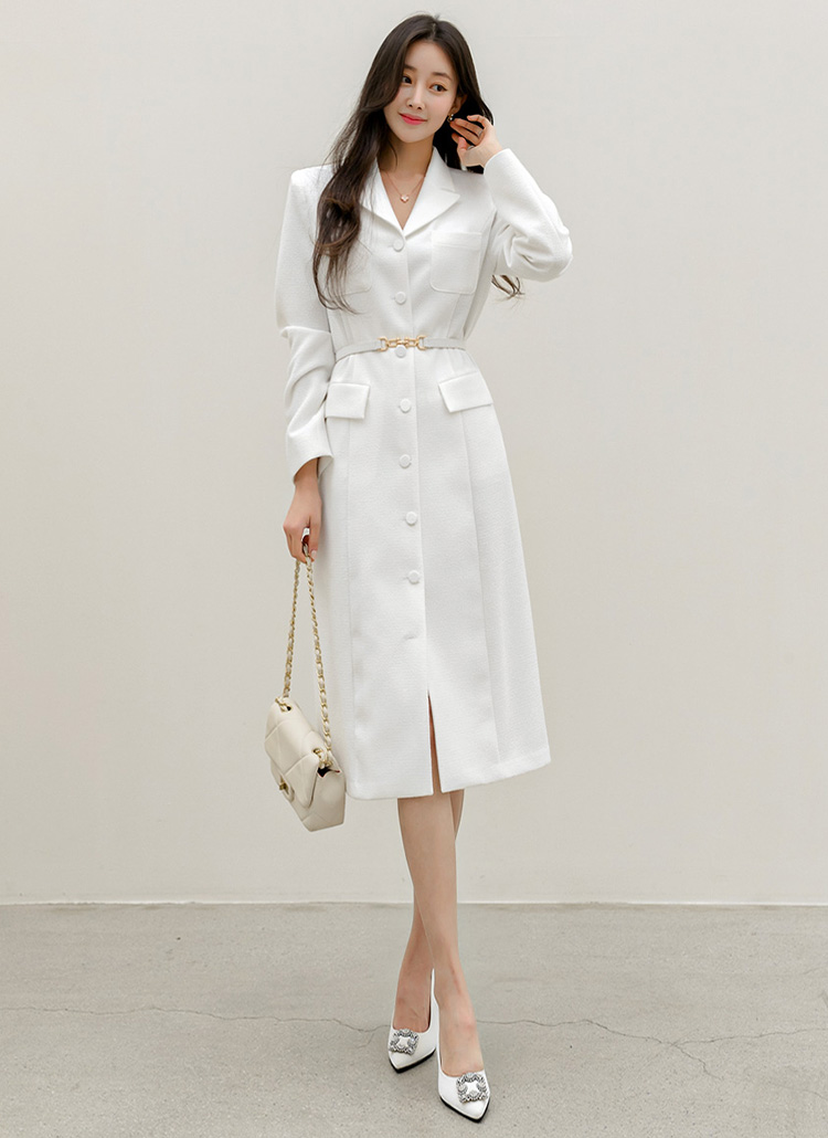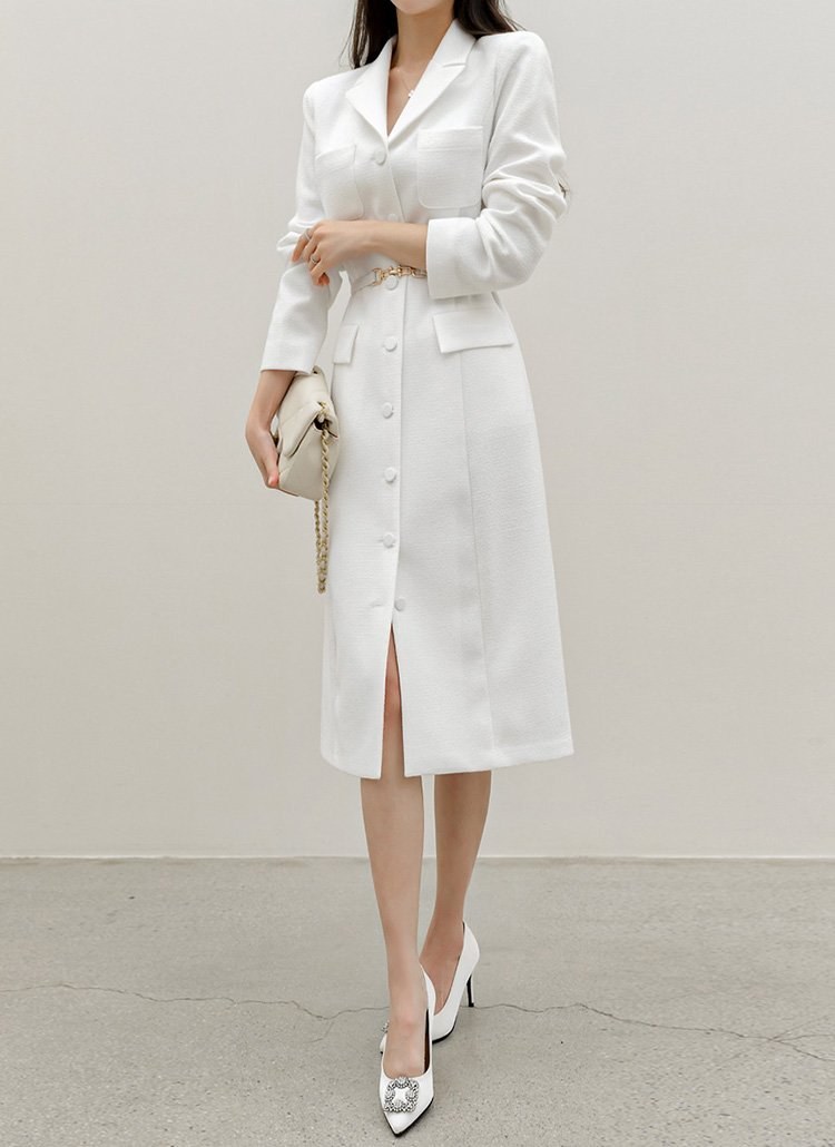 로리안 벨트SET 클래식 무드 테일러트 롱 트위드 코트 원피스