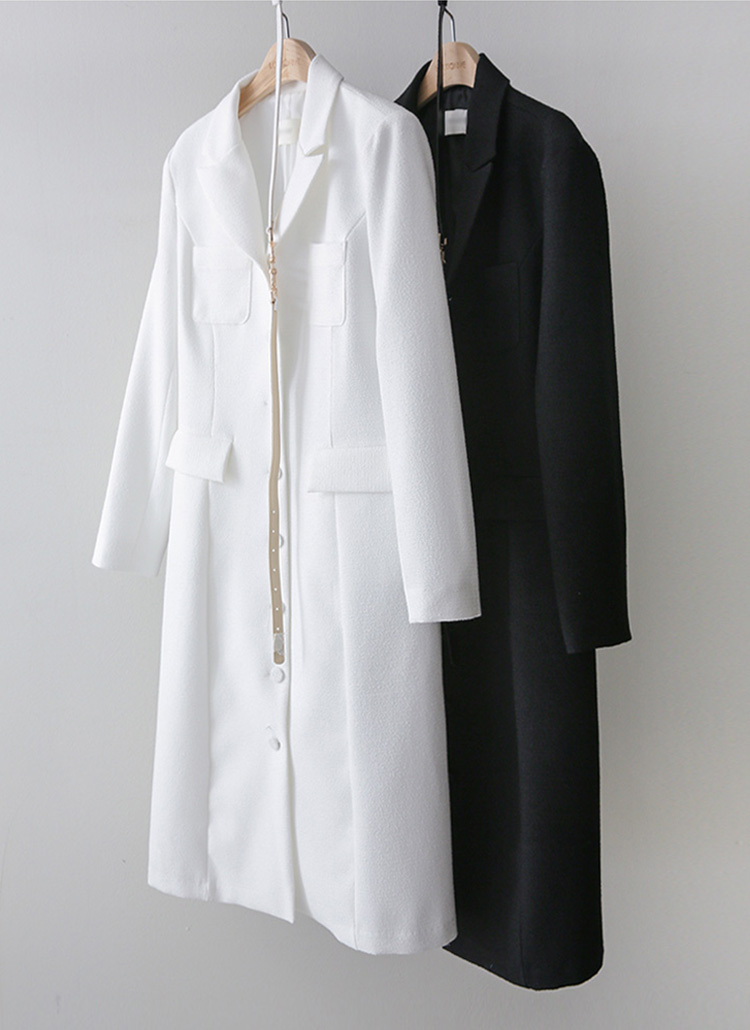 슬림하게 떨어지는 라인에 테일러드 카라 디테일을 더해