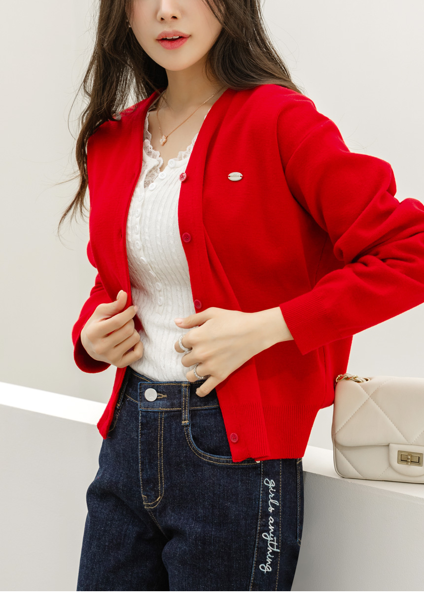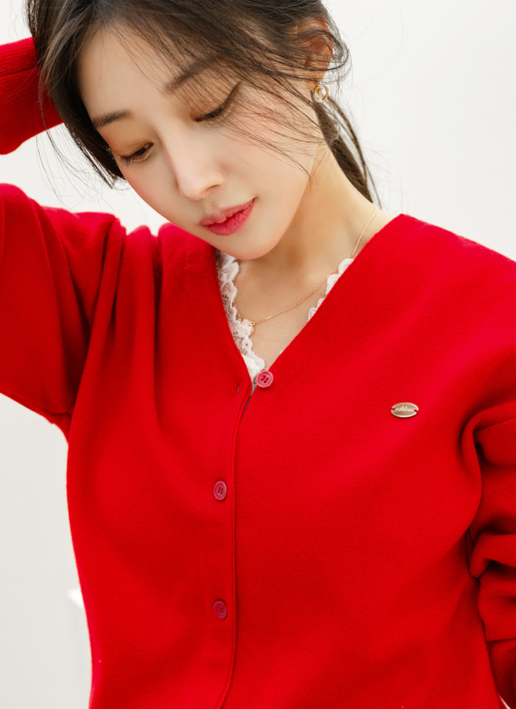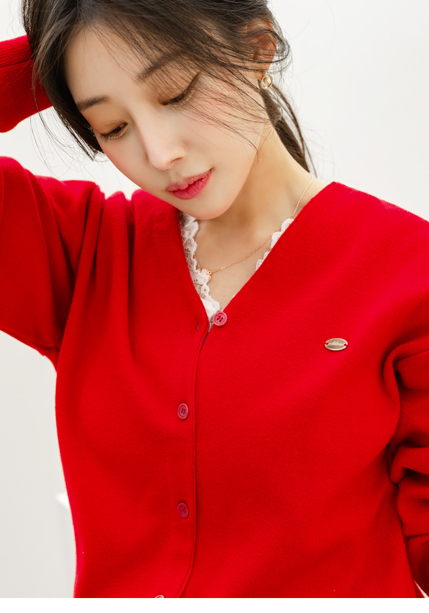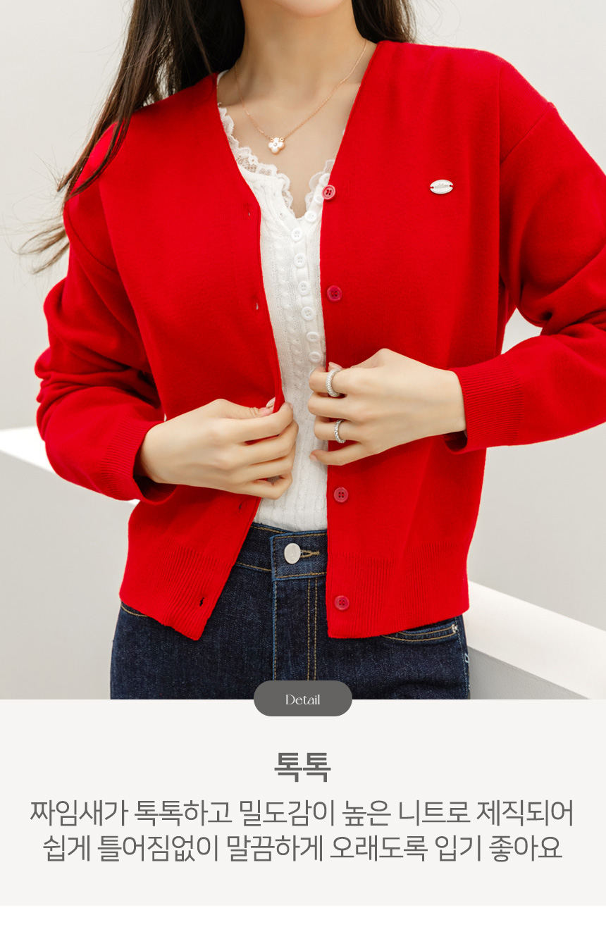 블라잇 데일리 심플 미니 펜던트 V넥 버튼 니트 가디건