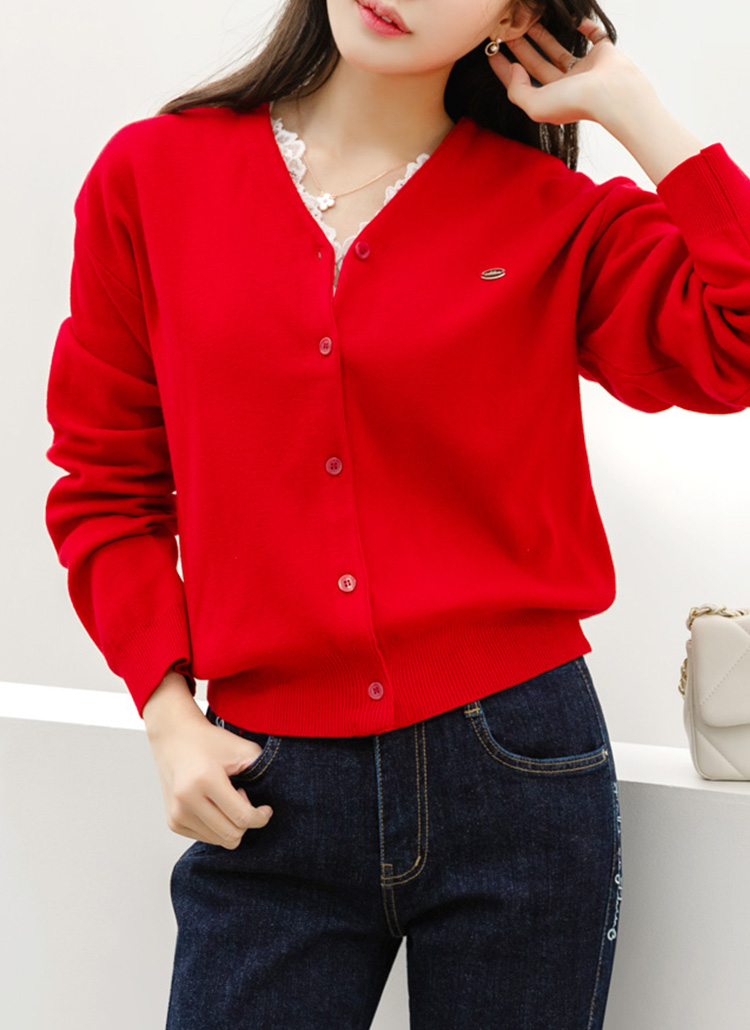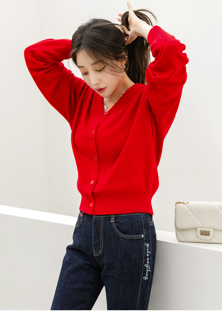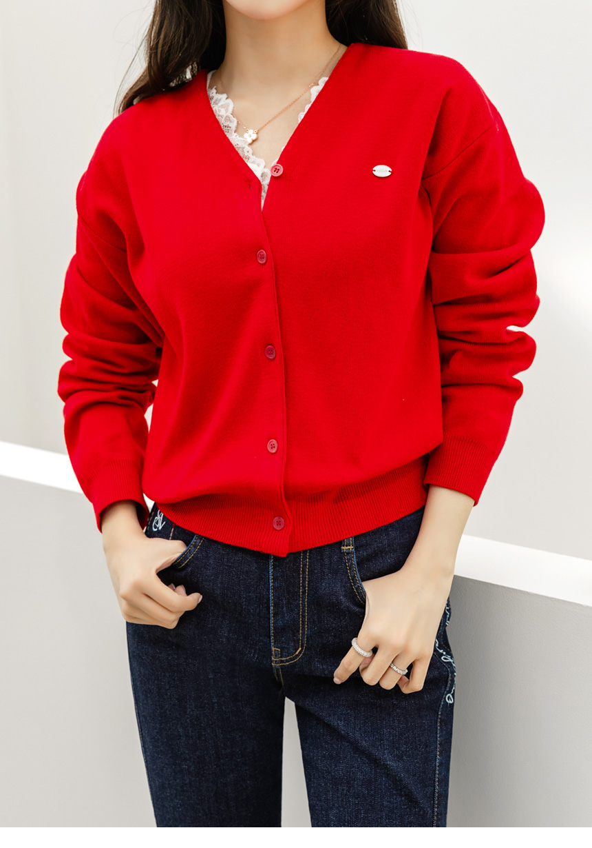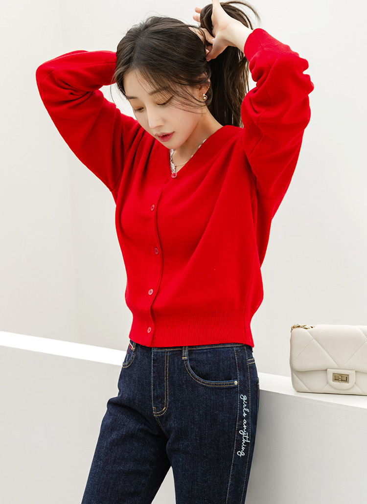 블라잇 데일리 심플 미니 펜던트 V넥 버튼 니트 가디건