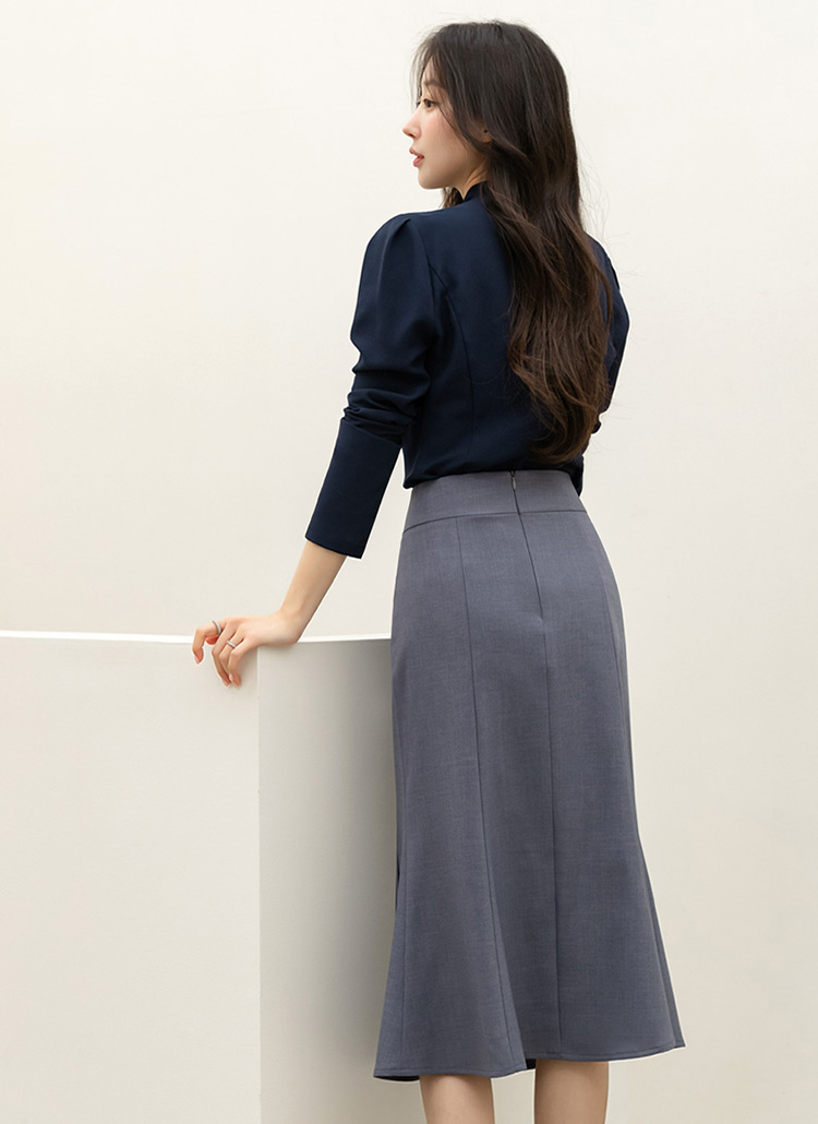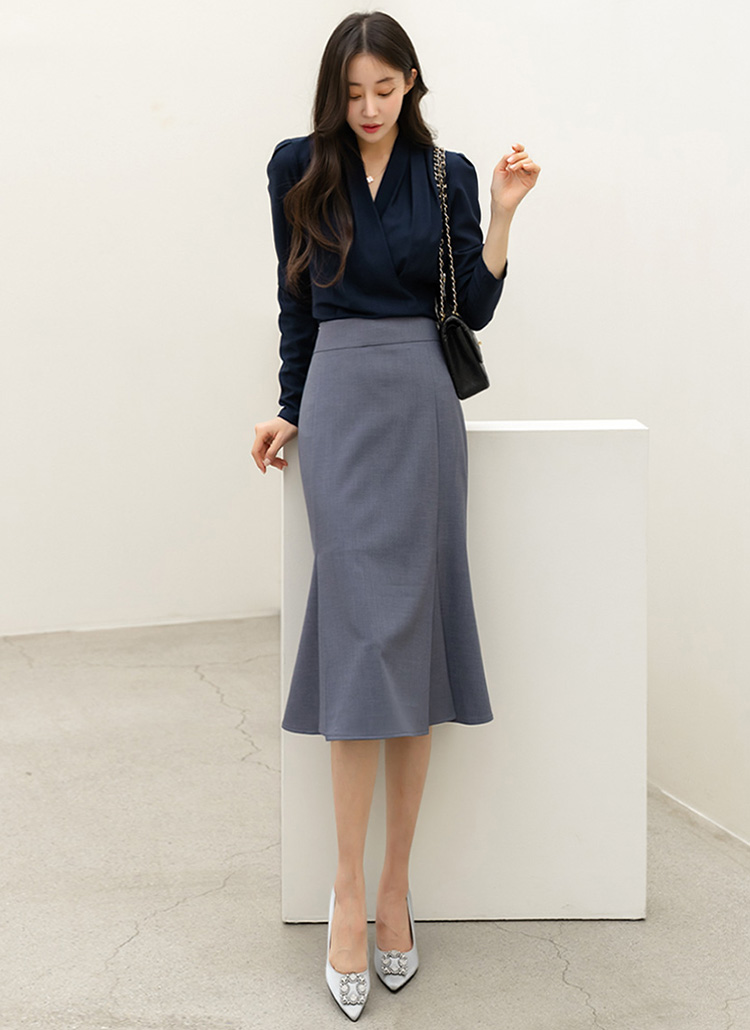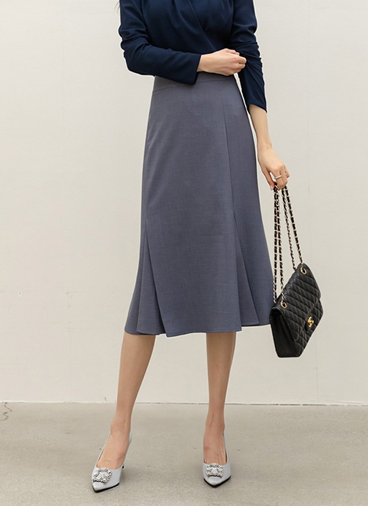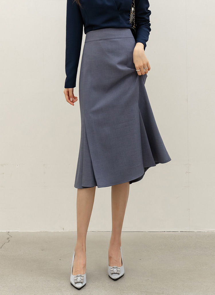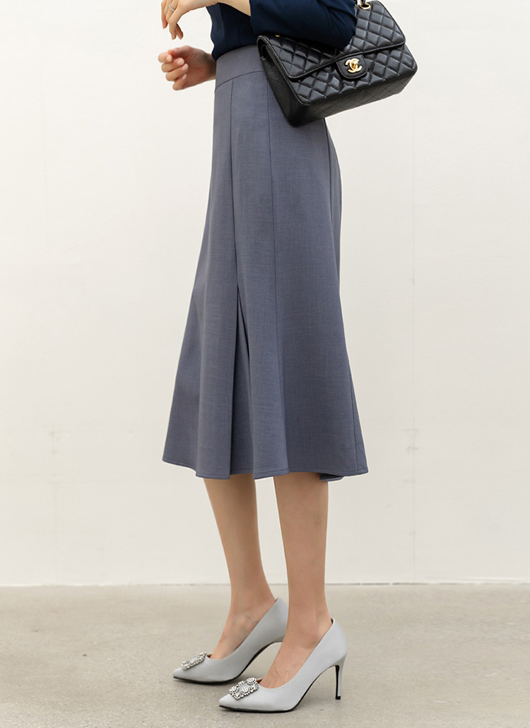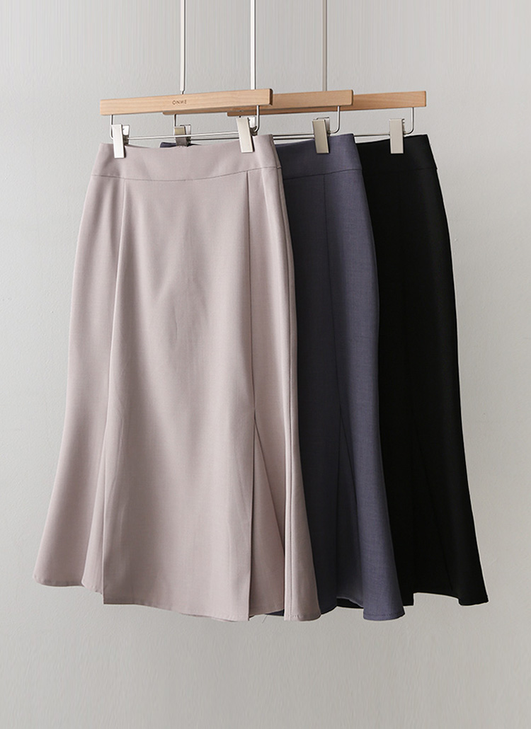 리미엔 절개 플레어 머메이드 라인 미디 스커트