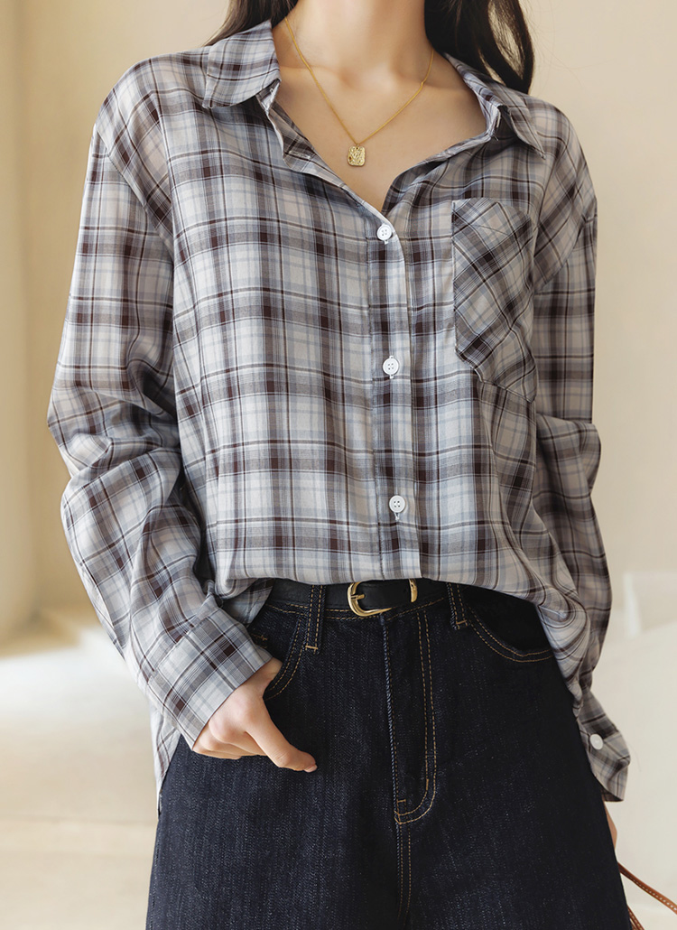 내추럴하면서도 세련된 무드를 완성해주는 체크 셔츠예요