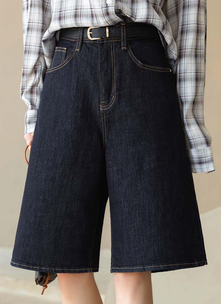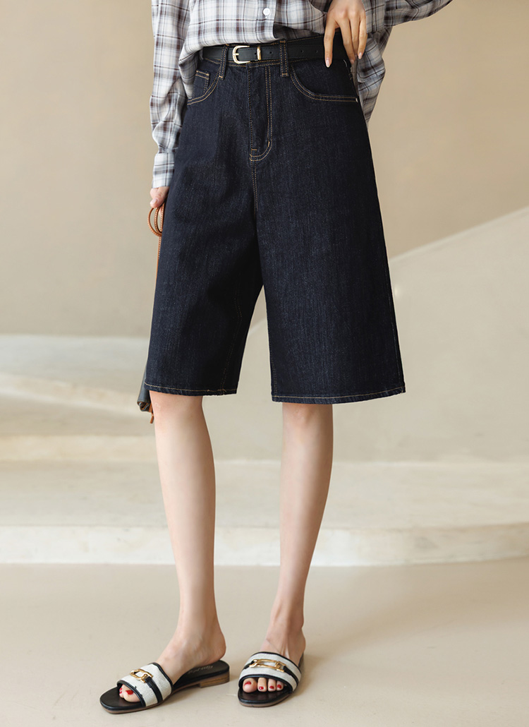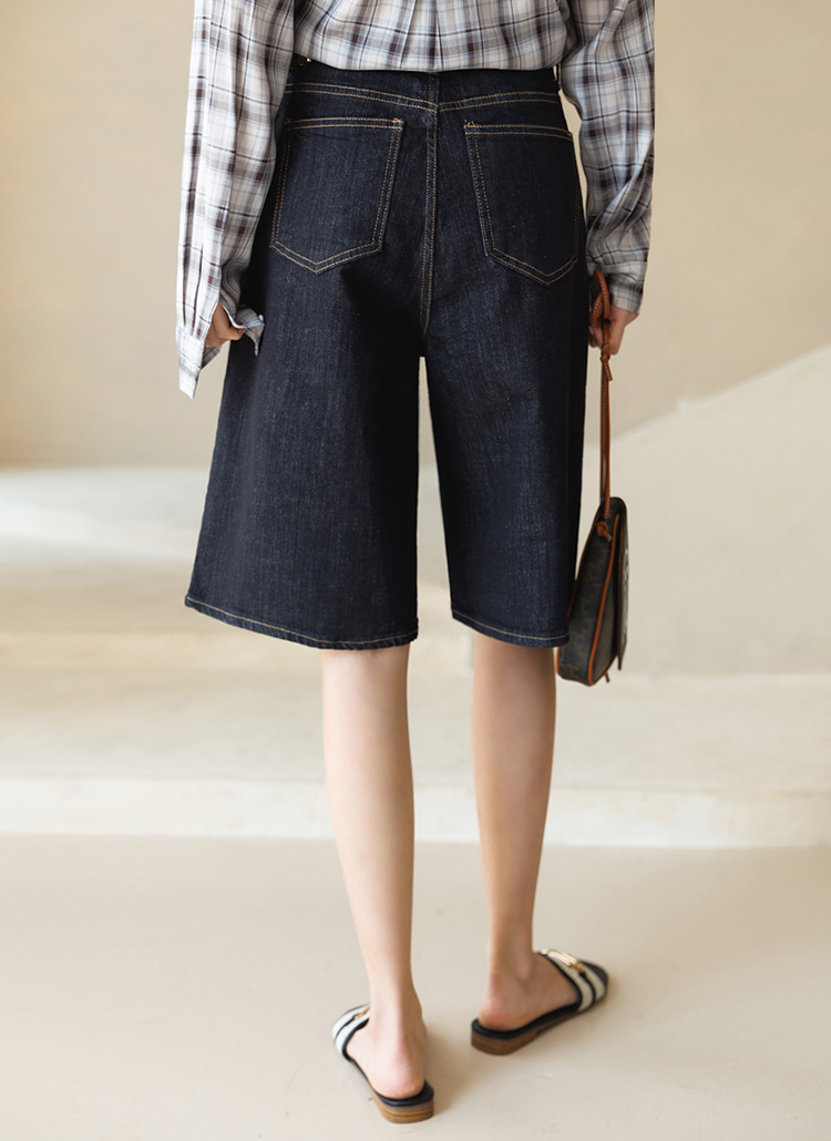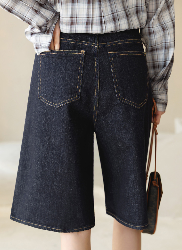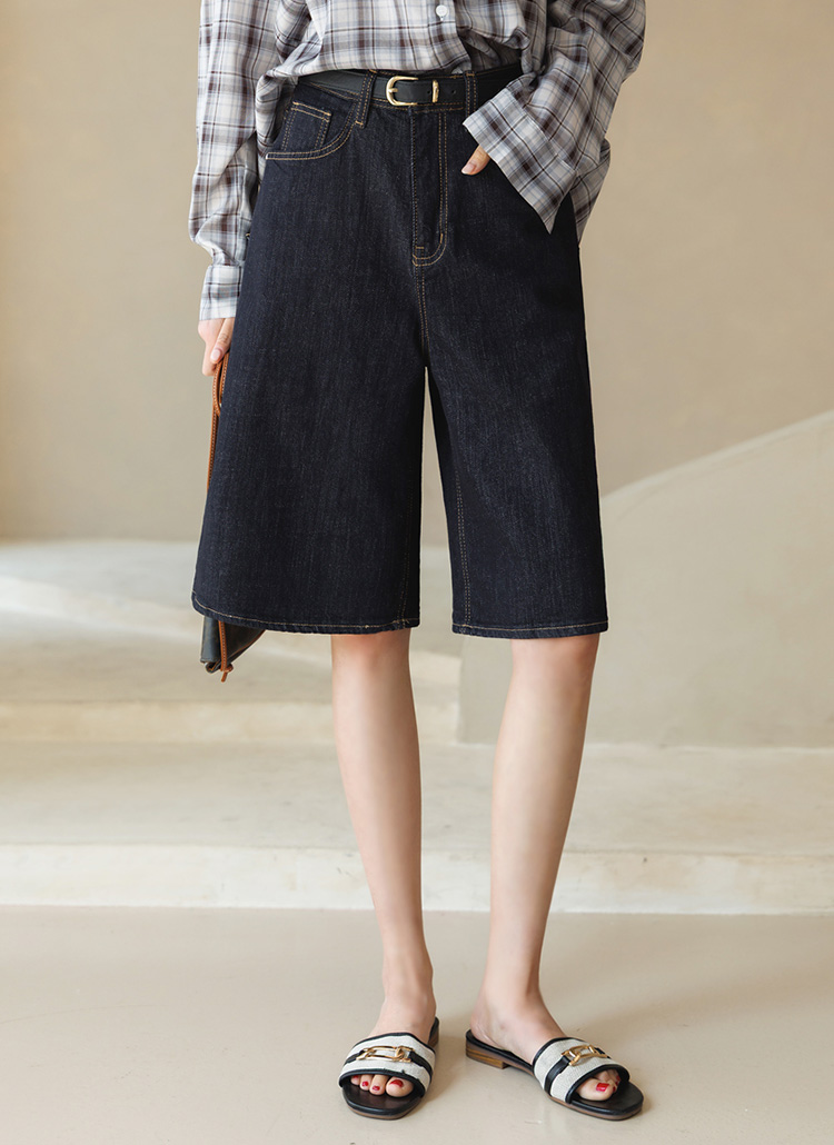 5부 기장의 세미 와이드 데님 팬츠에요